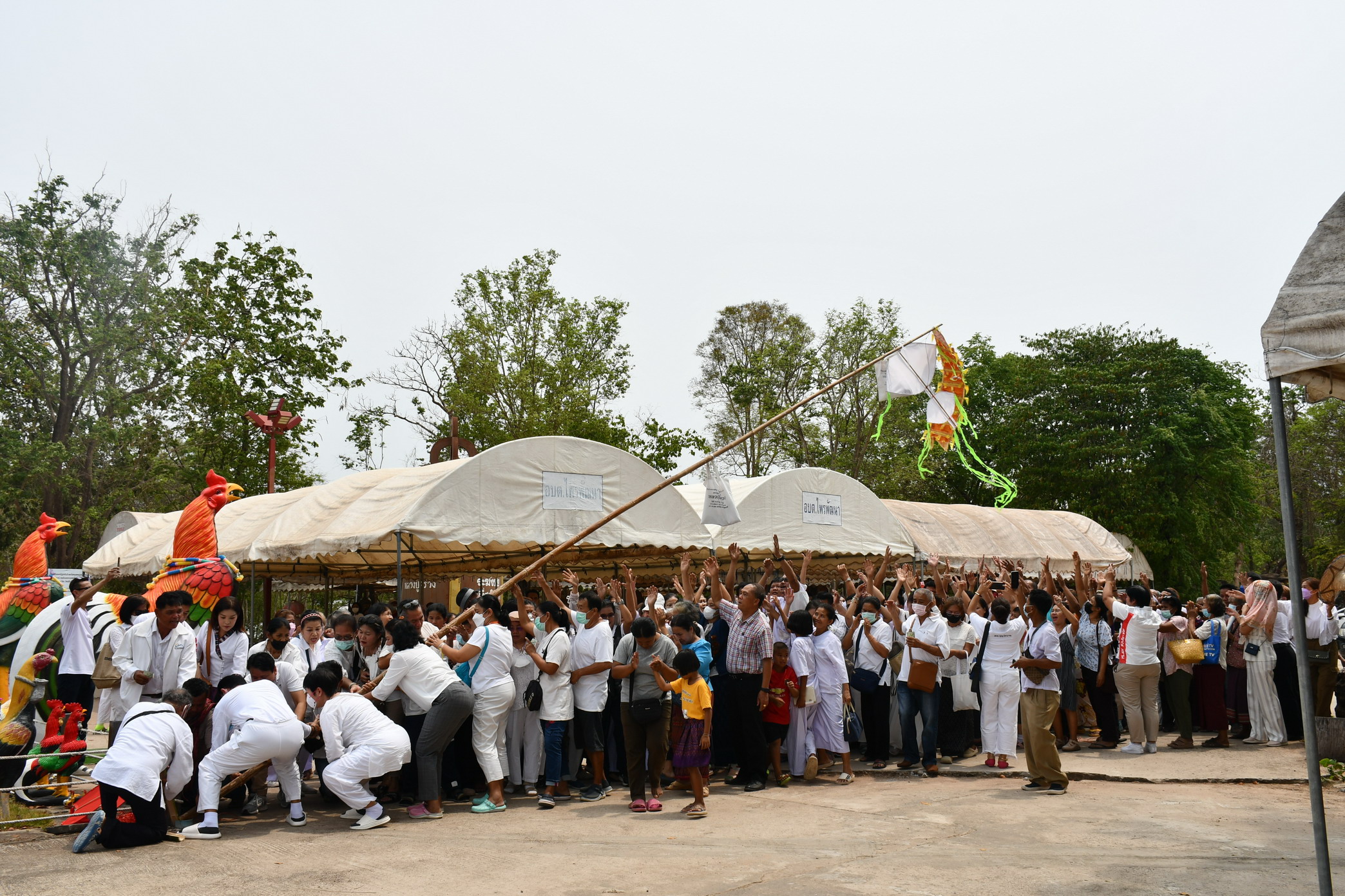 ศรีสะเกษ อัศจรรย์พระอาทิตย์ทรงกลดขณะประกอบพิธีไหว้ครูบูชาคุณหลวงปู่สรวงอย่างยิ่งใหญ่ ละสังขารนาน 23 ปีแต่สรีสังขารไม่เน่าเปื่อย มีคณะศิษย์จากทั่วประเทศมาร่วมพิธีจำนวนมาก
