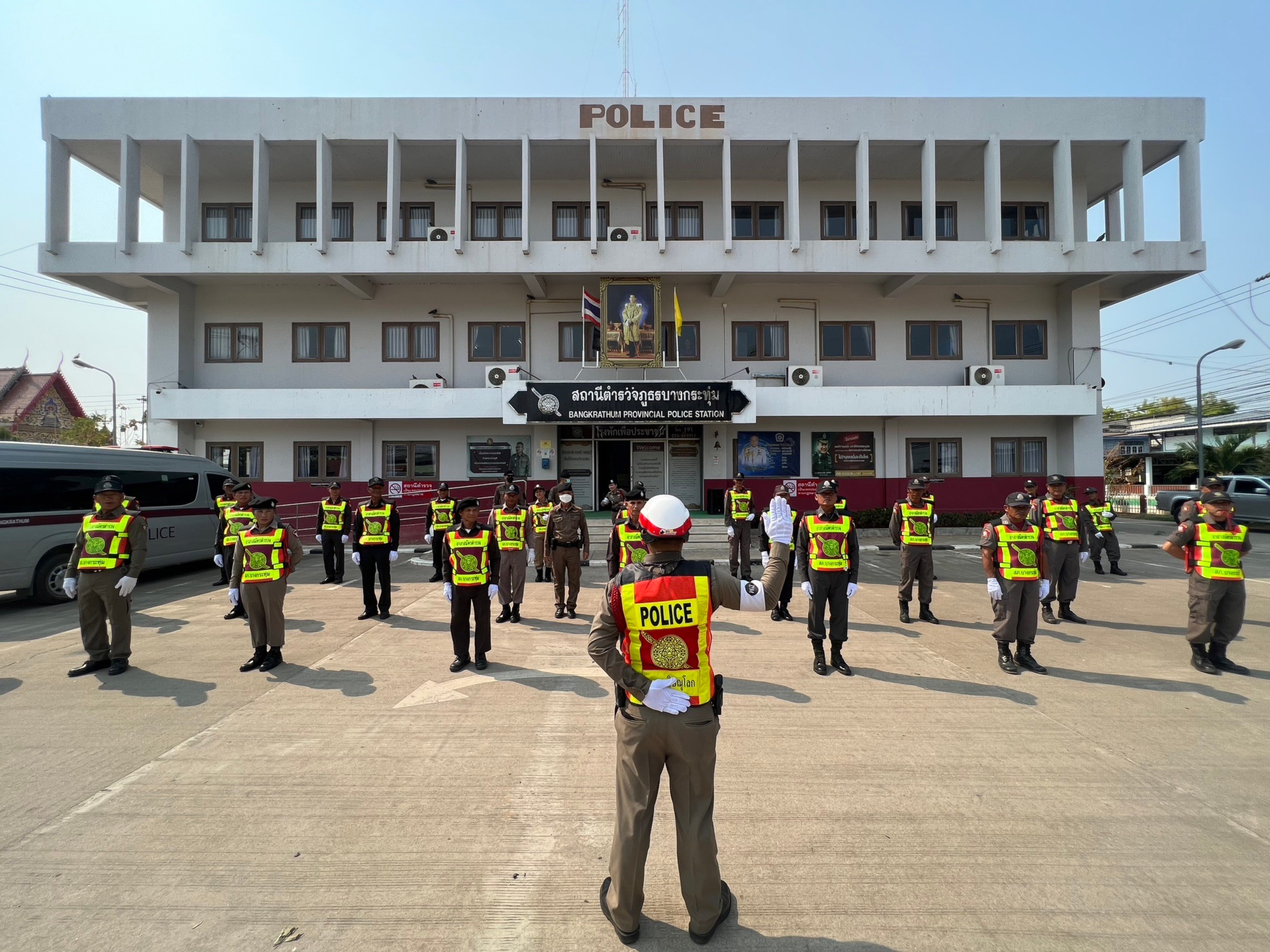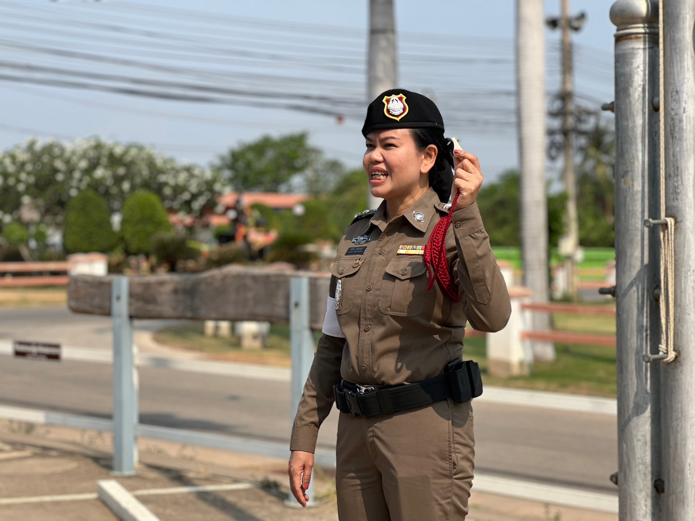 รอง สวป. ร.ต.อ.หญิงอิศริยา ต๊กควรเฮง รอง สวป. พร้อมสายตรวจตำบล,จราจร และอาสาสมัครตำรวจบ้าน,จราจร