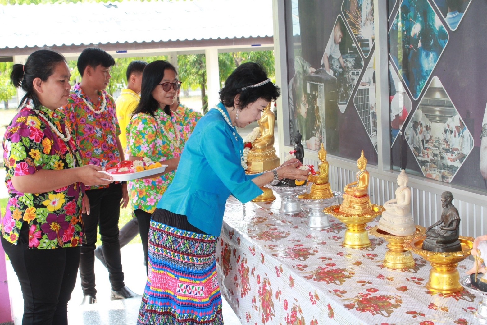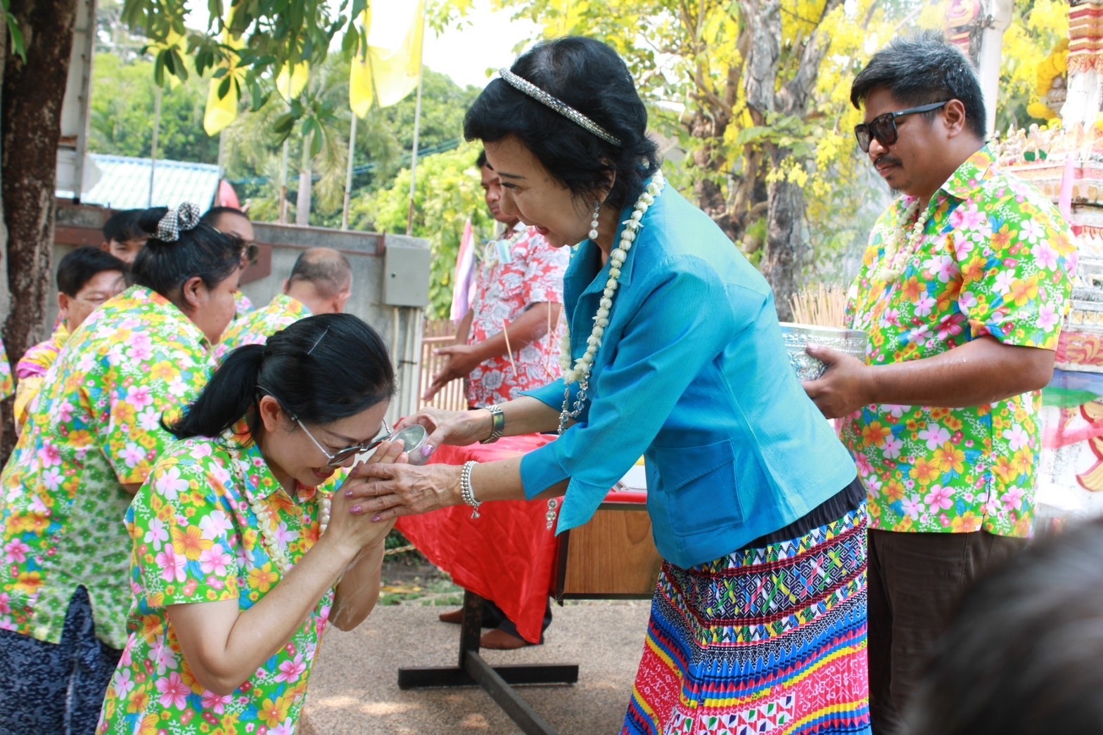 จากนั้น ดร.กัลยาณีประธานในพิธีได้จุดเทียนธูปบูชาท้าวมหาพรหมและปักธูปในเครื่องเซ่นไหว้ นำคณะเจ้าหน้าที่สวดมนต์กราบไหว้ขอขมา และอธิษฐานขอพรตามปรารถนา จากนั้นได้นำสรงน้ำพระพุทธรูป 5 พระองค์ และสรงน้ำปู่ฤาษีชีวก โกมารภัจจ์ แพทย์ประจำพระองค์ของพระพุทธเจ้า บรมครูของวงการแพทย์แผนไทย ทั้งนี้เพื่อช่วยชำระล้างจิตใจให้ชุ่มชื่น ใสสะอาด พร้อมเสริมสิริมงคลให้ชีวิต จากนั้นคณะผู้บริหาร พนักงานเจ้าหน้าที่ได้ นำพวงมาลัยดอกมะลิ เข้าทำพิธีรดน้ำขอพรเพื่อความเป็นสิริมงคล จาก ดร.กัลยาณี ธรรมจารีย์ นายกสมาคมส่งเสริมเครือข่ายการท่องเที่ยวศรีสะเกษเพื่อเป็นการแสดงถึงความเคารพผู้ใหญ่ ที่เคารพนับถือ เป็นผู้ที่มีพระคุณ สร้างคุณประโยชน์ให้แก่สถาบันพัฒนาฝีมือแรงงาน38ศรีสะเกษตลอดมาหลายสิบปี