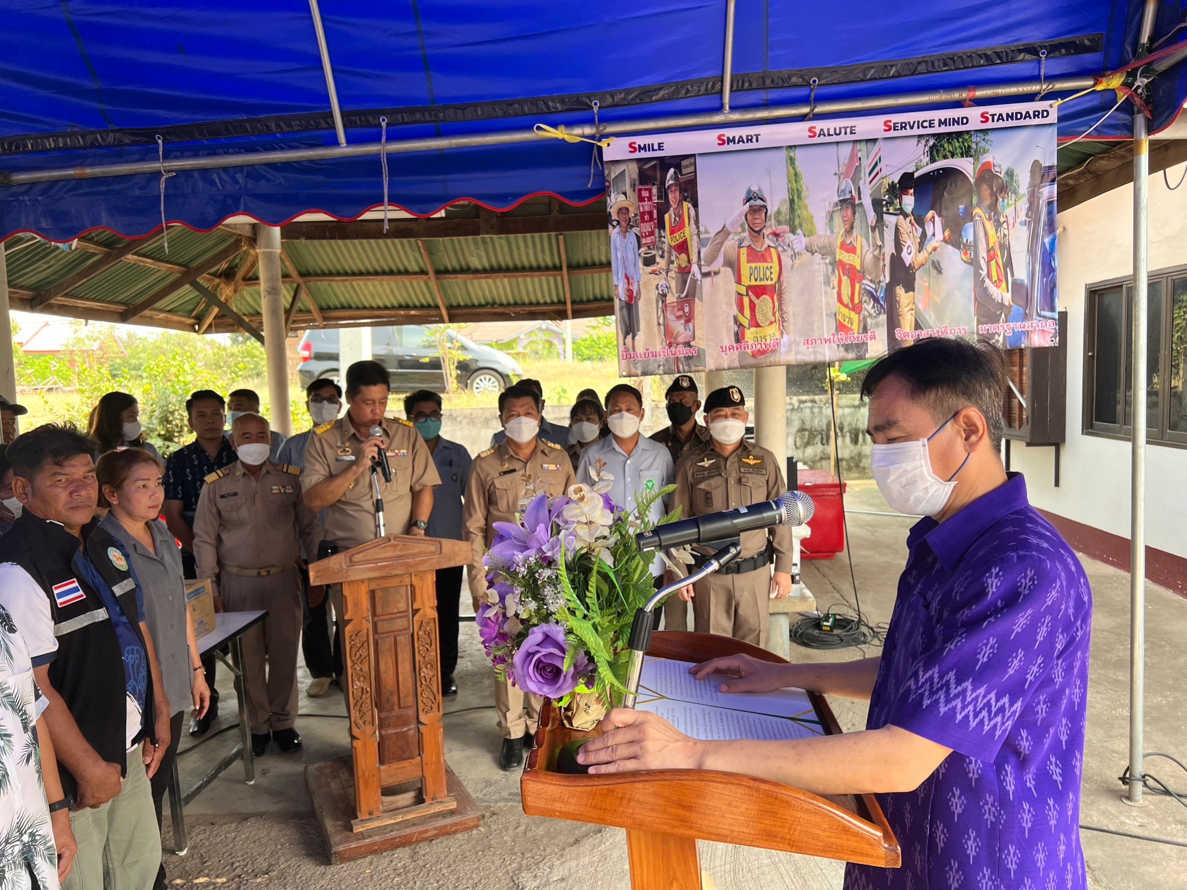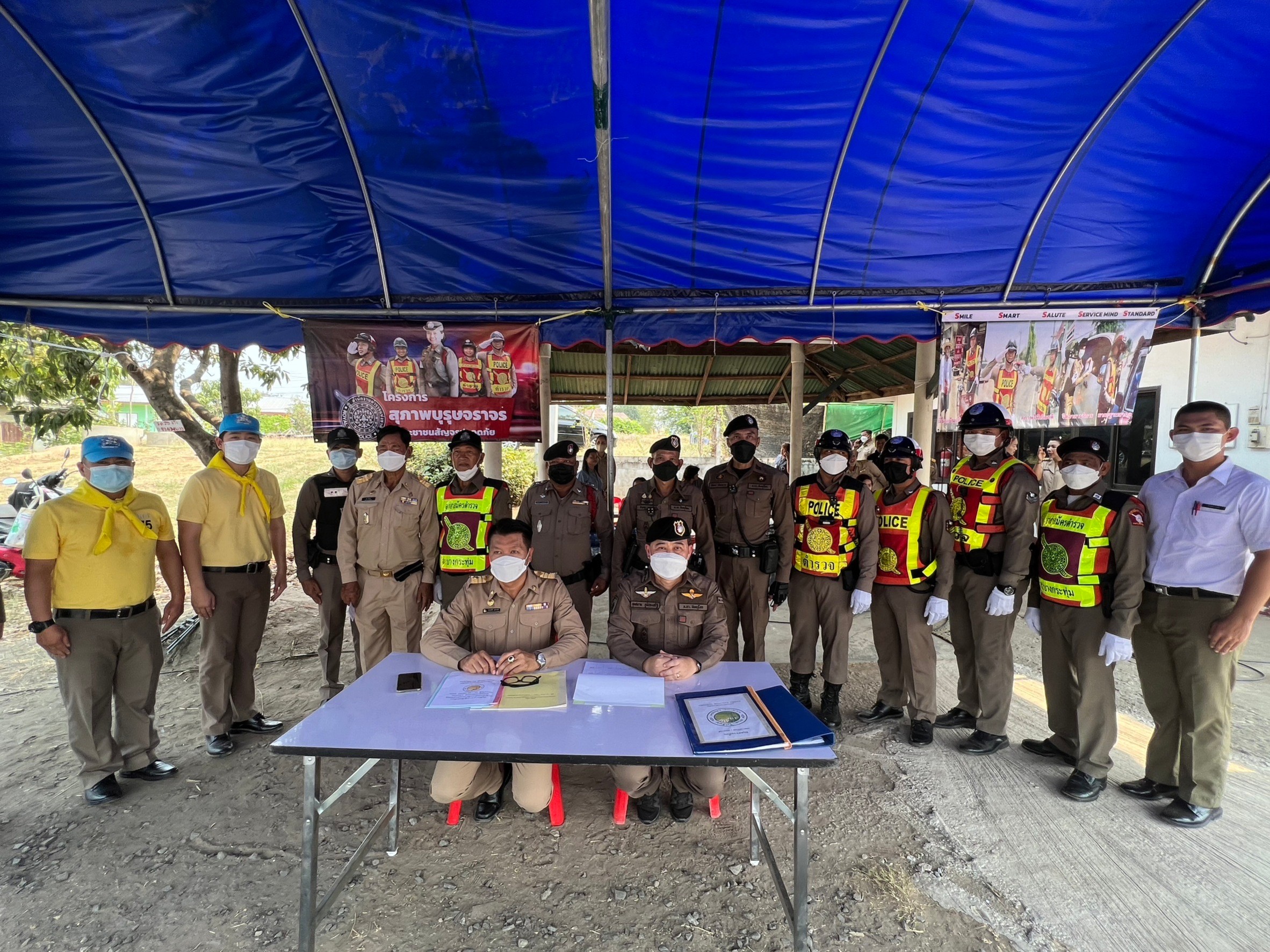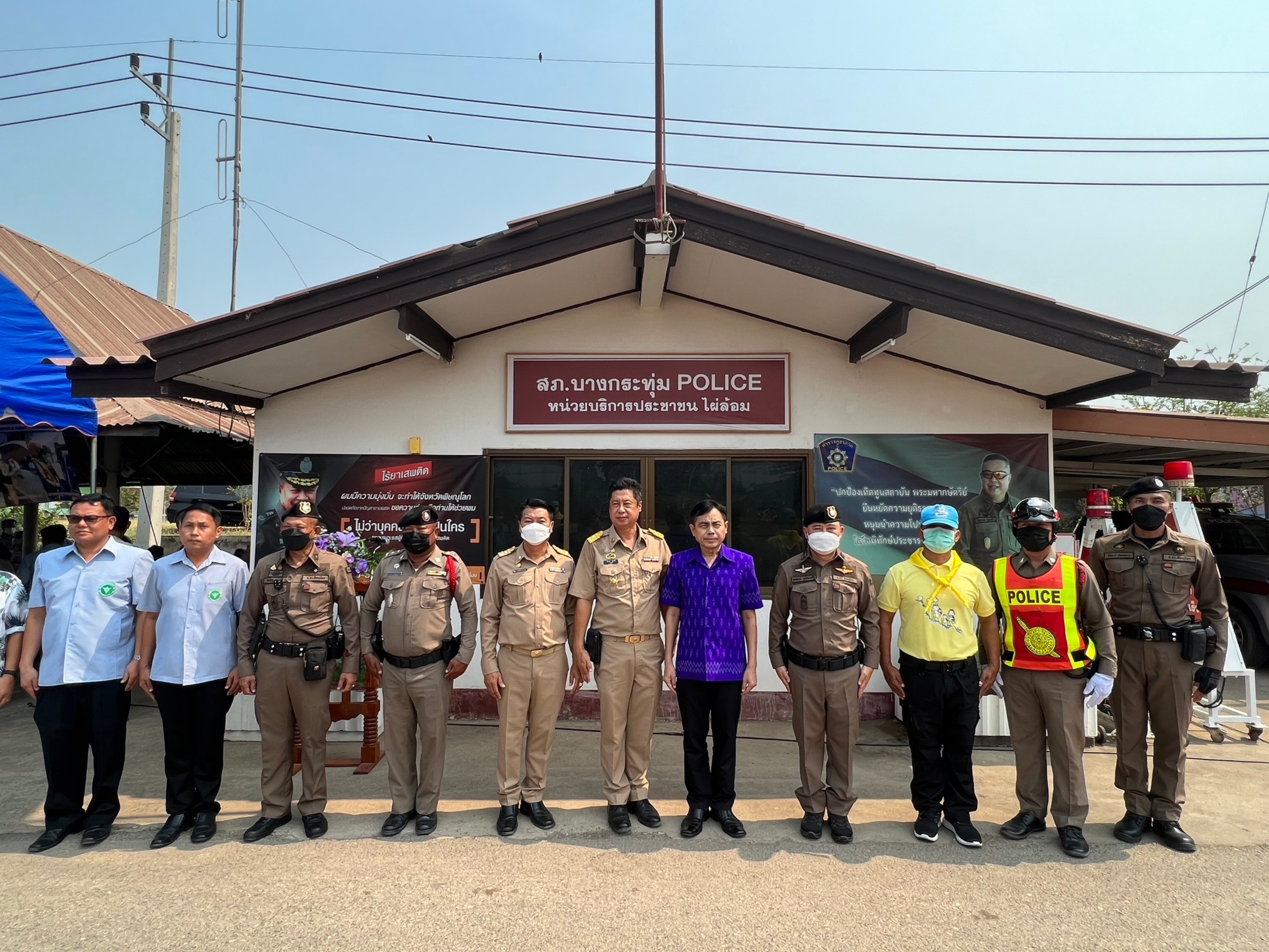 พร้อมด้วยข้าราชการตำรวจ สภ.บางกระทุ่ม สายตรวจรถยนต์ สายตรวจจราจร และสายตรวจไผ่ล้อม ร่วมด้วยเจ้าหน้าที่ อส.ตร. หัวหน้าส่วนราชการต่างๆ ร่วมพิธีเปิดโครงการจัดตั้งจุดบริการประชาชน