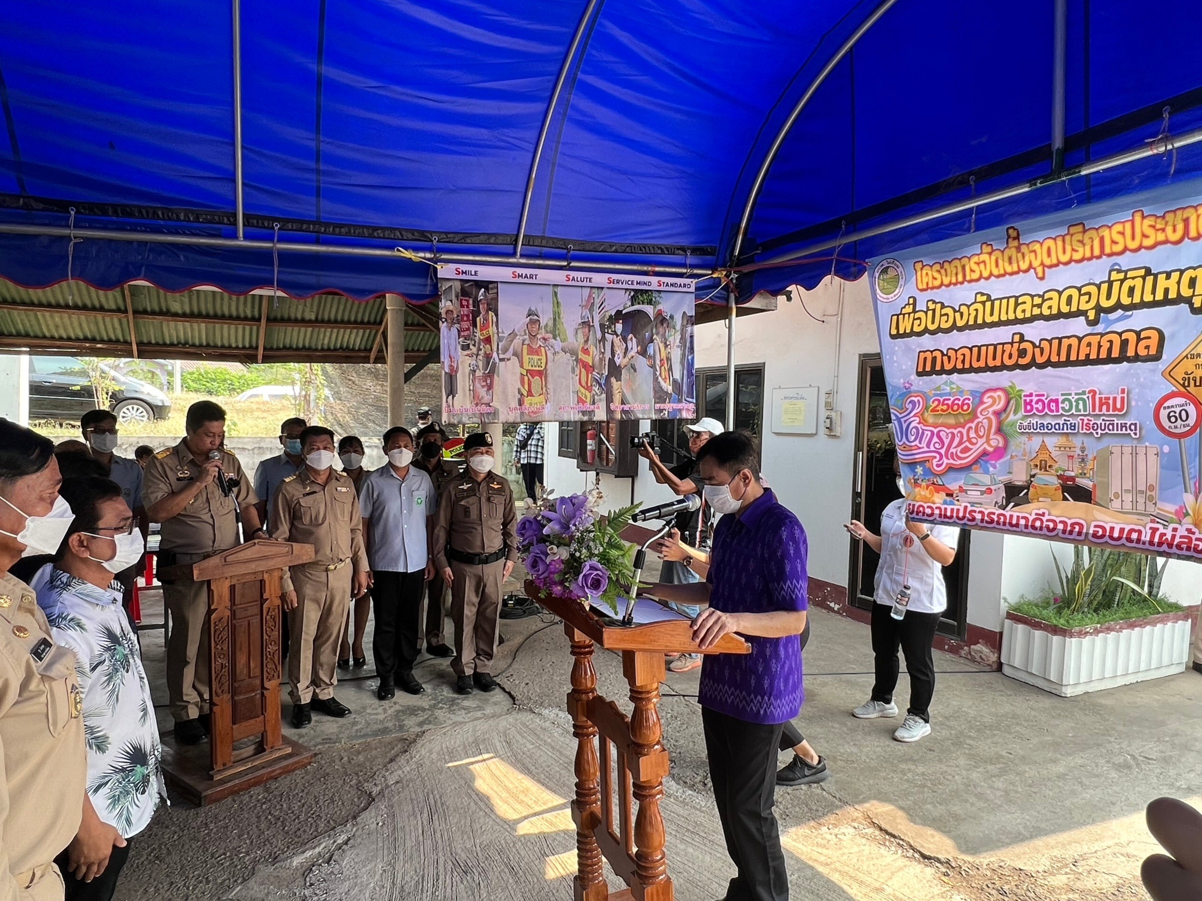 เพื่อป้องกันและลดอุบัติเหตุทางถนนช่วงเทศกาล พร้อมประชาสัมพันธ์แจกแผ่นพับรณรงค์ขับขี่ปลอดภัย มีน้ำใจต่อเพื่อนร่วมทาง ณ หน่วยบริการประชาชนไผ่ล้อม ต.ไผ่ล้อม อ.บางกระทุ่ม จว.พิษณุโลก