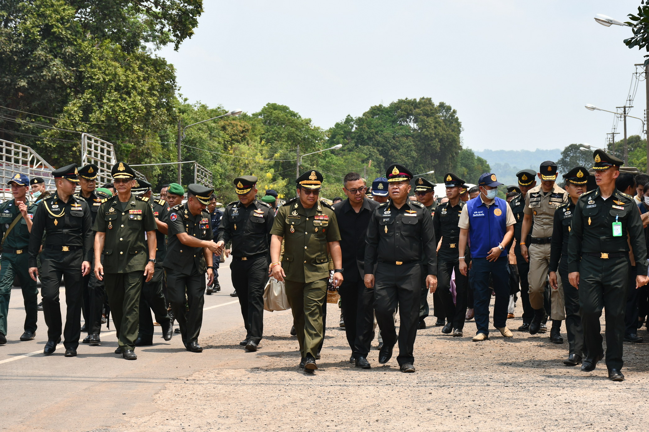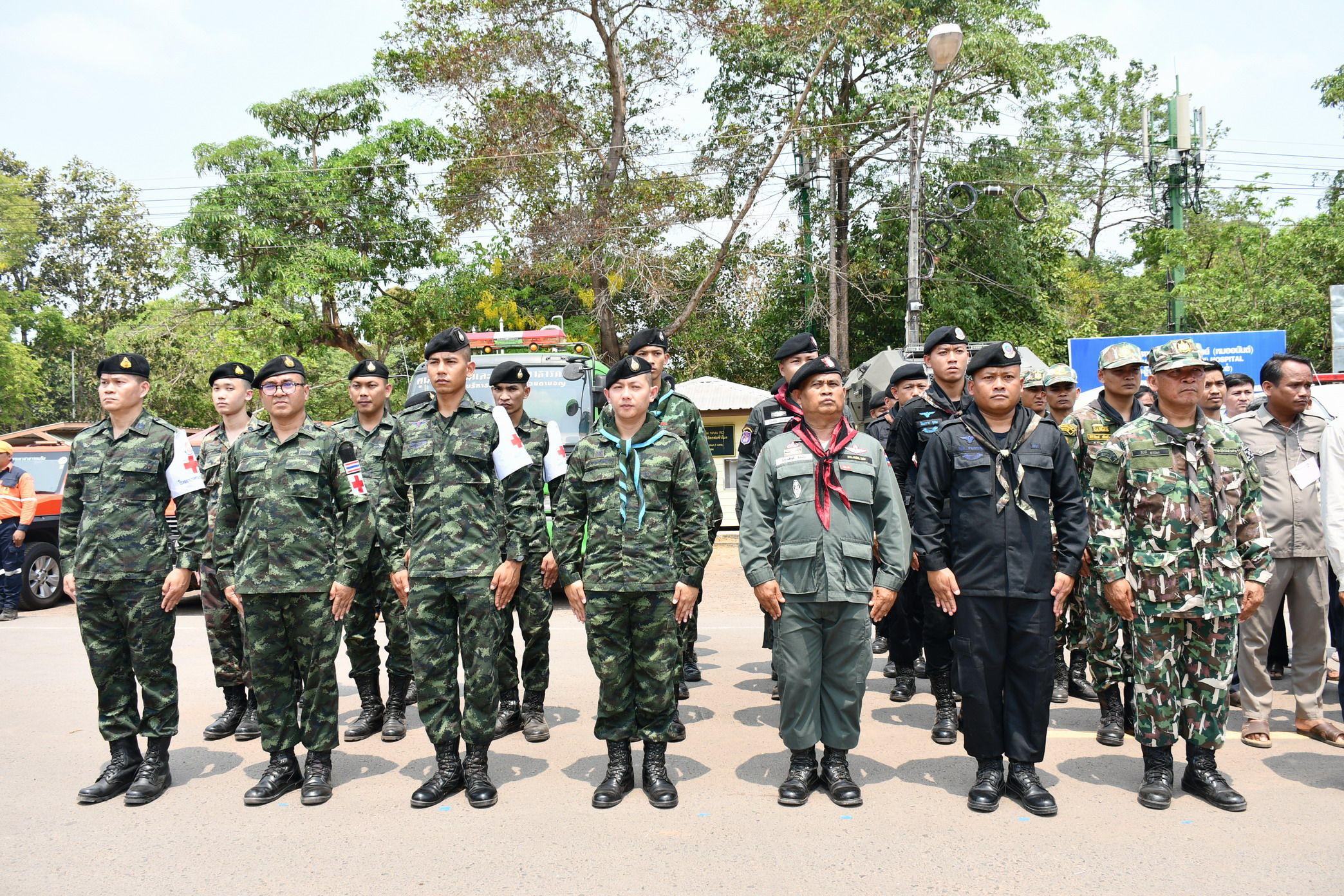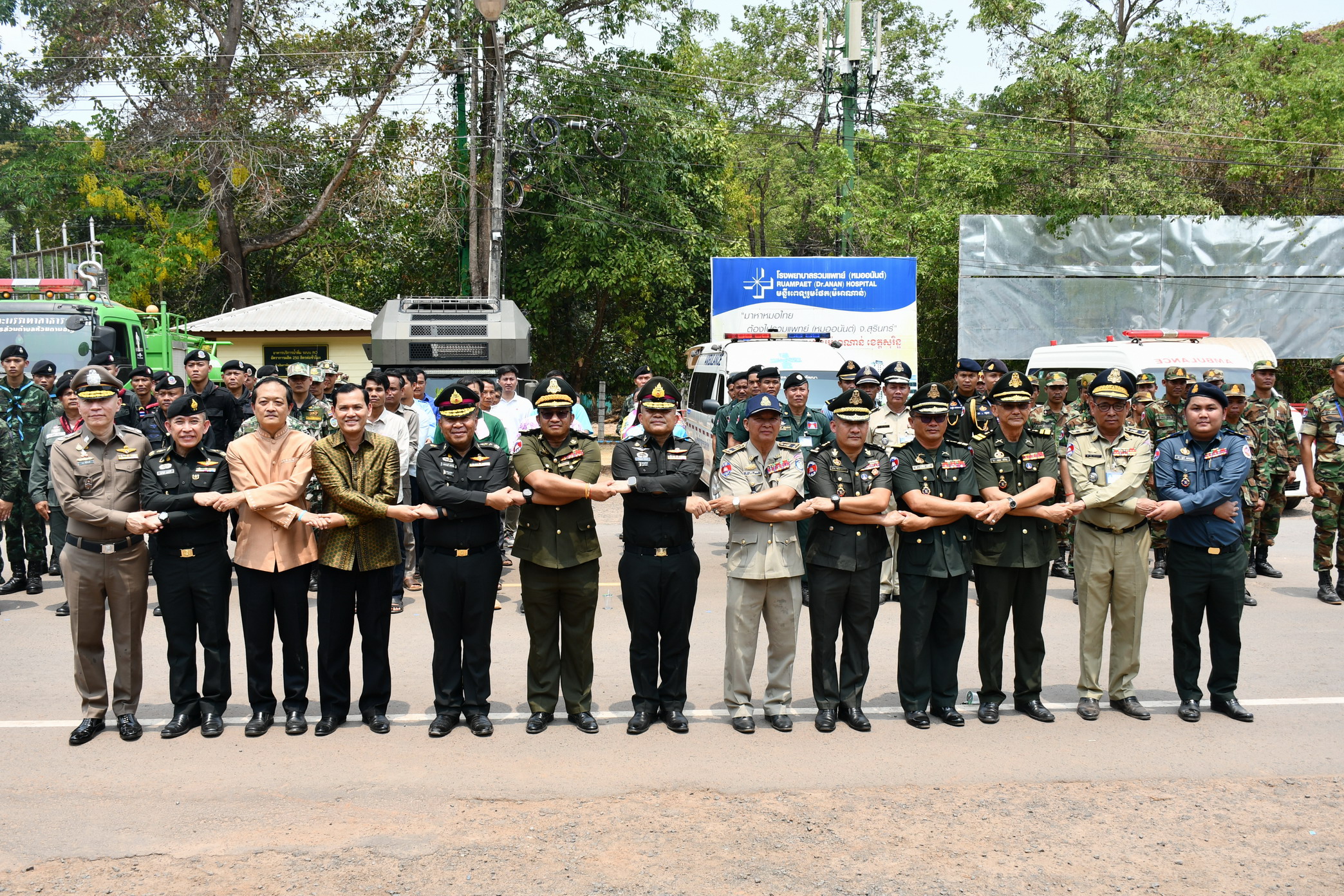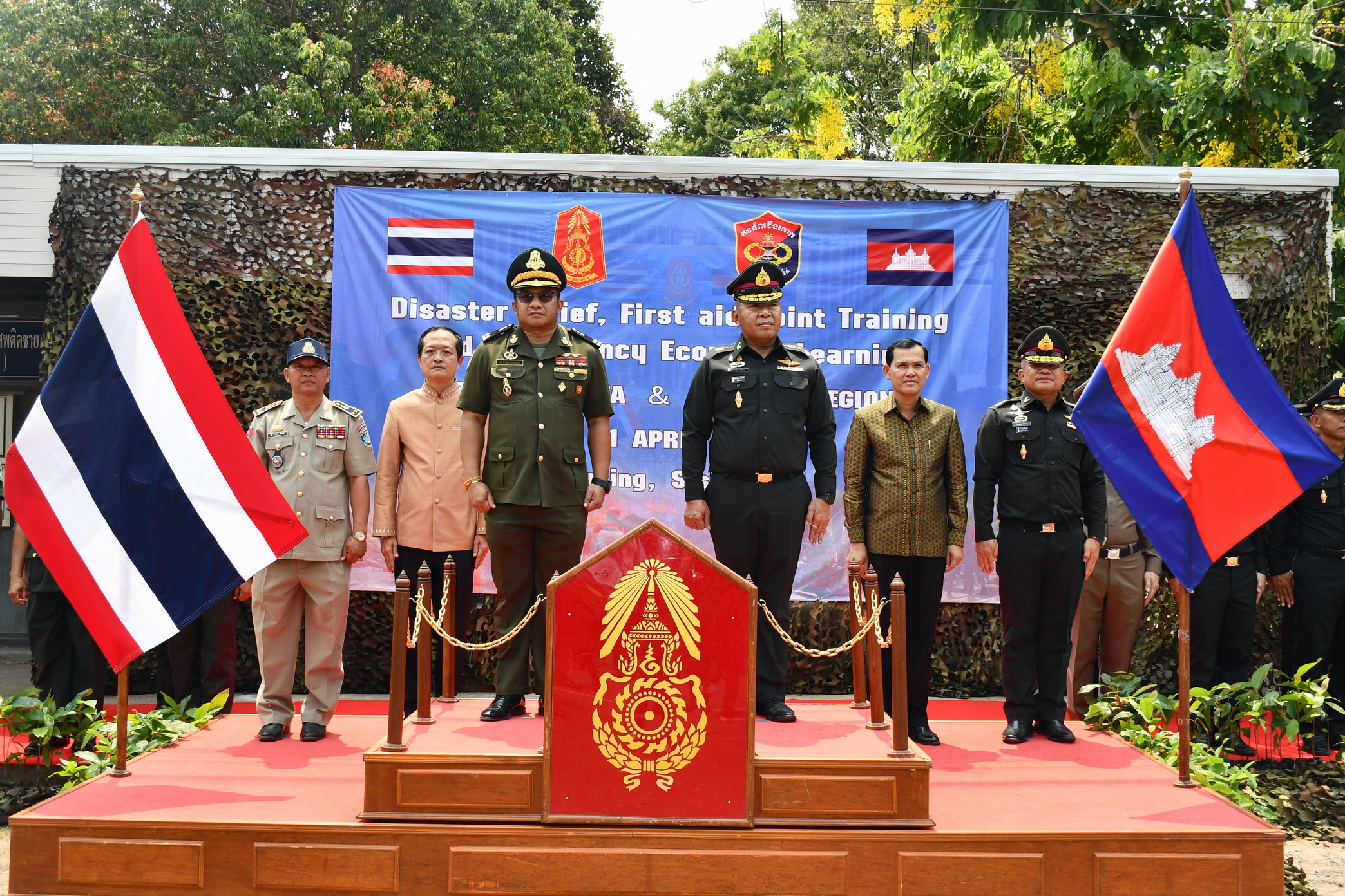 ศรีสะเกษ แม่ทัพ 2 ชาติจับมือปิดการฝึกอบรมบรรเทาสาธารณภัยและการปฐมพยาบาล พร้อมทั้งมอบพันธุ์ปลานิลจิตรดา พันธุ์ไก่พื้นเมือง กิ่งพันธุ์ไม้ผลให้กับประชาชนชาวไทยและชาวกัมพูชา
