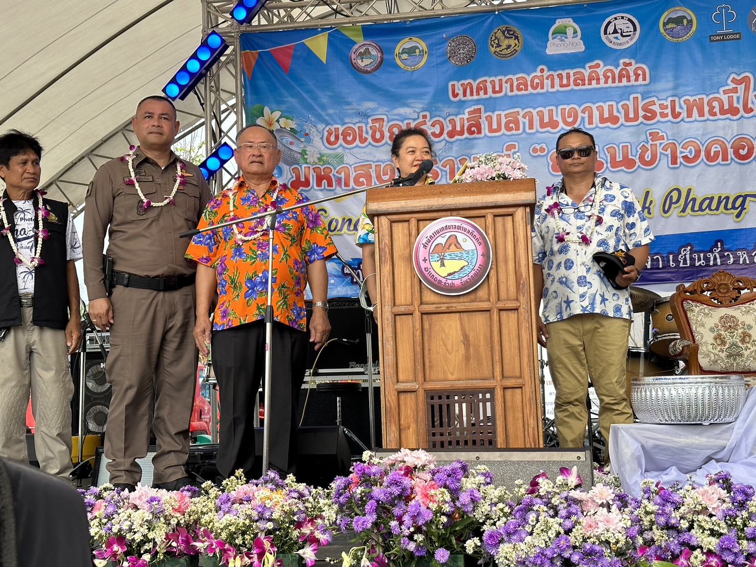 เมื่อเวลา 14.30 น. วันที่ 13 เมษายน 2566 ที่บริเวณบึงน้ำหนองมูลตะกั่ว ตำบลคึกคัก อำเภอตะกั่วป่า จังหวัดพังงา นางสาวนิรชา บัณฑิตย์ชาติ รองผู้ว่าราชการจังหวัดพังงา เป็นประธานเปิดงานประเพณีสงกรานต์ “ถนนข้าวดอกข่า” ครั้งที่ 4 เพื่อส่งเสริมการท่องเที่ยวเชิงวัฒนธรรมและร่วม สืบสานงานประเพณีไทยให้คงอยู่คู่กับประชาชนคนไทยตลอดไป โดยเทศบาลตำบลคึกคัก บูรณาการร่วมกับหน่วยงานในพื้นที่จัดขึ้น ซึ่งได้รับความสนใจจากนักท่องเที่ยวทั้งชาวไทยและต่างชาติ เข้าร่วมงานจำนวนมาก โดยมีมาตรการตรวจค้นสิ่งของผิดกฎหมายก่อนเข้าร่วมงานอย่างเคร่งครัด และมีอุโมงค์พ่นน้ำขนาดใหญ่พร้อมกับมินิคอนเสิร์ตจากศิลปินและร่วมแด๊นซ์กระจายกับดีเจสุดมัน