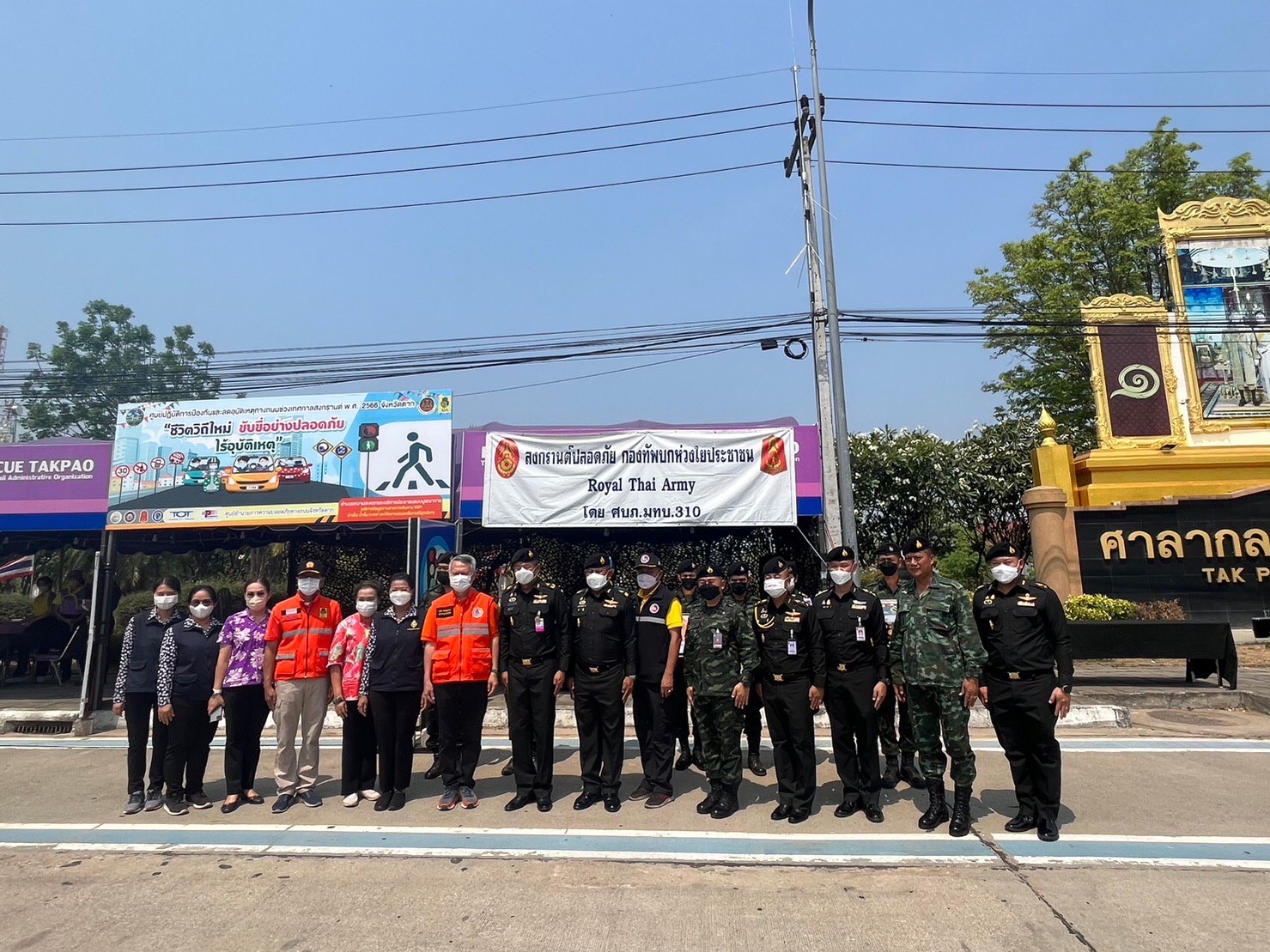 ณ จุดบริการประชาชนบริเวณหน้าศาลากลางจังหวัดตาก อ.เมืองตาก จังหวัดตาก พร้อมทั้งมอบสิ่งของ เครื่องดื่ม เพื่อเป็นขวัญกำลังใจให้กับกำลังพลผู้ปฏิบัติงานฯ