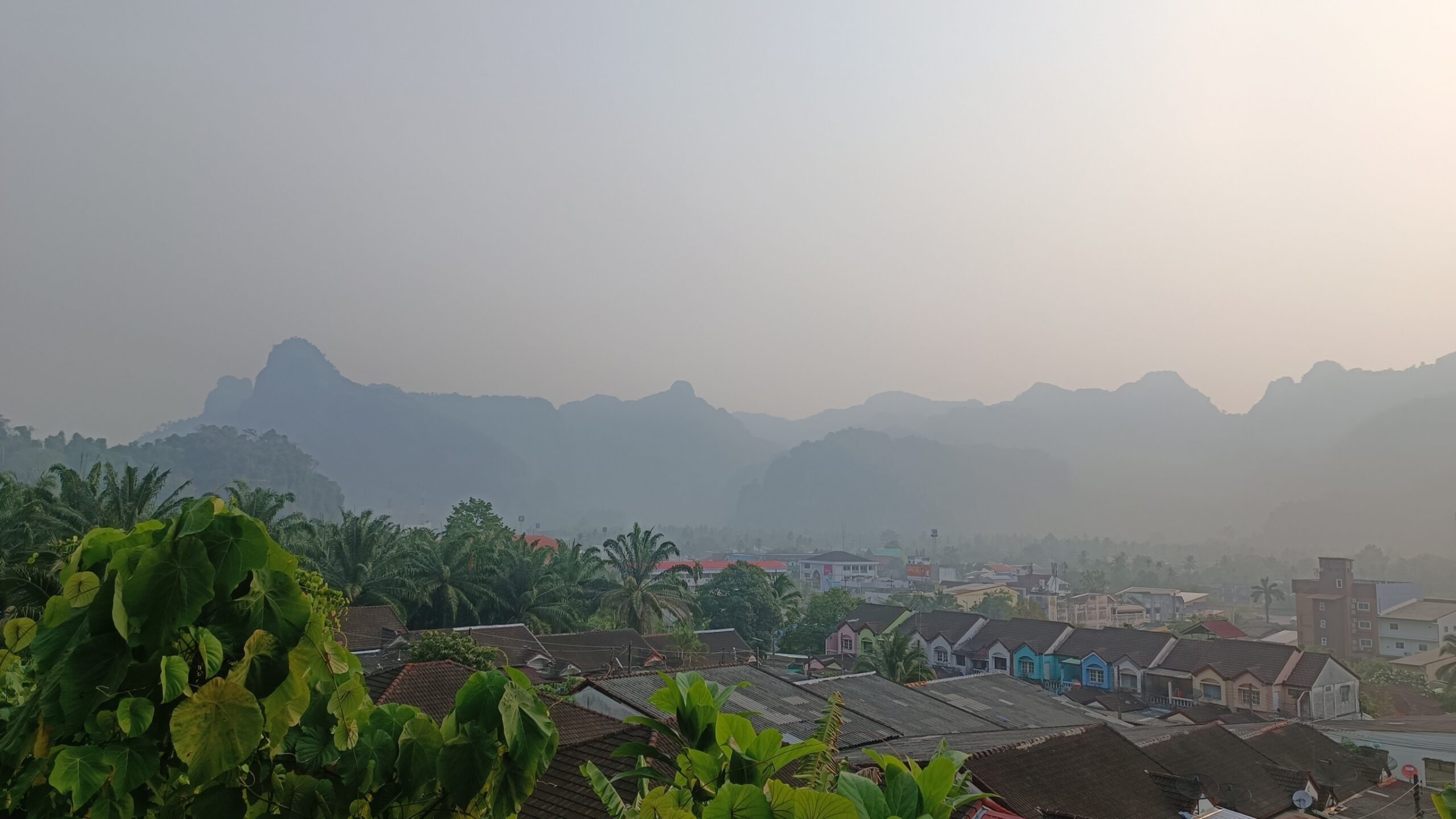 พังงา-หมอกหรือควันเต็มท้องฟ้าเมืองพังงาอย่างต่อเนื่อง ชาวบ้านหวั่นเป็นฝุ่น PM2.5 บอกทางการรีบชี้แจง
