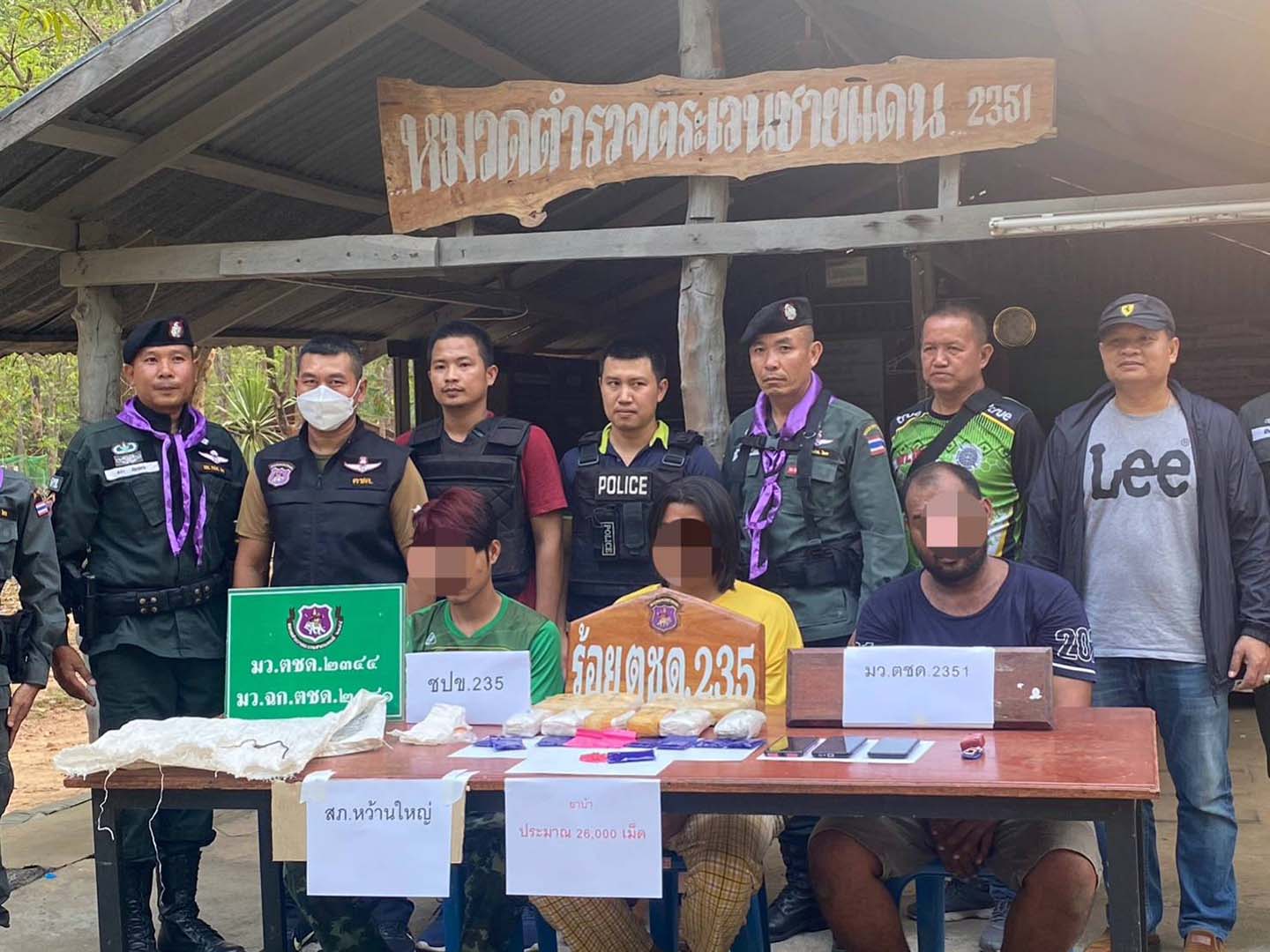 มุกดาหาร ตชด 235 ร่วม ตร หว้านใหญ่ สนธิกำลังล่อซื้อยาบ้า 25,840 เม็ด พร้อมผู้ต้องหา 3 ราย