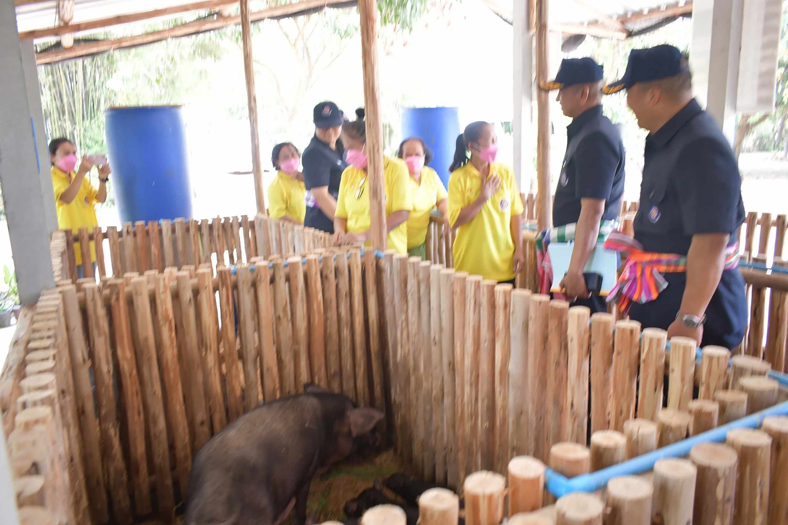 กลุ่มเลี้ยงสุกรพื้นเมือง บ้านดอนสวรรค์ หมู่ 2 ตำบลดงมอน อ.เมืองมุกดาหาร จังหวัดมุกดาหาร พร้อมกับฉีดยาให้กับลูกสุกร เพื่อป้องกันโรคโลหิตจางในลูกสุกรแรกเกิด ให้แก่กลุ่มเลี้ยงสุกรพื้นเมือง บ้านหนองแล้ง หมู่ 10 ตำบลผึ่งแดด อ.เมืองมุกดาหาร จังหวัดมุกดาหาร