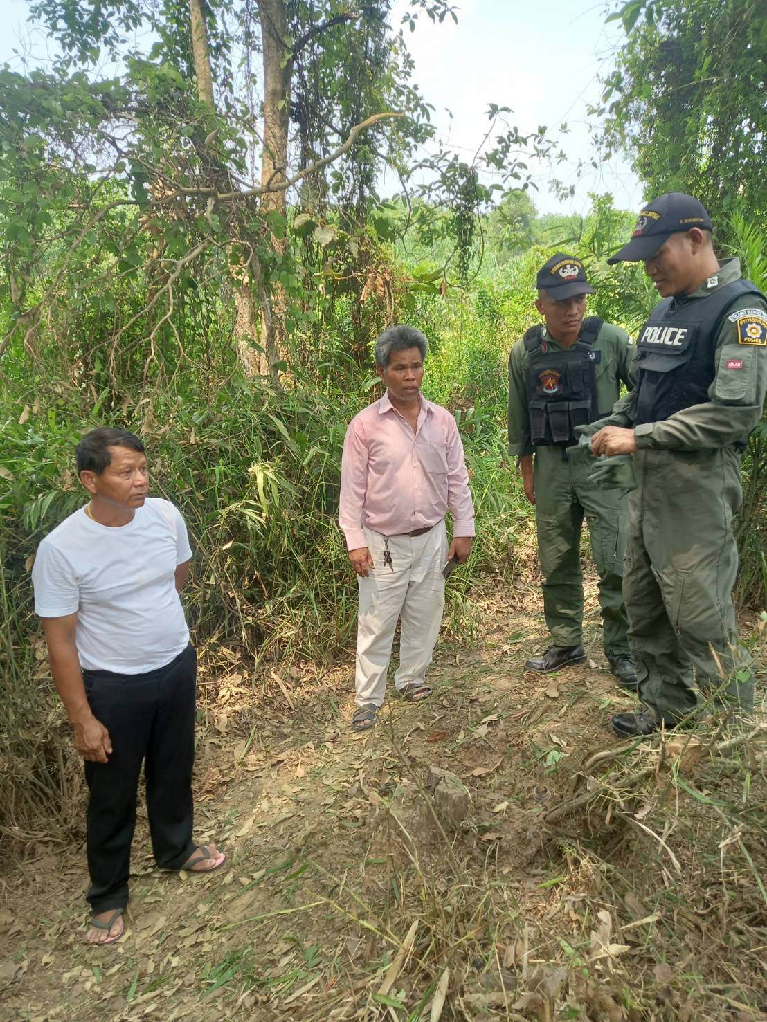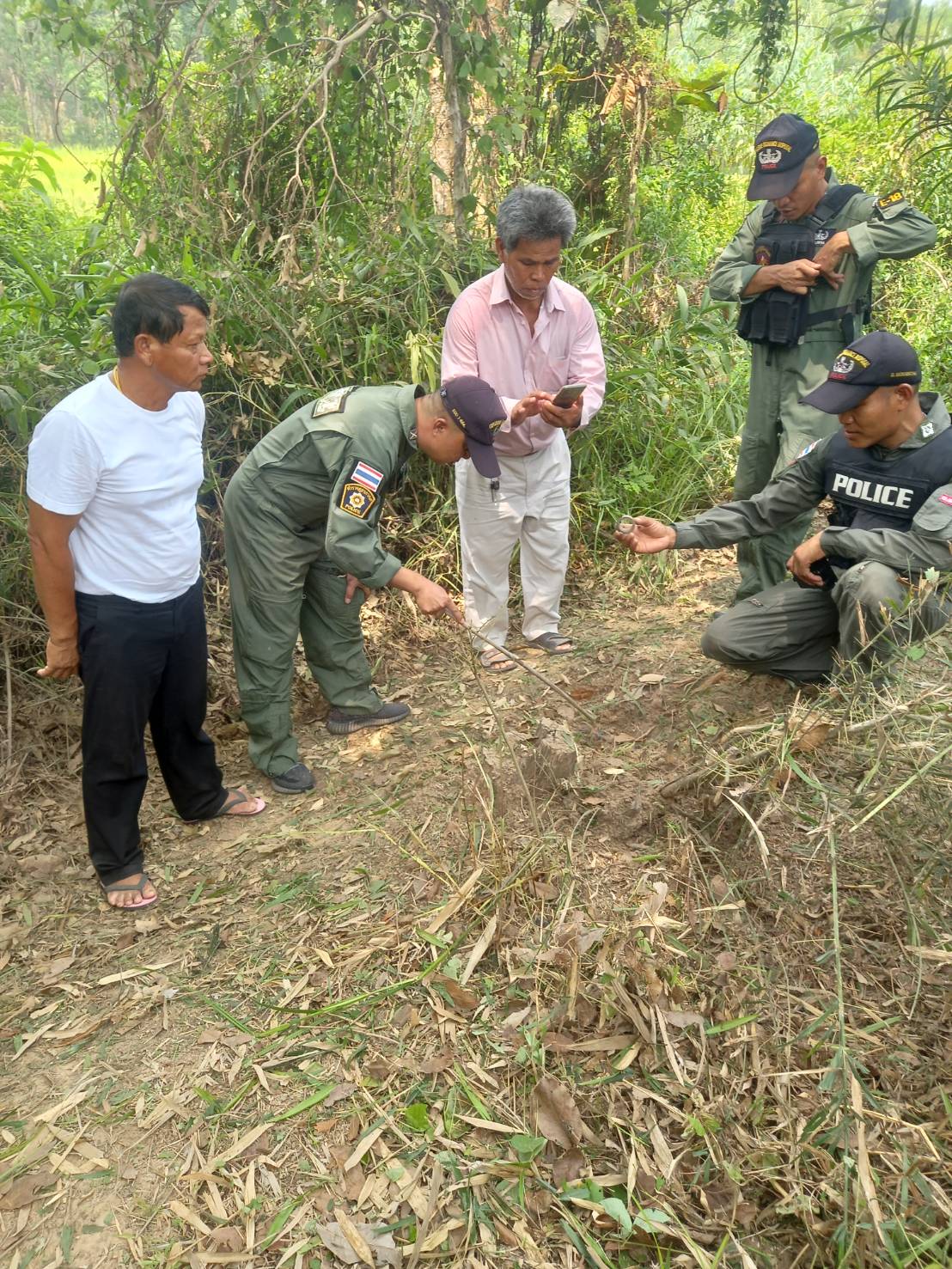 ต่อมาเจ้าหน้าที่ ตร.ชุดเก็บกู้ทำลายวัตถุระเบิด ตร.ภ.จว.ศรีสะเกษ ได้เดินทางมาตรวจสอบวัตถุระเบิดดังกล่าว พบว่า เป็นลูกระเบิด PG 7 ซึ่งใช้ยิงกับเครื่องยิงจรวจอาร์พีจี สภาพของลูกระเบิดพร้อมระเบิดได้ตลอดเวลา ทำให้เจ้าหน้าที่ไม่สามารถที่จะเก็บกู้ได้ ดังนั้น เจ้าหน้าที่ชุดเก็บกู้ทำลายวัตถุระเบิด จึงได้ใช้วิธีทำลายลูกระเบิด PG 7 โดยการกั้นบริเวณไม่ให้มีคนเข้าไปใกล้ลูกระเบิดและดำเนินการทำลายลูกระเบิดทันทีเสียงดังสนั่นหวั่นไหวไปทั่วบริเวณ