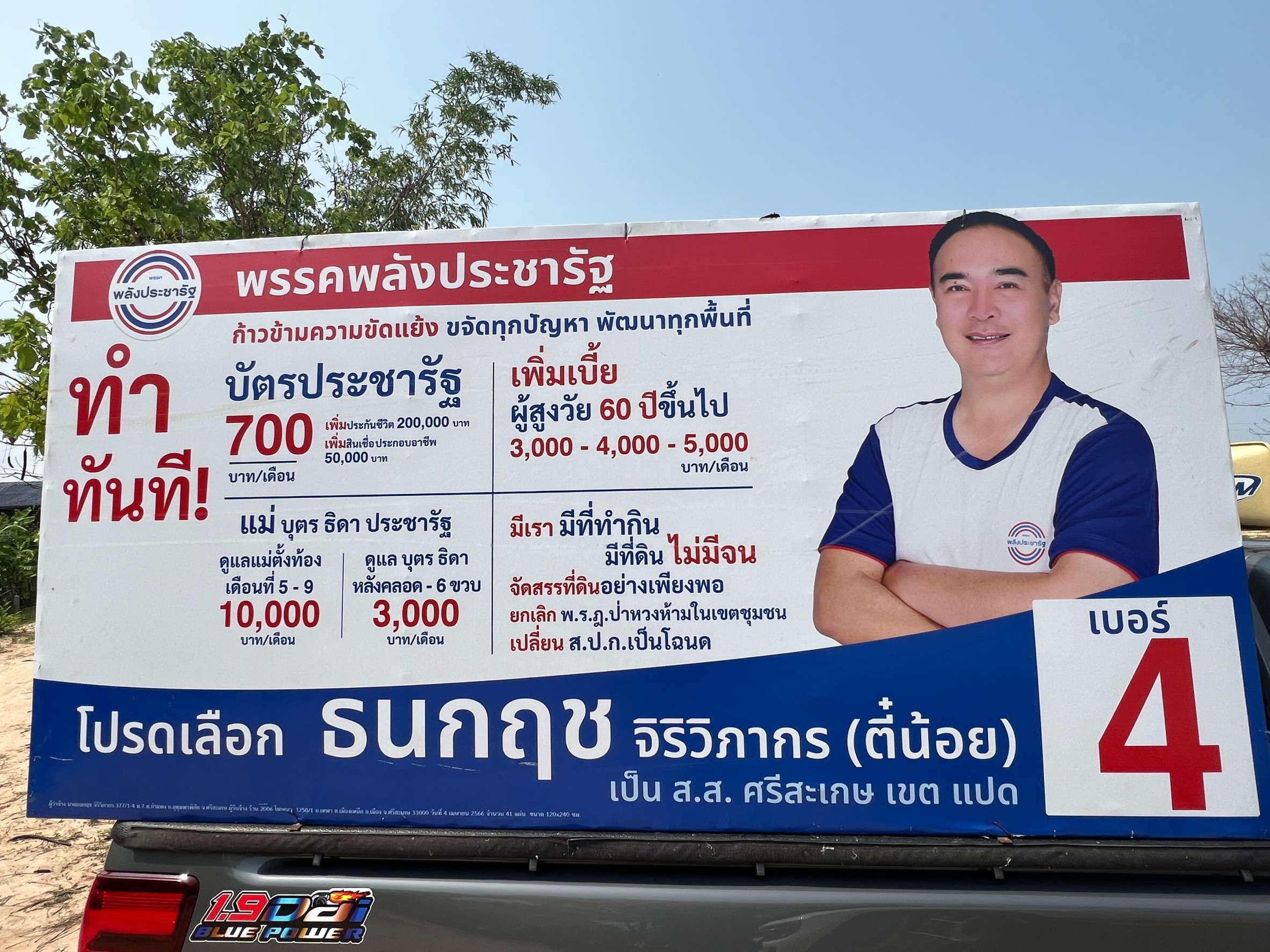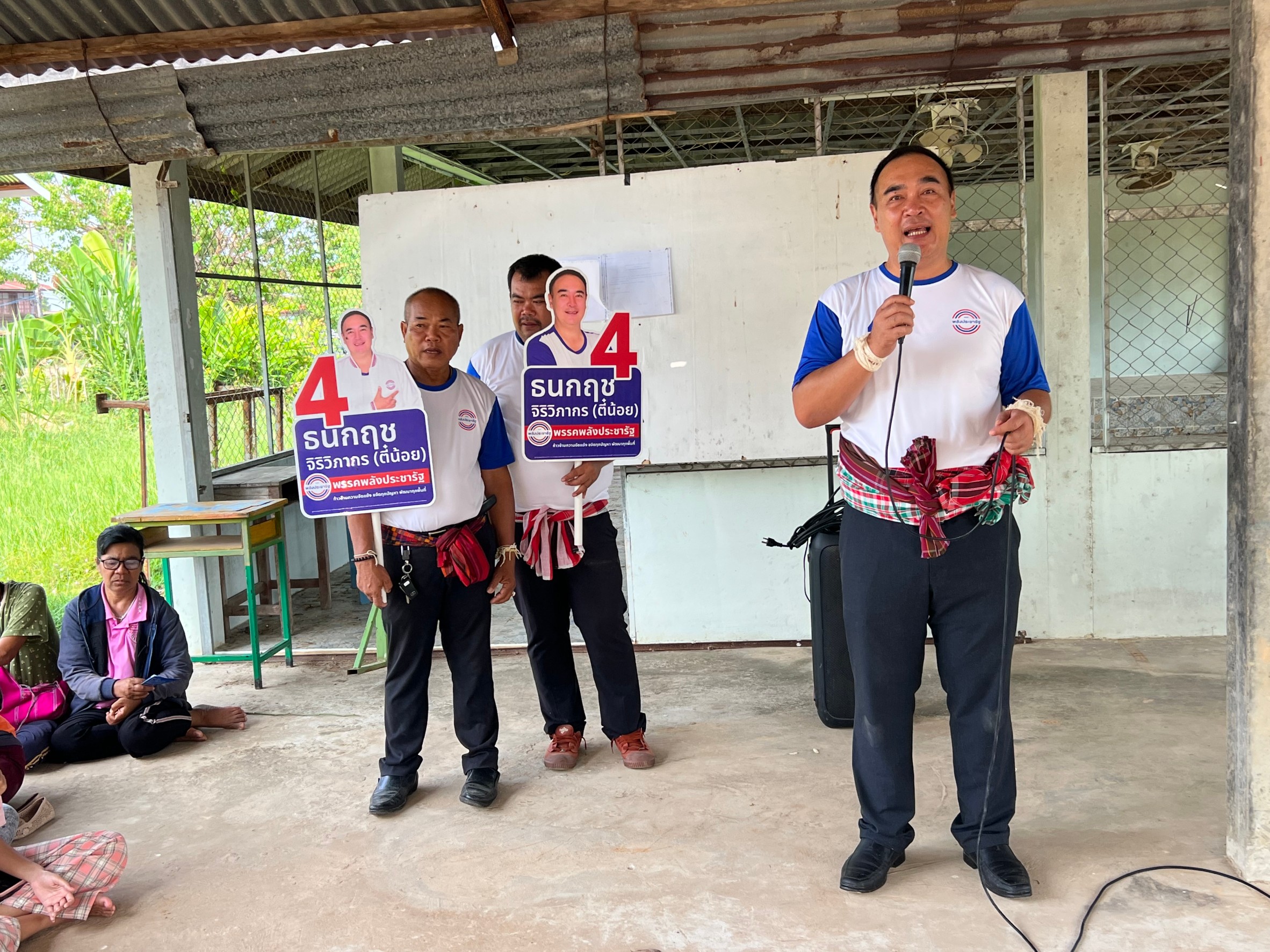 เมื่อวันที่ 20 เม.ย. 66 ผู้สื่อข่าวรายงานว่า ที่ศาลากลางบ้าน บ้านหนองดุม ต.หนองใหญ่ อ.เมืองจันทร์ จ.ศรีสะเกษ นายธนกฤช จิริวิภากร หรือ ตี๋น้อย ผู้สมัคร ส.ส.ศรีสะเกษ เขต 8 เบอร์ 4 พรรคพลังประชารัฐ พร้อมด้วยกลุ่มผู้สนับสนุน ได้เดินทางมาปราศรัยกับประชาชนชาวบ้านหนองดุม และหมู่บ้านใกล้เคียง เพื่อชี้แจงนโยบายของพรรคพลังประชารัฐให้กับประชาชนได้รับทราบว่า มีนโยบายที่ดีเพื่อชาติและประชาชนอย่างไรบ้าง เช่น บัตรประชารัฐ 700 บาทต่อเดือน เพิ่มเบี้ยผู้สูงวัย 60 ปีขึ้นไป 3,000 บาท 4,000 บาท และ 5,000 บาทต่อเดือน แม่บุตรธิดาประชารัฐ ดูแลแม่ตั้งท้องเดือนที่ 5 – 9 เดือนละ 10,000 บาทต่อเดือน ดูแลบุตรธิดาหลังคลอด – 6 เดือน 3,000 บาทต่อเดือน มีเรา มีที่ทำกิน มีที่ดินไม่มีจน จัดสรรที่ดินอย่างพอเพียง ซึ่งปรากฏว่าได้รับความสนใจจากประชาชนพากันมารับฟังการปราศรัยอย่างคึกคักมาก