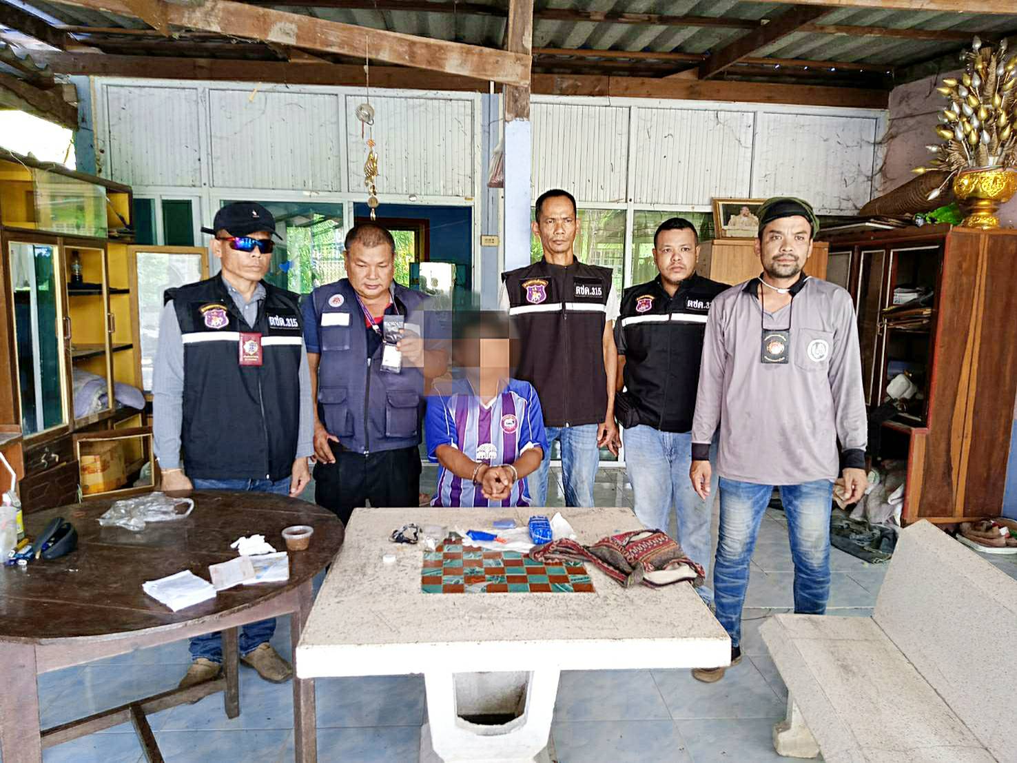 โดยสายลับให้ข้อมูลว่า นายขนุน เพิ่งไปรับยาบ้ามาจำนวนหนึ่ง จึงประสานทีมเจ้าหน้าที่ฯ วางแผนสนธิกำลังเข้าปิดล้อมจับกุม ต่อมาในเวลา 11:00 น. เข้าตรวจสอบบ้านตามที่สายลับแจ้งว่าเป็นบ้านที่นายขนุน พักอาศัยและใช้ค้ายาบ้า พบตัวนายขนุน โดยปลัดอำเภอหัวหน้าฝ่ายความมั่นคง และรอง ผบ.ร้อย ตชด.315 ได้แสดงบัตรเจ้าพนักงาน ปปส. เพื่อขอเข้าทำการค้นตัวและภายในบ้าน ผลการตรวจค้นพบยาบ้า ภายในบ้านและที่ตัวนายขนุน รวม 1,963 เม็ด ซึ่งนายขนุนยอมรับว่ายาบ้าทั้งหมดเป็นของตน จึงนำตัวนายขนุนพร้อมของกลางส่งพนักงานสอบสวน สภ.แก่งโสภา เพื่อดำเนินการตามกฎหมายต่อไป ปรีชา นุตจรัส รายงานข่าวพิษณุโลก