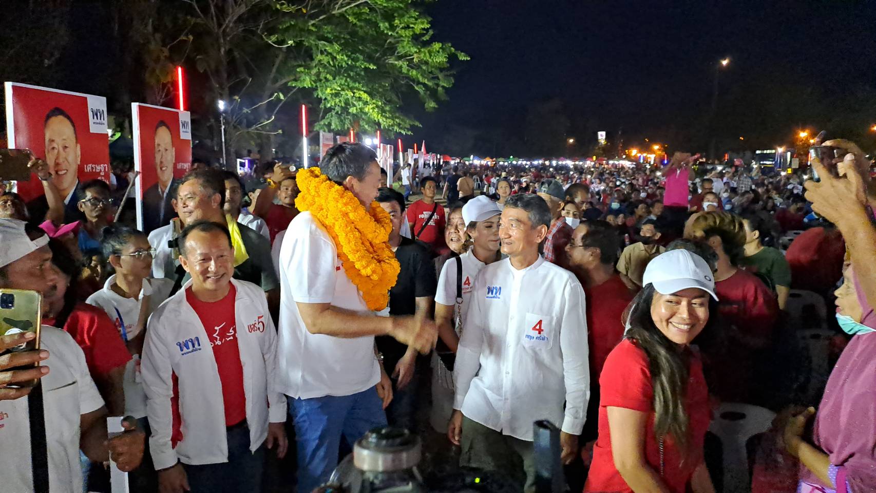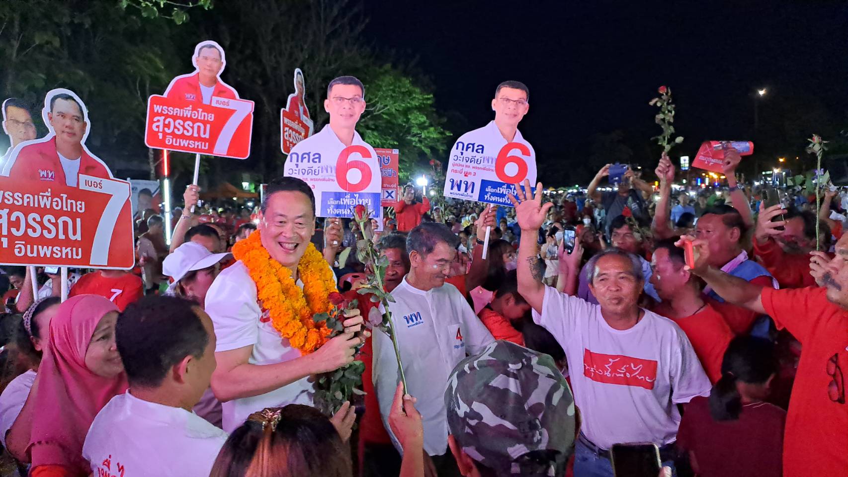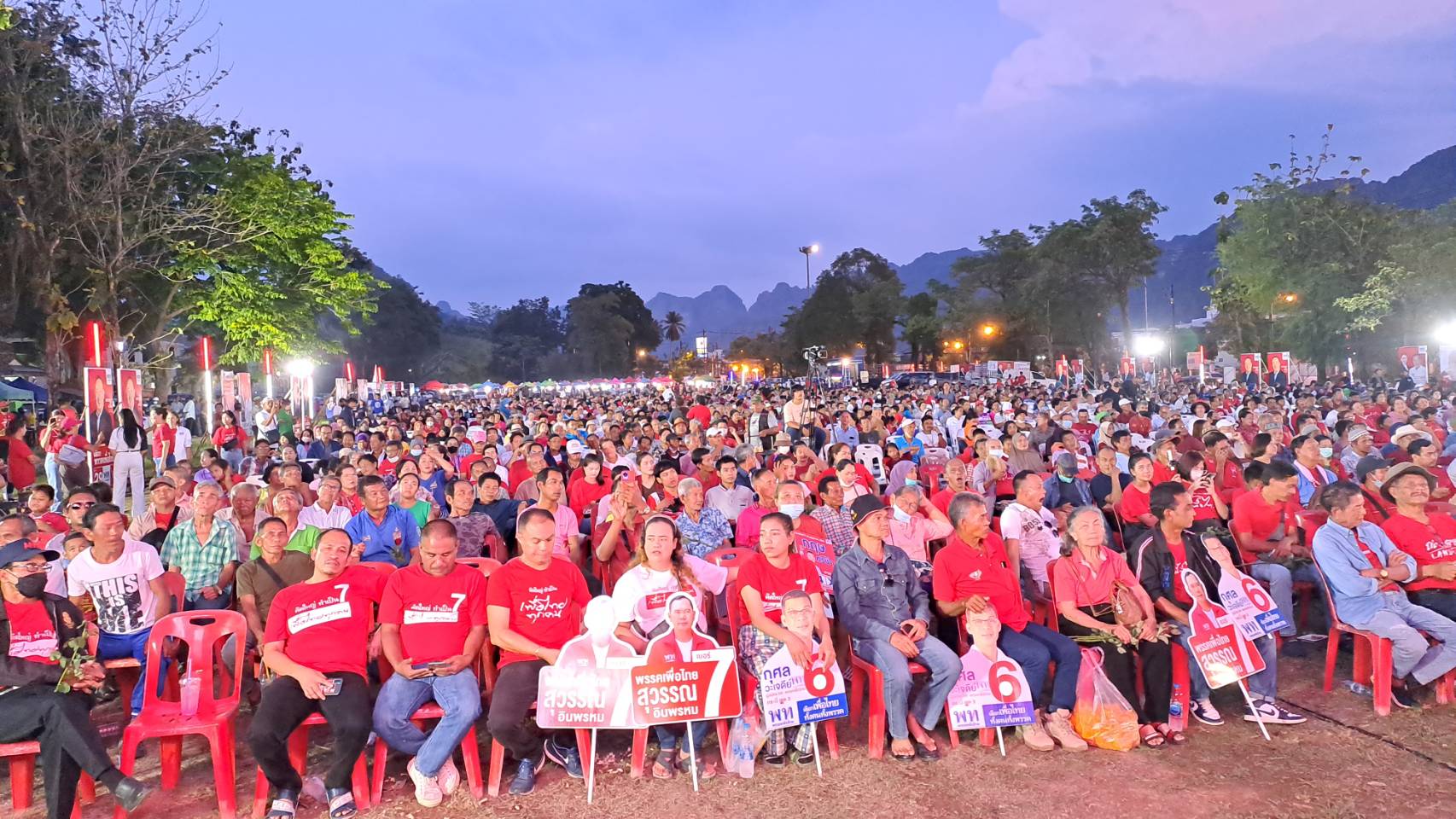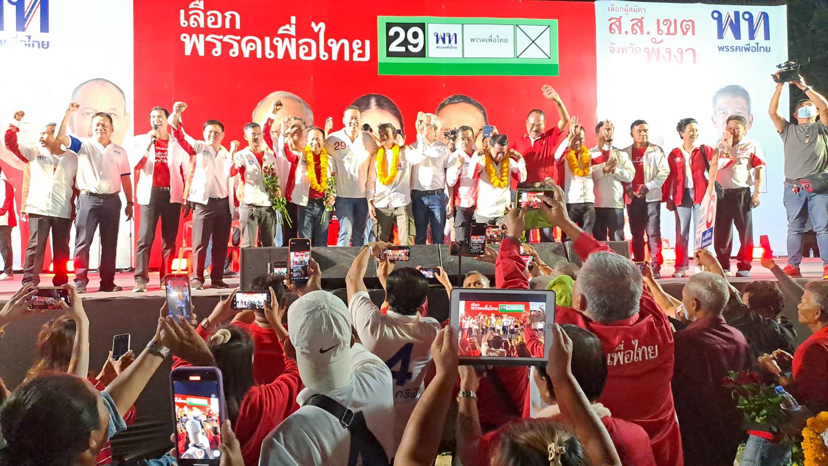 เมื่อเวลา 17.00 น.วันที่ 25 เมษายน 2566 ณ ลานหน้าที่ว่าการอำเภอเมืองพังงา(หลังเก่า) อำเภอเมือง จังหวัดพังงา พรรคเพื่อไทยเปิดเวทีปราศรัย ภายใต้คำขวัญ “คิดใหญ่ ทำเป็น เพื่อไทยทุกคน เพื่อชาวพังงา” นำโดย นายเศรษฐา ทวีสิน แคนดิเดตนายกรัฐมนตรี พรรคเพื่อไทย, นายวิสุทธิ์ ไชยณรุณ ผู้สมัคร ส.ส.แบบบัญชีรายชื่อ พรรคเพื่อไทย, นายจาตุรนต์ ฉายแสง ผู้สมัคร ส.ส.แบบบัญชีรายชื่อ พรรคเพื่อไทย, นายณัฐวุฒิ ใสยเกื้อ ผู้อำนวยการครอบครัวเพื่อไทย พร้อมด้วยผู้สมัคร ส.ส.พังงา พรรคเพื่อไทย ได้แก่ นายธะเนต นาวาล่อง เขต 1 เบอร์5 พรรคเพื่อไทย และ นายกฤษ ศรีฟ้า เขต 2 เบอร์ 4 พรรคเพื่อไทย ด้วยการชูประเด็นสำคัญ คือ ยกระดับพังงากับภูเก็ตซึ่งเป็นคู่แฝดเมืองท่องเที่ยวด้วยการดึงนักท่องเที่ยวจากทั่วโลกเข้ามาพังงานำรายได้เข้าสู่ประเทศ, เงินดิจิทัล 10,000 บาทสำหรับคนอายุ 16 ปีขึ้นไป, พักหนี้เกษตรกรทั้งต้นทั้งดอก 3 ปี และ ใช้การตลาดนำ นวัตกรรมเสริม ทำให้ผลผลิตยาง น้ำมันปาล์ม ราคาสูงขึ้น ผลผลิตดีขึ้น ราคายางไม่ต่ำกว่า 80 บาทต่อกิโลกรัมแน่นอน รวมถึงเดินหน้าปราบยาเสพติดในชุมชนให้สิ้นซาก โดยมีบรรดากองเชียร์ผู้สนับสนุนพรรคเพื่อไทยเข้าร่วมและส่งเสียงเชียร์สนั่นจำนวนกว่า 3,000 คน