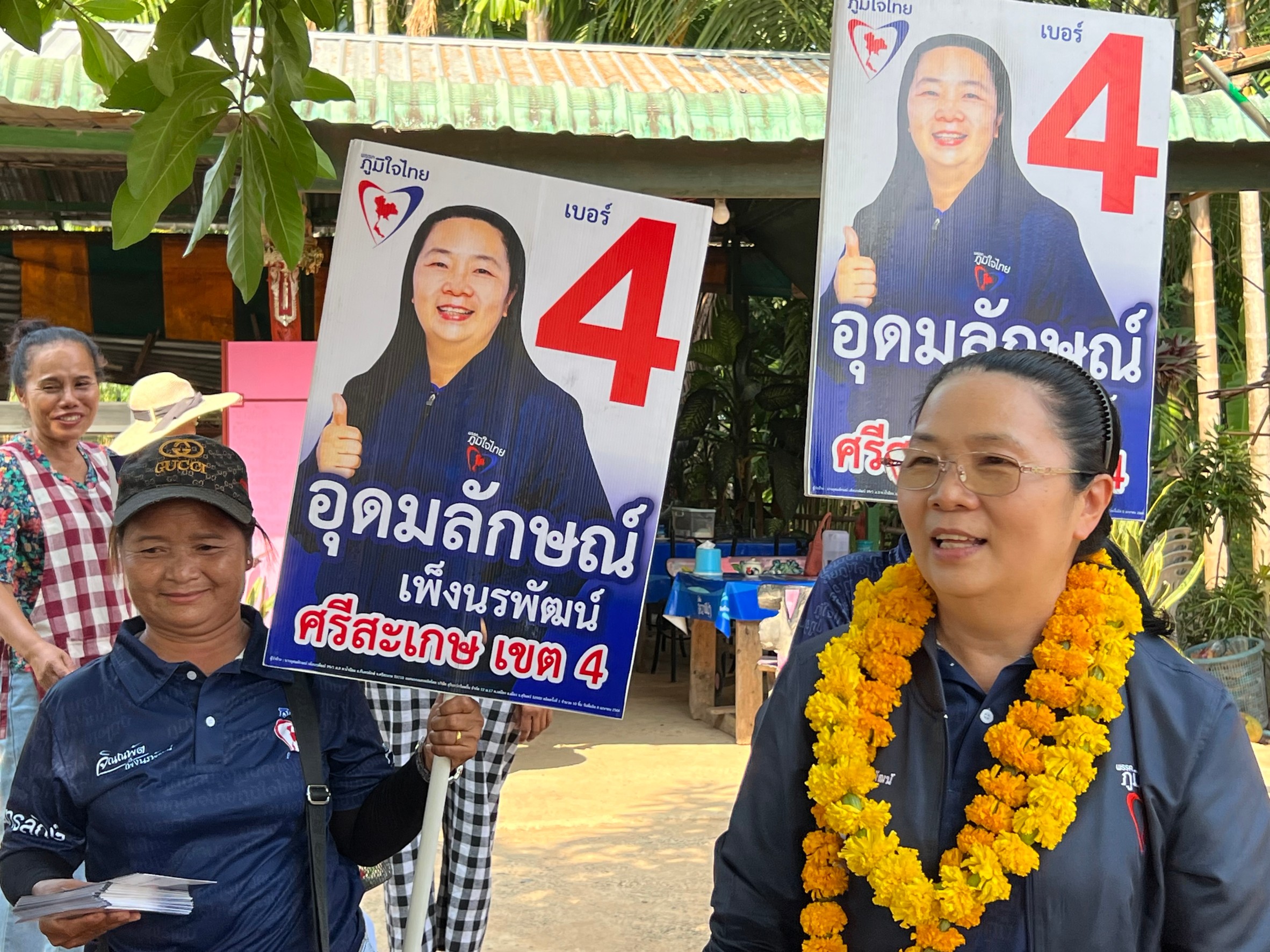 ศรีสะเกษ หมอเจี๊ยบ อุดมลักษณ์ เบอร์ 4 ภูมิใจไทยมั่นใจคว้าชัย ส.ส.เขต 4 เดินเคาะประตูบ้านไหว้ขอคะแนนชาวกันทรลักษ์ไม่สนกระแสแลนด์สไลด์ เชื่อมั่นพี่น้องชาวบ้านให้การสนับสนุนเต็มที่