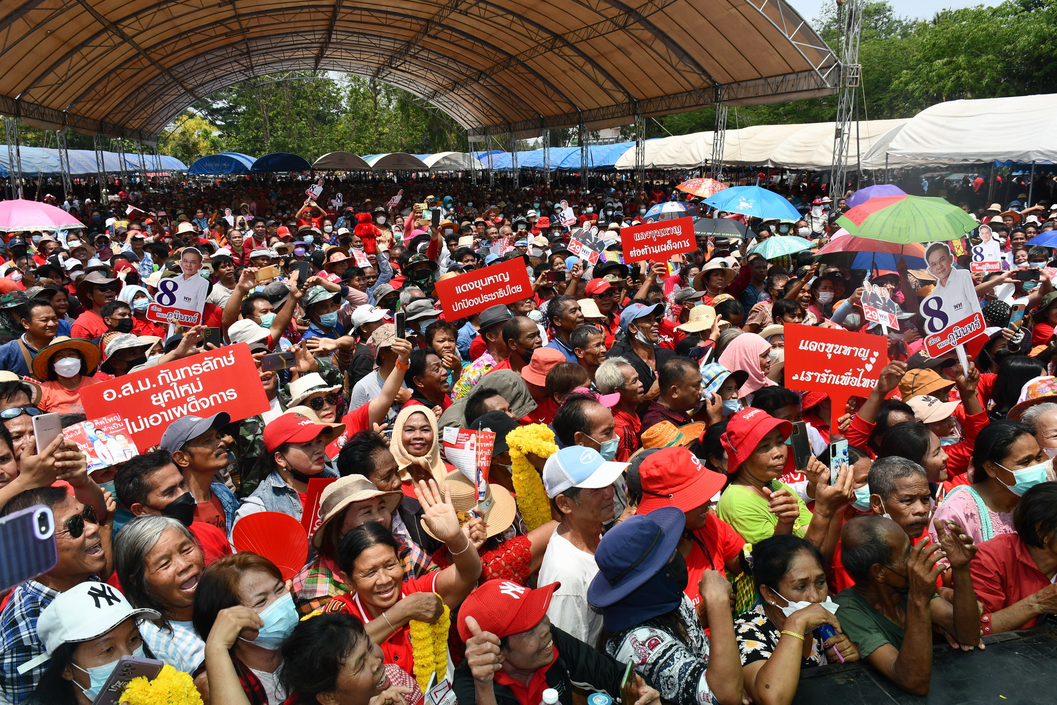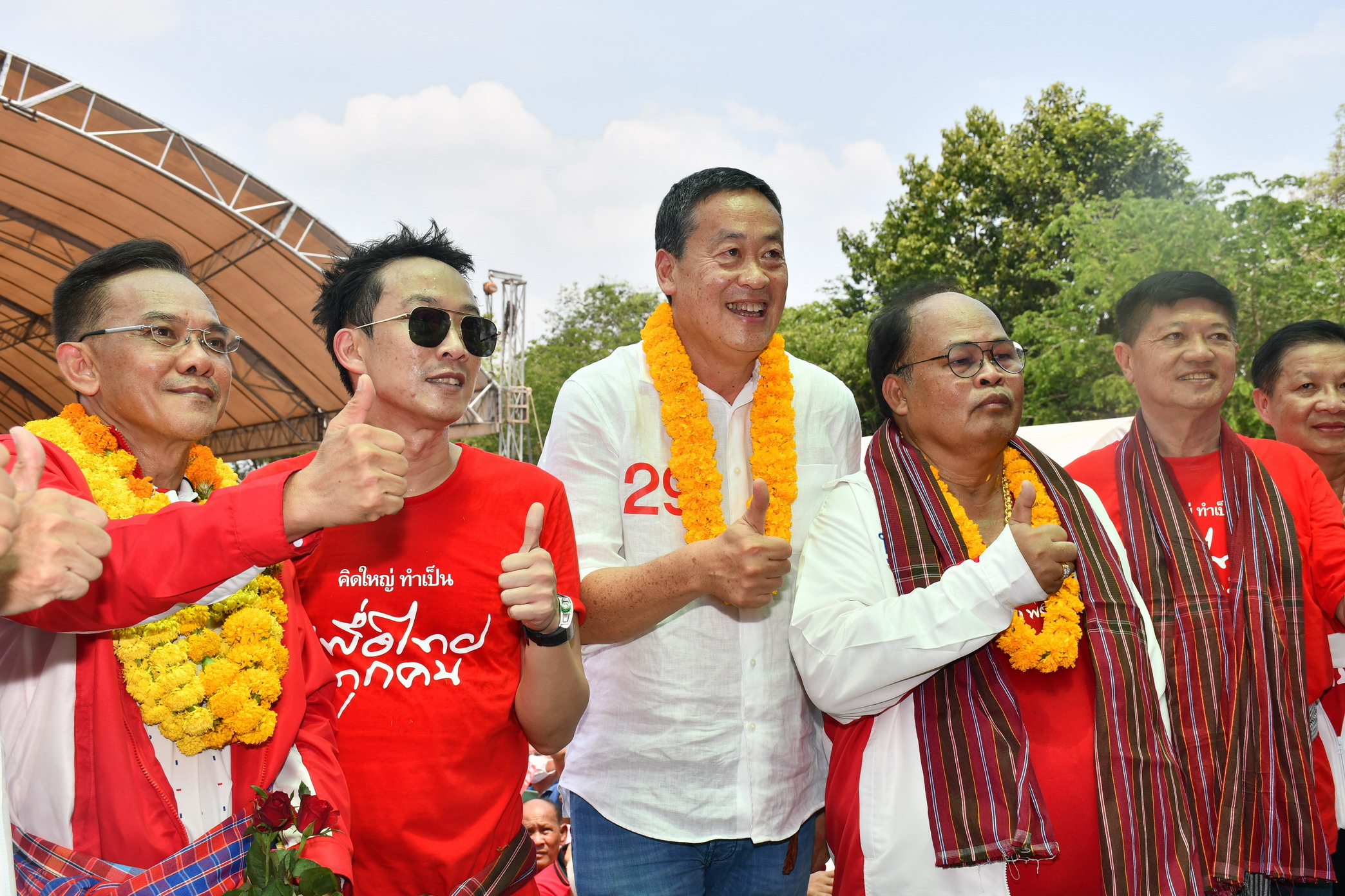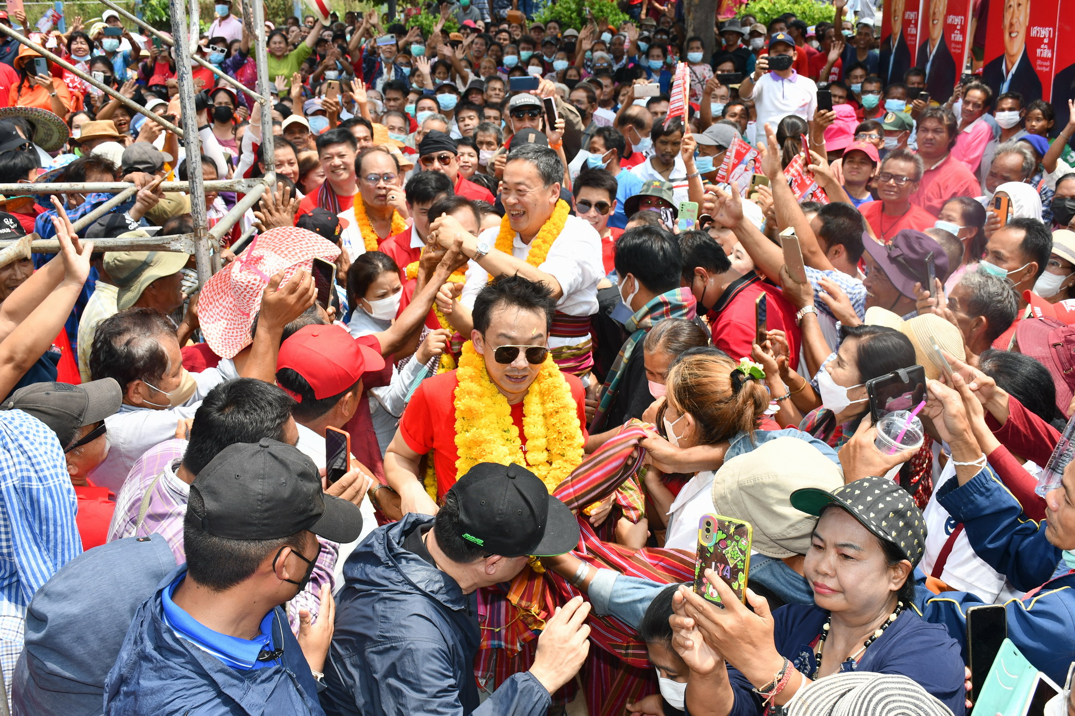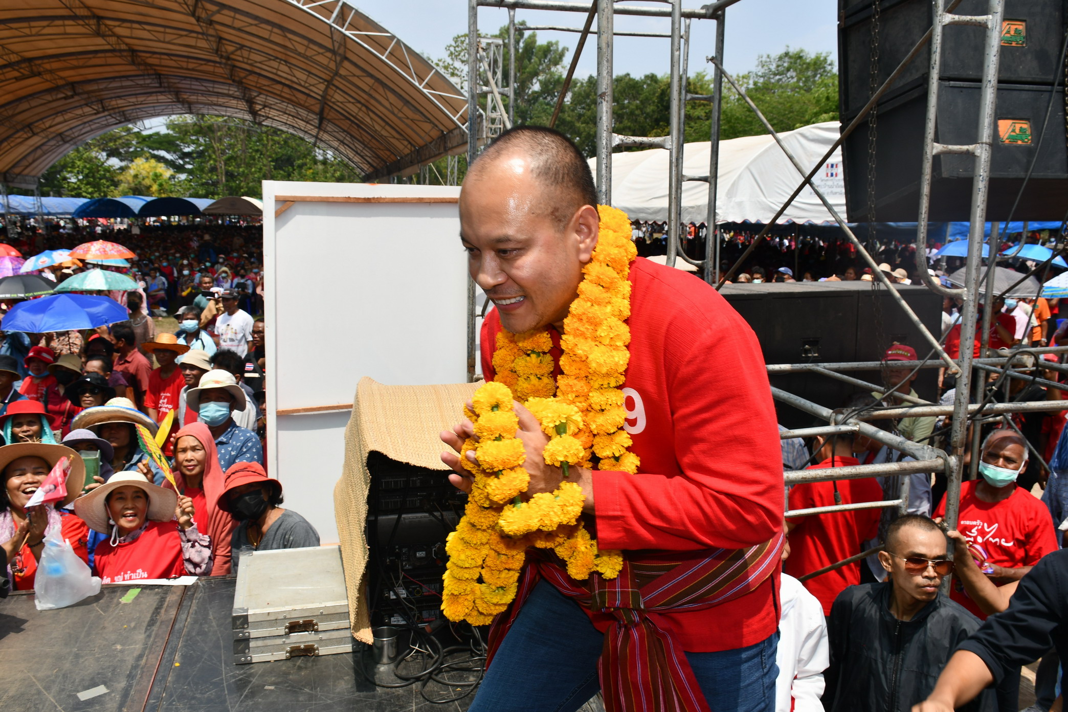 เมื่อวันที่ 29 เม.ย. 66 ผู้สื่อข่าวรายงานว่า ที่บริเวณสนามหน้าที่ว่าการ อ.กันทรลักษ์ จ.ศรีสะเกษ นายเศรษฐา ทวีสิน แคนดิเดตนายกรัฐมนตรี พรรคเพื่อไทย พร้อมด้วย นายพานทองแท้ ชินวัตร นายจาตุรงค์ ฉายแสง กรรมการยุทธศาสตร์ พรรคเพื่อไทย นายณัฐวุฒิ ใสยเกื้อ ผู้อำนวยการครอบครัวเพื่อไทย ได้นำคณะเดินทางไปปราศรัยหาเสียงช่วยผู้สมัคร ส.ส.พรรคเพื่อไทย โดยมีผู้สมัคร ส.ส.ศรีสะเกษ พรรคเพื่อไทย ได้แก่ นายสุรชาติ ชาญประดิษฐ์ เขต 2 นพ.ภูมินทร์ ลีธีระประเสริฐ เขต 4 นายอมรเทพ สมหมาย เขต 5 นายวีระพล จิตสัมฤทธิ์ เขต 6 น.ส.วิลดา อินฉัตร เขต 7 และนางสุนีย์ อินฉัตร แม่ของ น.ส.วิลดา อินฉัตร มาให้การต้อนรับ มีมวลชนคนเสื้อแดงมาร่วมรับฟังการปราศรัยประมาณ 20,000 คน บรรยากาศเป็นไปอย่างคึกคักมาก