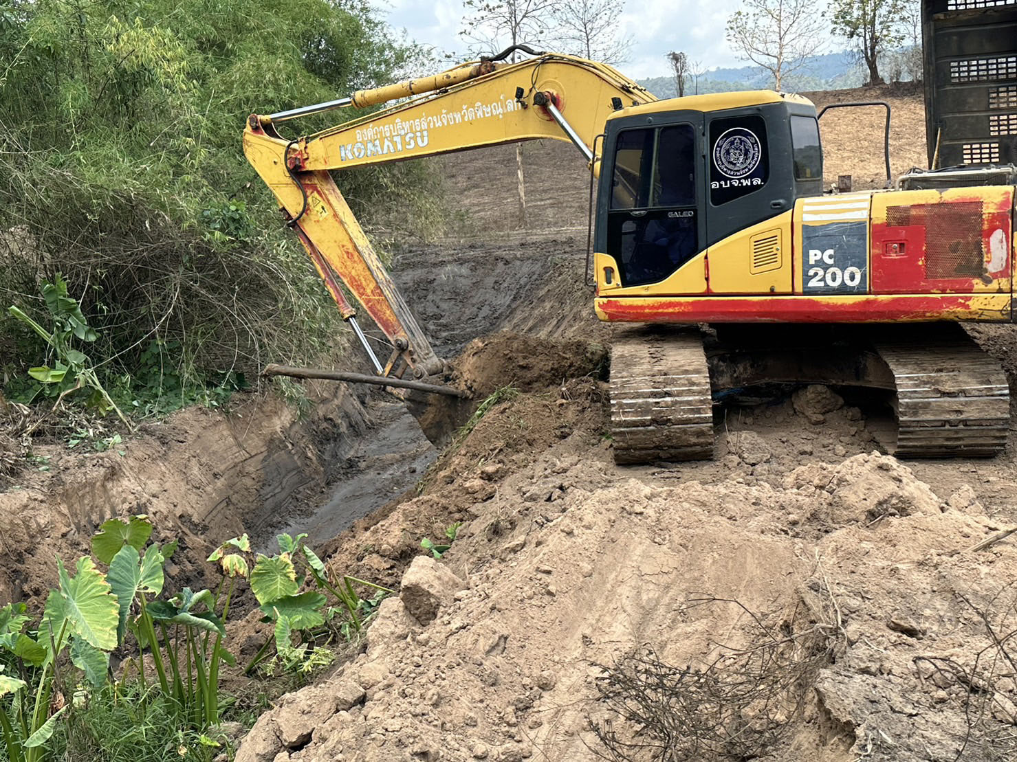 อบจ.พิษณุโลก ส่งเครื่องจักรกลช่วยขุดลอกคลองแก้ปัญหาตื้นเขินและกักเก็บน้ำไว้ให้เกษตรกรใน ต.น้ำกุ่ม อ.นครไทย ใช้ทำการเกษตร