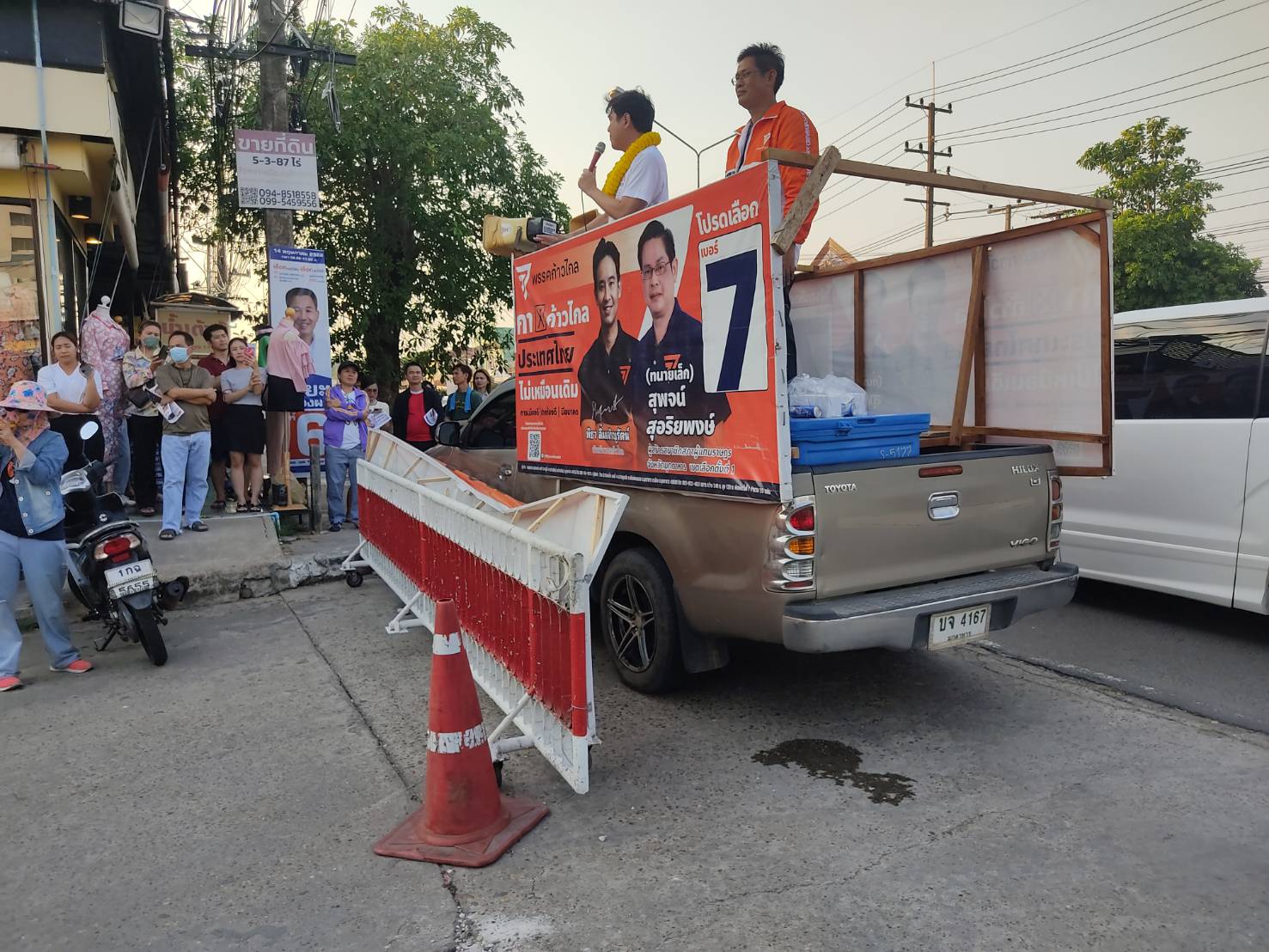 โดยขึ้นรถยนต์เปิดปราศรัยชู นโยบายทั้ง 300 นโยบายของพรรคก้าวไกลเป็นนโยบายที่ครอบคลุมทุกเรื่อง ทุกคน ทุกภาค เพราะถูกคิดโดยคนส่วนใหญ่เป็นหลัก ในพื้นที่อีสานและมุกดาหาร อย่างเช่น นโยบายกระจายอำนาจและนโยบายเกษตร นโยบายขนส่งสาธารณะของก้าวไกล ยังช่วยลดภาวะหนี้สินของประชาชน เพราะเมื่อมีขนส่งสาธารณะแล้ว ความจำเป็นที่จะต้องครอบครองรถส่วนตัวก็จะลดลง ส่วนนโยบายสวัสดิการของก้าวไกล ก็เป็นสวัสดิการที่ครบวงจร ตั้งแต่เกิดจนตาย โดยเด็กแรกเกิดจะได้ของขวัญแรกเกิด 3,000 บาท ให้พ่อ-แม่ซื้อสิ่งของจำเป็นในการเลี้ยงลูก ส่วนผู้สูงอายุก็จะได้รับเงินผู้สูงวัยเดือนละ 3,000 บาท นโยบายเกษตรของก้าวไกล ก็จะช่วยให้เกษตรกรได้มีที่ดินเป็นของตัวเอง จากการพิสูจน์สิทธิ์ใหม่ แปลงที่ดิน ส.ป.ก. ให้เป็นโฉนด เพื่อให้ประชาชนได้มีที่ดินให้ใช้ประโยชน์ได้อย่างเต็มที่