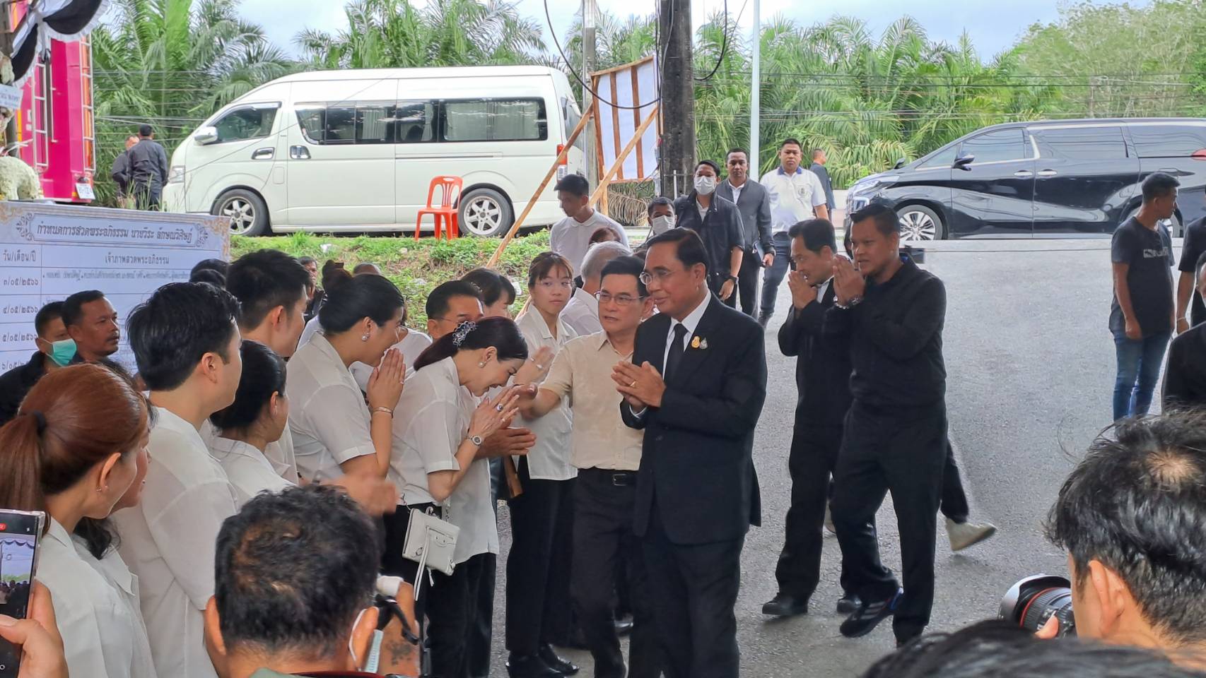 พังงา-ประยุทธ์นำทีมพรรครวมไทยสร้างชาติ เดินทางมาเคารพศพบิดาหัวหน้าพรรคประชาธิปัตย์ ยิ้มอารมณ์ดีชาวบ้านเรียกโกตู่และรุมขอถ่ายรูป