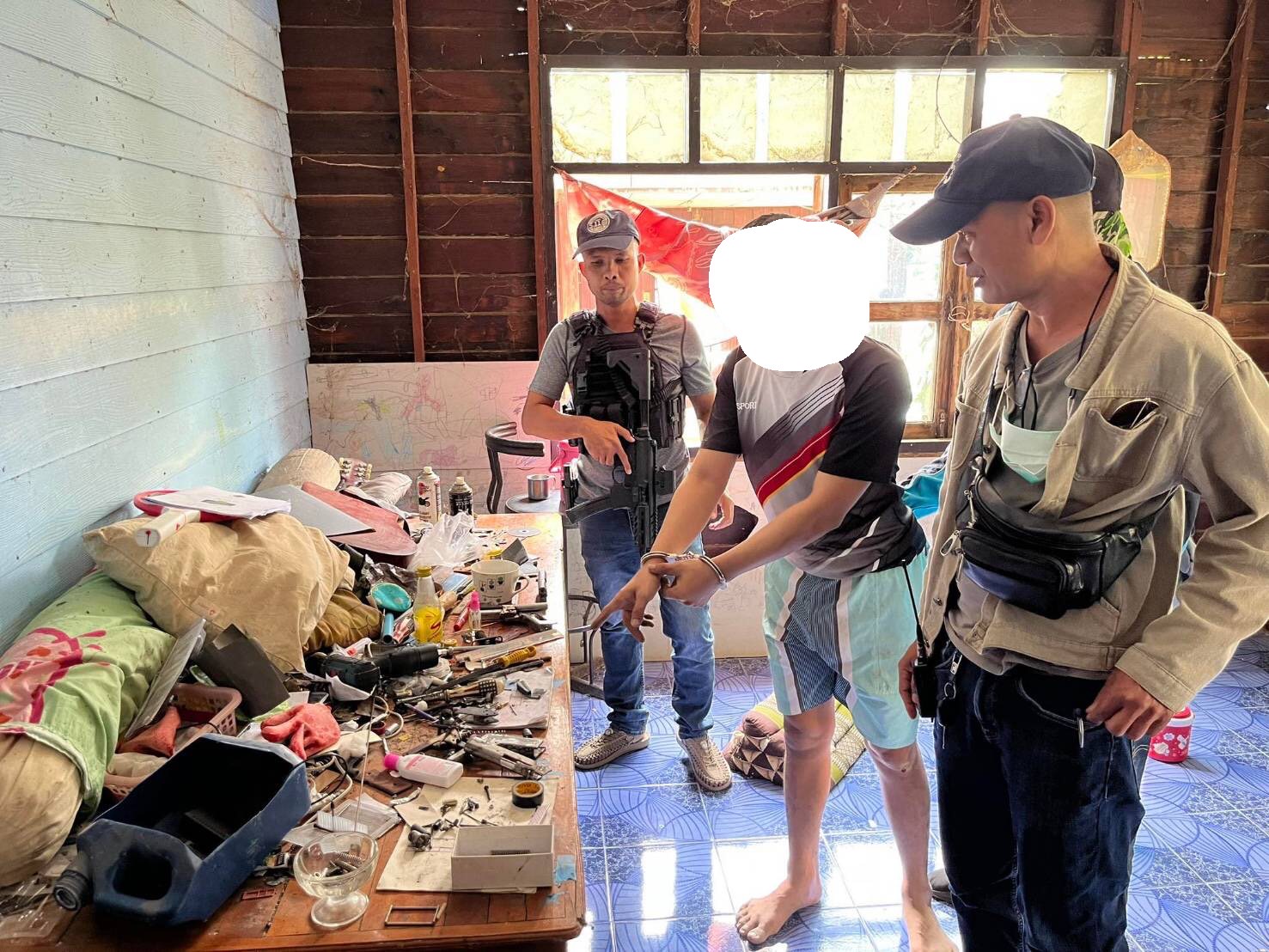 ศรีสะเกษ หนีไม่รอด ไล่ตะครุบ เอเย่นต์ยาบ้า คาอ่างหนองสิ พบของกลาง ยาบ้า 100 กว่าเม็ด พร้อมอาวุธปืนและกระสุนจำนวนมาก