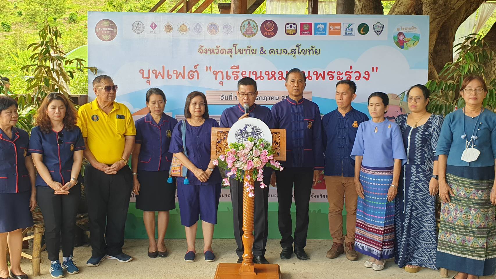 เมื่อวันที่ 30 มิถุนายน 2566 เวลา 15.30 น. นายสุชาติ ทีคะสุข ผู้ว่าราชการจังหวัดสุโขทัย เป็นประธานในพิธีเปิดกิจกรรม “ประชาสัมพันธ์บุฟเฟต์ทุเรียนหมอนพระร่วง” ตามโครงการพัฒนาศักยภาพด้านการตลาดออนไลน์ของกลุ่มวิสาหกิจชุมชนแปลงใหญ่ทุเรียน อำเภอศรีสัชนาลัย จังหวัดสุโขทัย ที่กำหนดจัดงานขึ้นในระหว่างวันที่ 1-5 กรกฏาคม 2566 ณ ไร่สานฝัน ตำบลบ้านตึก อำเภอศรีสัชนาลัย จังหวัดสุโขทัย