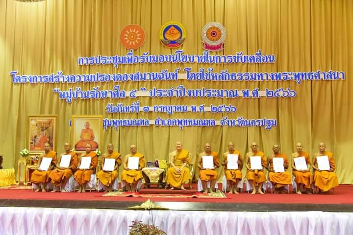 สมเด็จพระมหารัชมงคลมุนี (ธงชัย ธมฺมธโช) หรือ “สมเด็จธงชัย” ผู้ช่วยเจ้าอาวาสวัดไตรมิตรวิทยาราม กรรมการมหาเถรสมาคม(มส.) เจ้าคณะใหญ่หนกลาง ในฐานะประธานคณะกรรมการอำนวยการ โครงการสร้างความปรองดองสมานฉันท์ โดยใช้หลักธรรมทางพระพุทธศาสนา “หมู่บ้านรักษาศีล 5” เป็นประธานการประชุมเพื่อรับมอบนโยบายในการขับเคลื่อนโครงการสร้างความปรองดองสมานฉันท์ โดยใช้หลักธรรมทางพระพุทธศาสนา “หมู่บ้านรักษาศีล 5” ประจำปีงบประมาณ พ.ศ. 2566