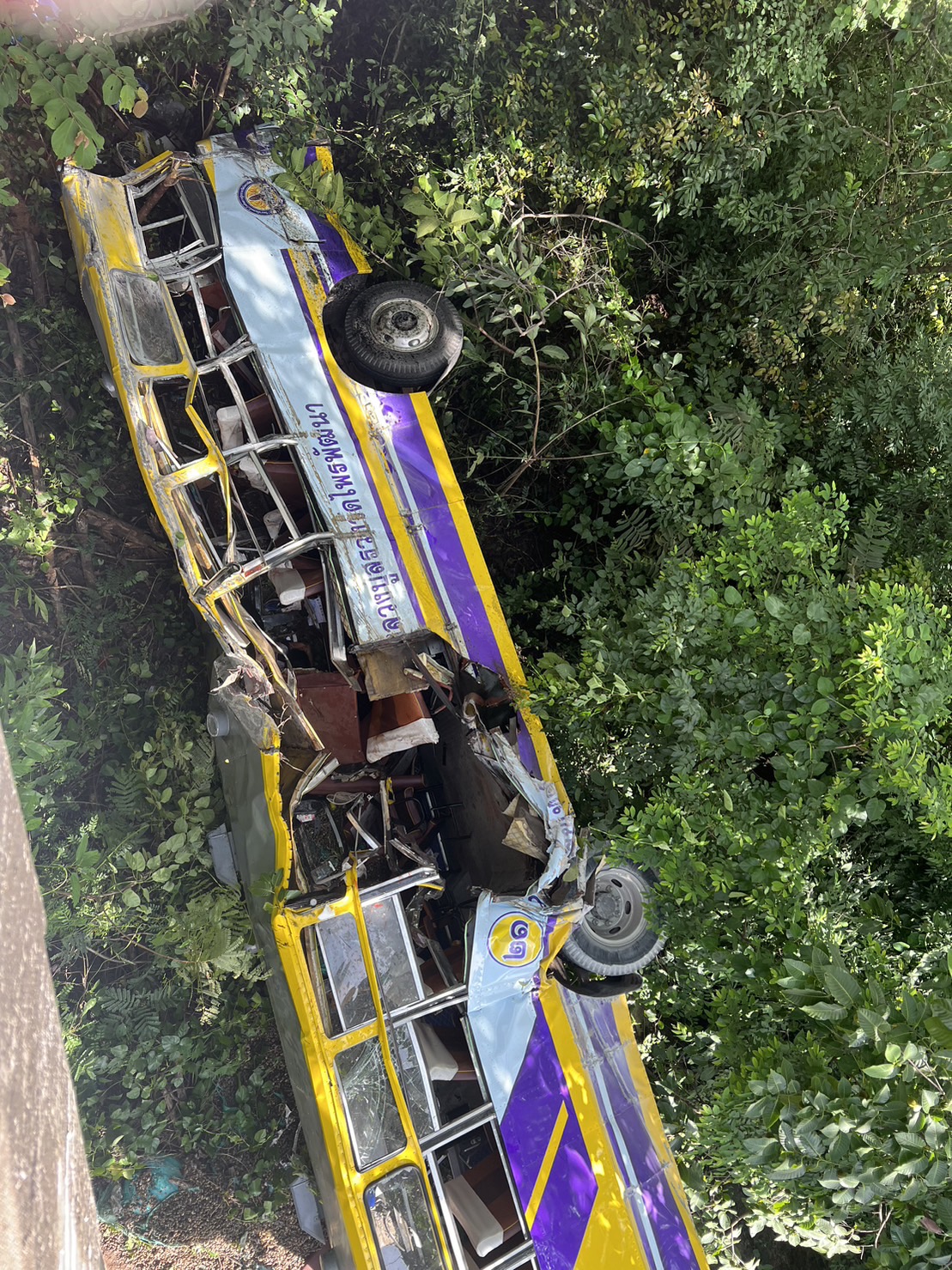 ศรีสะเกษ รถบัสขนส่งนักวิ่งตกเขาทางลงช่องสะงำตาย 4 เจ็บสาหัสกว่า 30 ราย สาเหตุอยู่ระหว่างการตรวจสอบ
