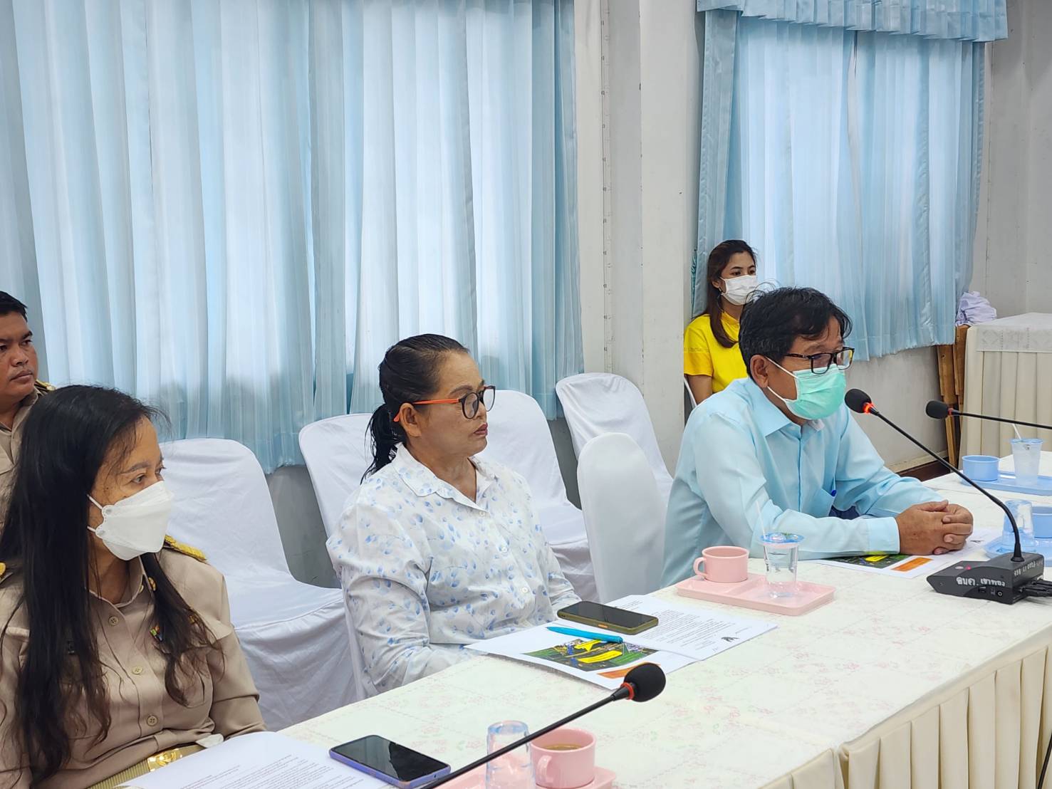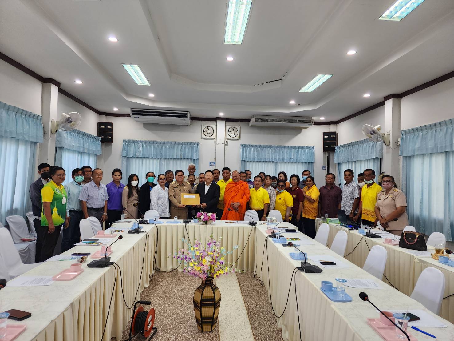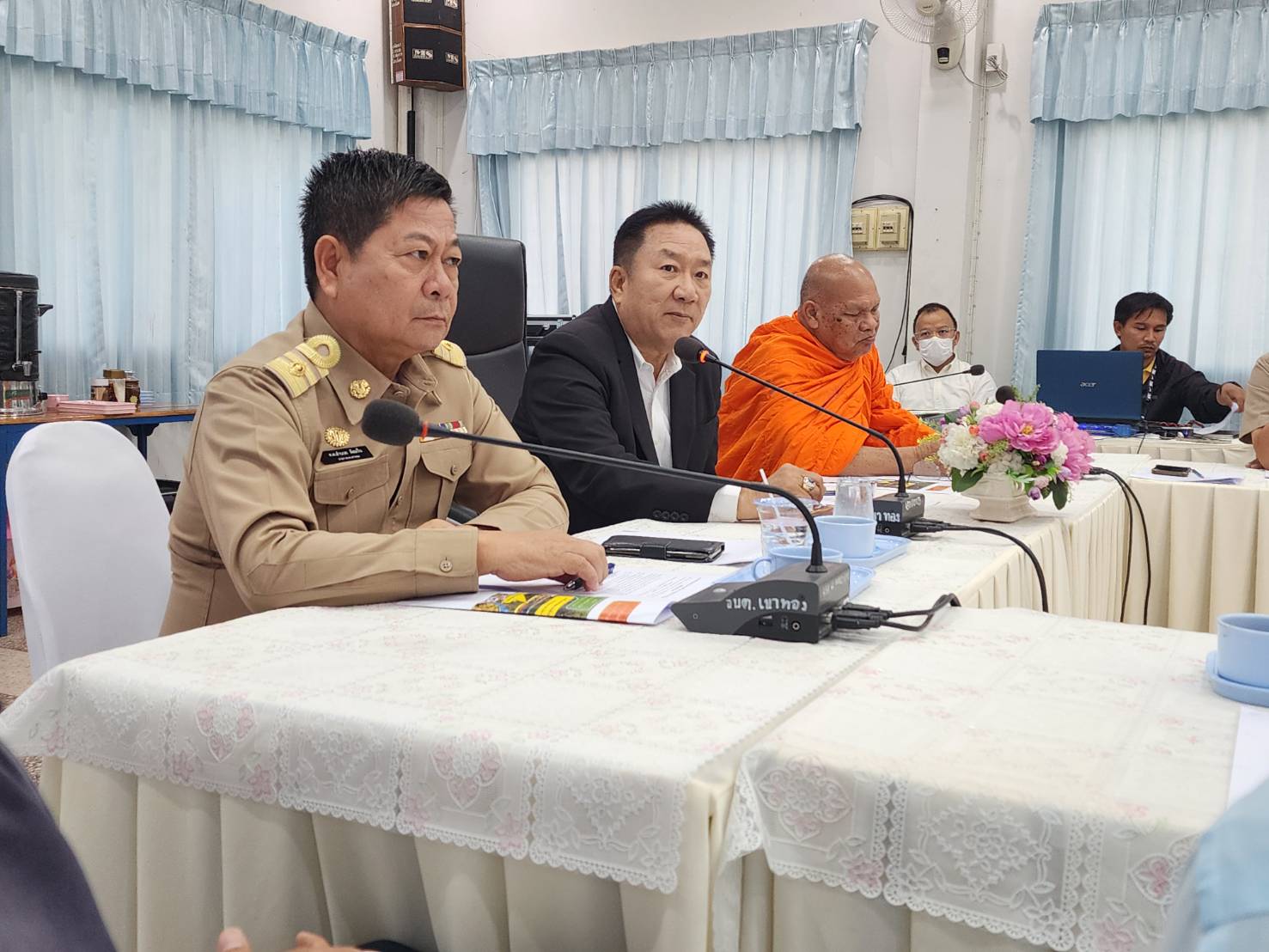 ผู้นำชุมชน กำนัน ผู้ใหญ่บ้านและประชาชนในพื้นที่ตำบลเขาทอง ร่วมกันเข้ายื่นหนังสือทบทวนการปิดทางข้ามรถไฟต่อ ดาบตำรวจอำนวย ล้อมรื่น นายกองค์การบริหารส่วนตำบลเขาทอง,นางสนิด ฉายทอง กำนันตำบลเขาทอง เรื่องการปิดทางข้ามรถไฟบริเวณหน้าวัดเขาทองพุทธารามหรือด้านใต้ของสถานีเขาทอง หมู่ 12