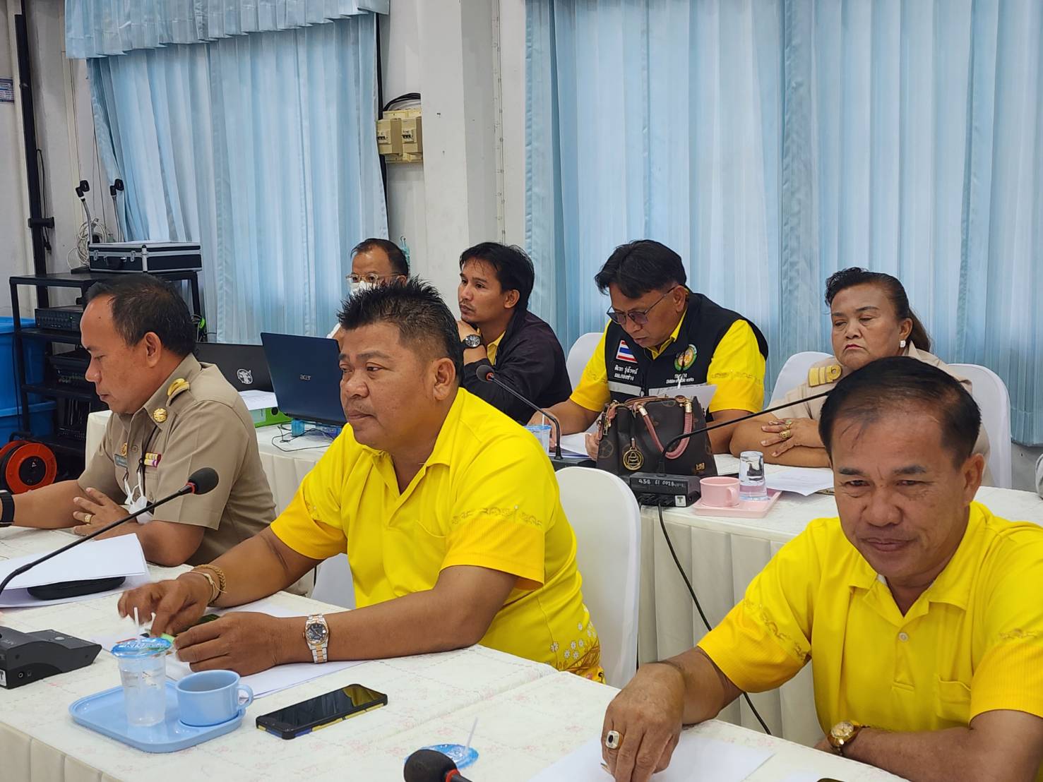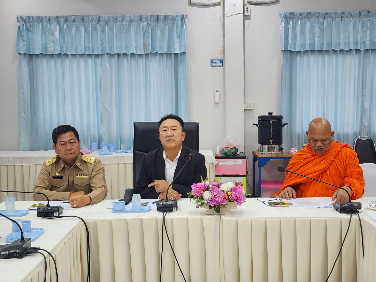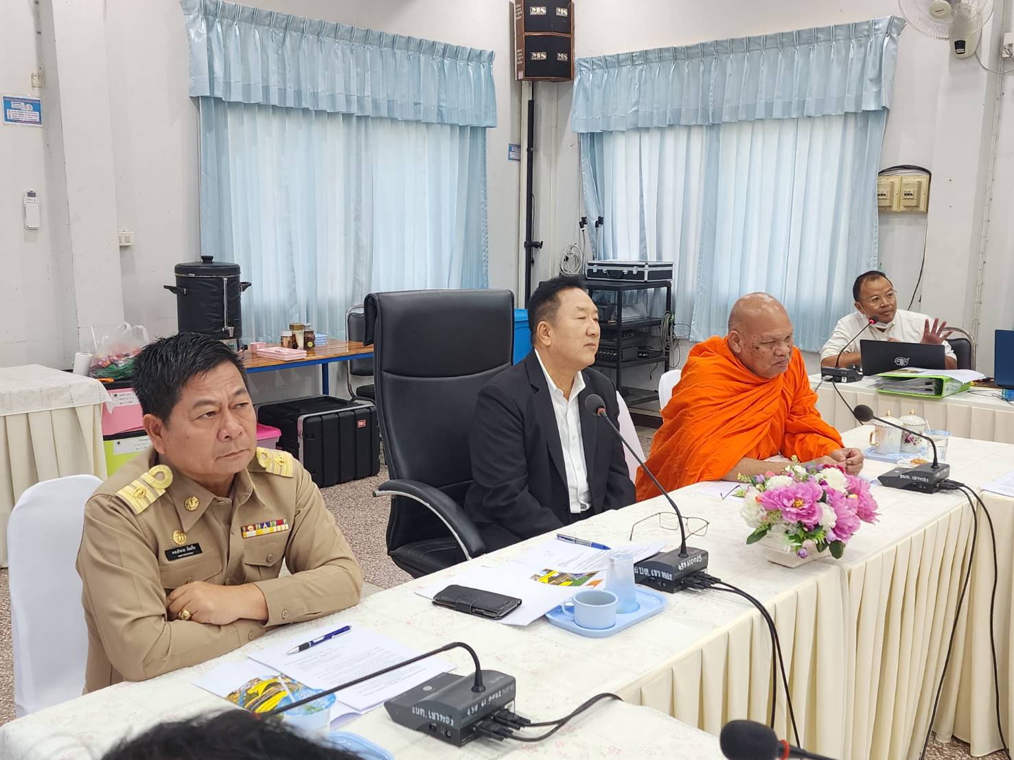 ผู้นำชุมชน กำนัน ผู้ใหญ่บ้านและประชาชนในพื้นที่ตำบลเขาทอง ร่วมกันเข้ายื่นหนังสือทบทวนการปิดทางข้ามรถไฟต่อ ดาบตำรวจอำนวย ล้อมรื่น นายกองค์การบริหารส่วนตำบลเขาทอง,นางสนิด ฉายทอง กำนันตำบลเขาทอง เรื่องการปิดทางข้ามรถไฟบริเวณหน้าวัดเขาทองพุทธารามหรือด้านใต้ของสถานีเขาทอง หมู่ 12