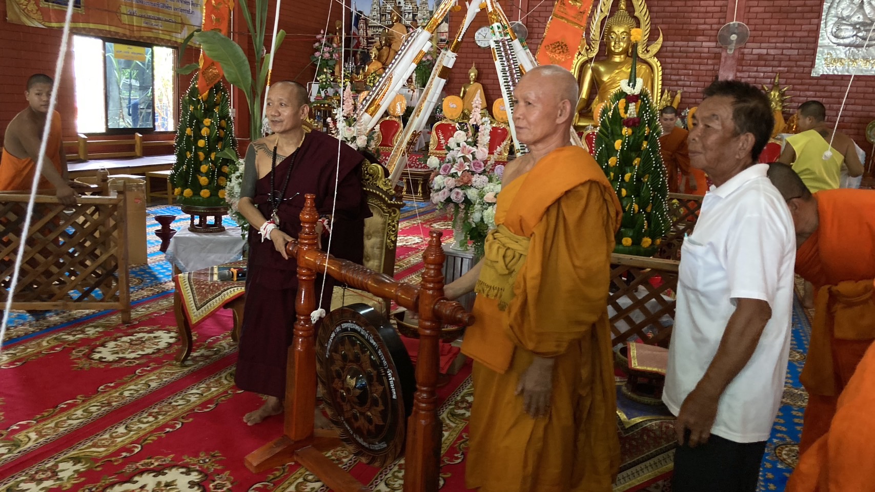 และถวายเต้นให้กับวัดในพื้นที่ตำบลแม่นาวางพร้อมทั้งฆ้องใหญ่ในวันนี้ศิษยานุศิษย์ที่ทราบได้เดินทางมาร่วม ทั้งในไทย ประเทศจีน สิงค์โปร มาเลเซีย และญี่ปุ่น ที่เคยมาร่วมในการส่งเสริมพระพุทธศาสนาสร้างอาคาร วิหาร ศาลา กุฏิ ฯเมื่อทราบข่าวจะเดินทางมาร่วมทุกๆปี ไม่ได้จัดงานแบบนี้มาหลายปีในช่วงโควิดระบาดเมื่อหมดการระบาดชาวบ้านจึงได้มุทิตาจิตร่วมถวายการจัดพิธีทำบุญอายุวัฒนะมงคลขึ้นในปีนี้เป็นกำลังใจและศิลิมงคลทั้งพระครูชัยมังคลารักษ์และชาวบ้านตลอดจนลูกศิษย์ญาติธรรมทุกคน และยังส่งเสริมอนุรักษ์ศิลปการแสดงของล้านนาคือการซอแบบพื้นเมืองล้านนาไม่ให้สูญหาย