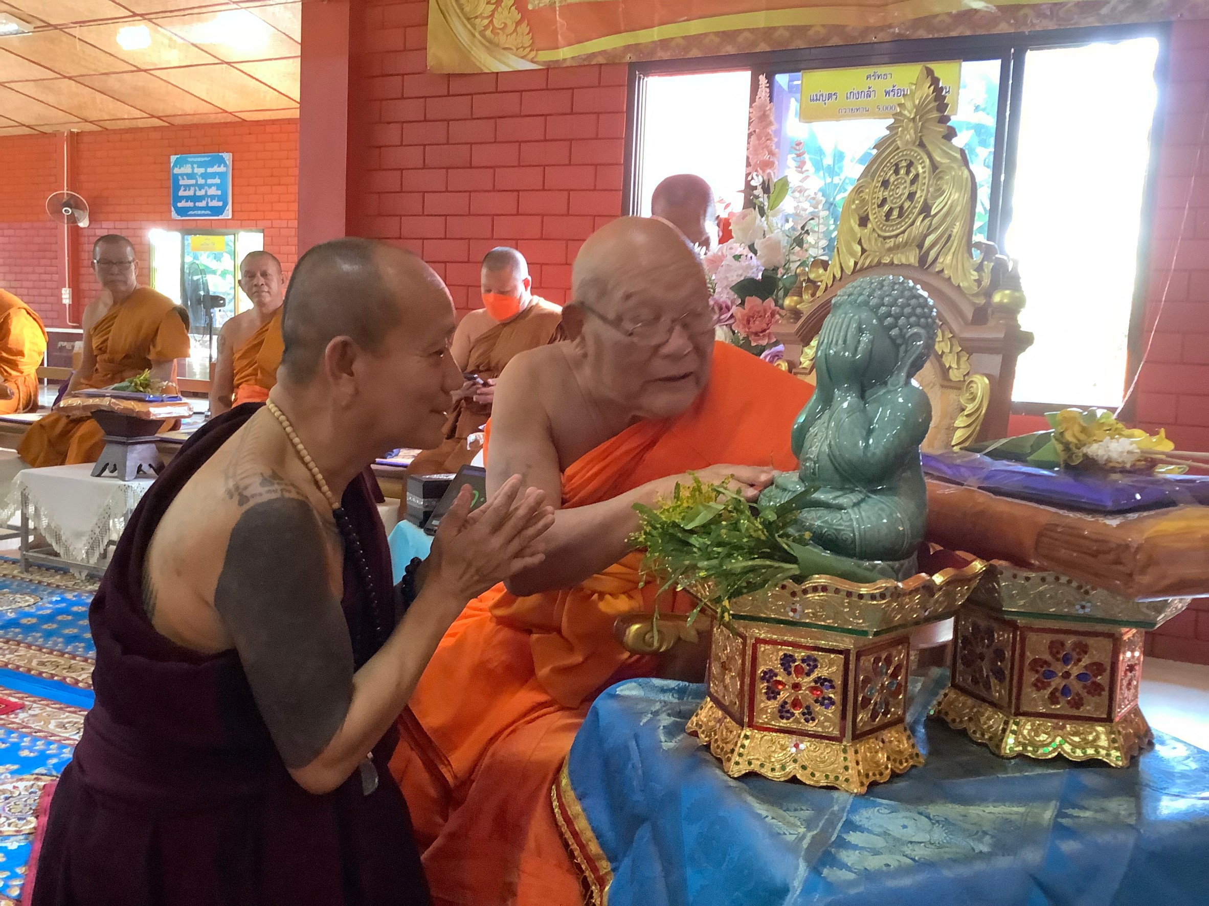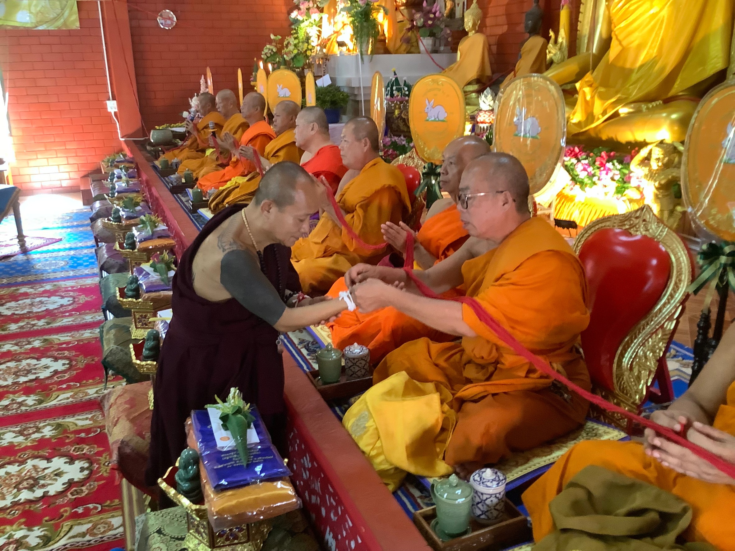จัดทำพิธีทางสงฆ์แบบล้านนาไทย สวดเจริญอายุวัฒนะมงคลพร้อมสวดมนต์สืบชะตาหมู่บ้านเพื่อเป็นศิริมงคลกับชาวบ้านญาติธรรมเป็นการบำรุงขวัญให้กับชาวบ้านตลอดจนพระครูชัยมังคลารักษ์ ที่ปฏิบัติภารกิจของพระสงฆ์ อย่างเต็มความสามารถสร้างทุกอย่างในกิจกรรมของสงฆ์ สร้างวัดวาราม ครบทุกส่วน เจดีย์ วิหาร อุโบสถ ศาลา กุฏิ รั้วรอบขอบชิด ที่สำคัญสร้างขวัญกำลังใจให้กับประชาชนชาวบ้านเยาวชน ศิษยานุศิษย์ ให้รักกัน อภัยซึ่งกันและกัน ให้ทุกคนรักกันช่วยเหลือกัน ปฏิบัติตัวเองและเพื่อนบ้านให้รักกันสามัคคีกันเพื่อทุกคนจะได้มีความสุข ให้อยุ่ในการคำสั่งสอนของพระพุทธศาสนาอย่างเต็มความสามารถร่วมในการบำรุงส่งเสริมพระพุทธศาสนาต่อไปอย่างยั่งยืน ในวันนี้ได้มอบกองทุนให้กับชาวบ้าน ในสองหมุ่บ้านชุดรักษาความปลอดภัยหมู่บ้าน มอบทุนการศึกษาให้กับพระภิกษุสามเณรเรียนนักธรรมเพื่อเพิ่มพูนการศึกษาพระพุทธศาสนาเพิ่มเติมเพื่ออนาคตส่งเสริมพระพุทธศาสนา พร้อมกับนักเรียนในหมู่บ้านให้มีการศึกษาสูงสุดเพื่อจะได้พัฒนาประเทศชาติของเราอย่างมีศักยาภาพต่อไป