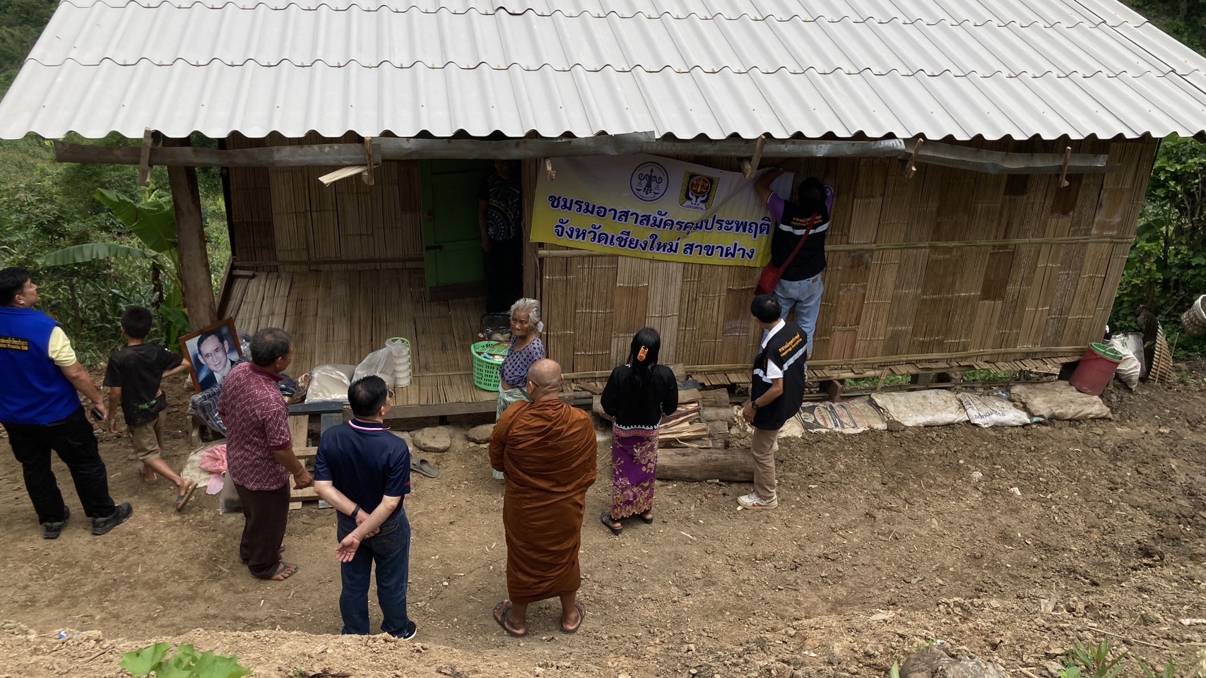 พร้อมทั้งเจ้าหน้าที่สำนักงานคุมประพฤติจังหวัดเชียงใหม่สาขาฝาง ตลอดจนจิตอาสาสมัครคุมประพฤติสำนักงานคุมประพฤติจังหวัดเชียงใหม่สาขาฝาง และประชาชนญาติธรรมได้ร่วมกันสร้างบ้านให้กับนาง นาโบว นายจันทร์ แสนใจ บ้านไม่มีเลขที่ หมู่ที่ 8 บ้านห้วยน้ำดิบ ตำบลศรีดงเย็น อำเภอไชยปราการ จังหวัดเชียงใหม่ ซึ่งเป็นคนยากจนชาวเขาเผ่าลาหู่ ทางผู้ใหญ่บ้านผู้นำกลุ่มลาหู่ ได้เข้าสำรวจและพบว่าสมควรสร้างบ้านให้เพราะสภาพบ้านพักที่ทรุดโทรมเหมือนไม่ใช่บ้าน ความจนที่ไม่สามารถจะหาเงินมาศร้างหรือซ่อมแซมเองได้ ทางชุดทำงานจึงเข้าช่วยเหลือสร้างบ้านให้จนแล้วเสร็จเข้าอยู่อาศัยได้ปกติ และทางชาวบ้านได้ร่วมนำเสื้อผ้า อาหารแห้ง ข้าวสาร พร้อมพระบรมฉายาลักษณ์ พระเจ้าอยู่หัว มาติดในบ้านให้ และยังช่วยเหลือด้านอาชีพให้ทุนในการปลูกข้าวโพดเพื่อไว้จำหน่ายหารายได้ ที่ปลูกในแปลงที่ทางหมู่บ้านขอเป็นที่ทำกิน ติดกับบ้าน เพื่อความอยู่ดีกินดีมีความสุขตามนโยบายของรัฐบาลไทย