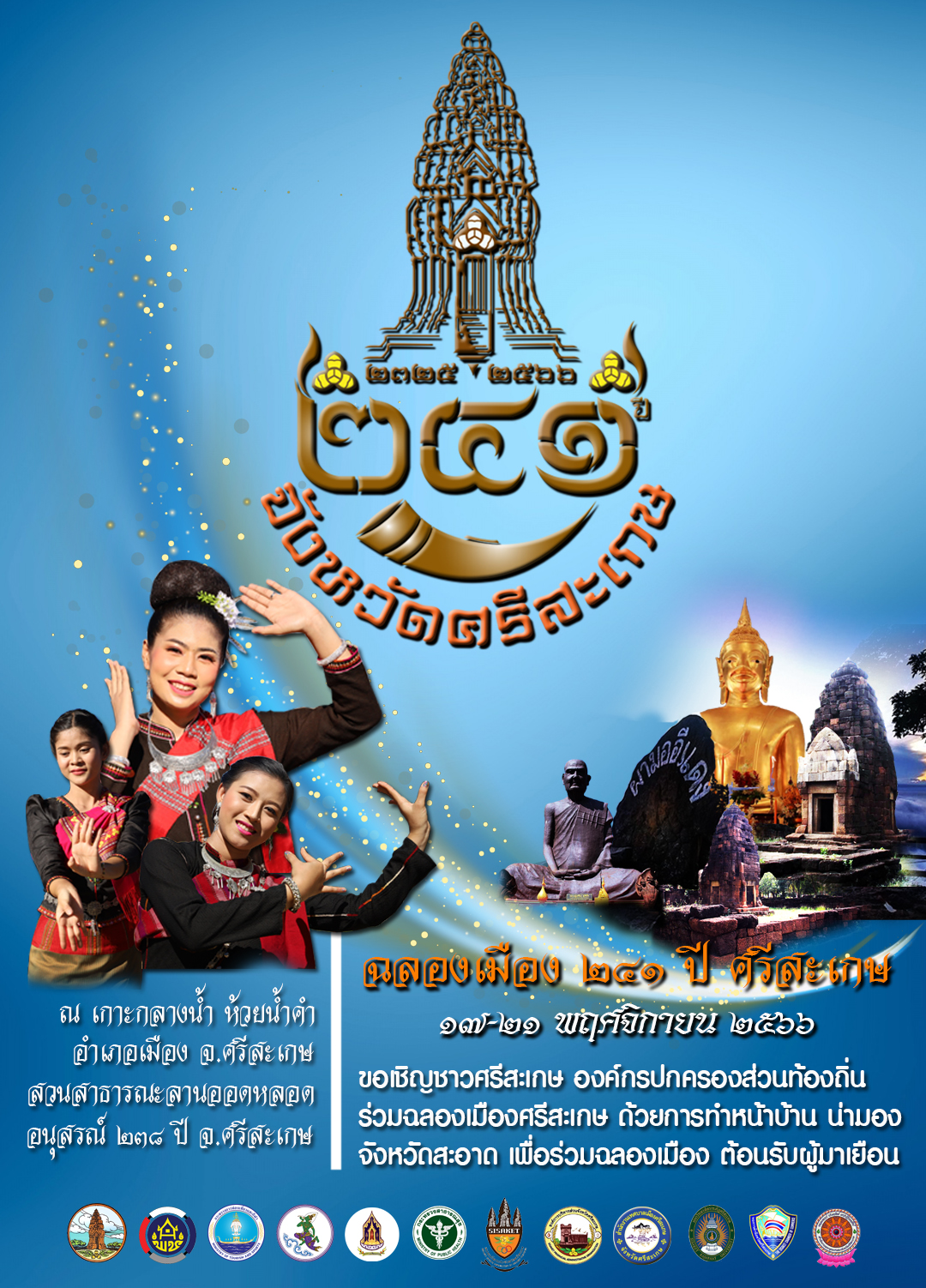 นายอนุพงศ์ สุขสมนิตย์ ผวจ.ศรีสะเกษ กล่าวว่า จ.ศรีสะเกษ ได้กำหนดให้วันที่ 19 พฤศจิกายนของทุกปีเป็นวันจัดงานเฉลิมฉลองจังหวัดศรีสะเกษ โดยจะมีกิจกรรมประกอบด้วยการพิธีบวงสรวงรำลึกถึงพระคุณบรรพบุรุษผู้ก่อตั้งสร้างเมือง การร่วมทำบุญตักบาตร พร้อมขบวนนางรำประจำเผ่า และ การจำหน่ายสินค้าพื้นถิ่นหรือโอทอปตลอดการจัดงาน นับเป็นการร่วมสืบสานรักษาและต่อยอดมรดกภูมิปัญญาอัตลักษณ์ทางวัฒนธรรม อันจะนำมาซึ่งการกระตุ้นและสร้างมูลค่าทางเศรษฐกิจ ด้วยความคิดสร้างสรรค์และส่งเสริมการท่องเที่ยวของ จ.ศรีสะเกษ ซึ่งชาว จ.ศรีสะเกษต้องเป็นเจ้าบ้านที่ดีในการต้อนรับนักท่องเที่ยวที่เข้ามาร่วมงานเฉลิมฉลอง 241 ปี เสริมบารมี อะไรอะไรก็ดีที่ศรีสะเกษ