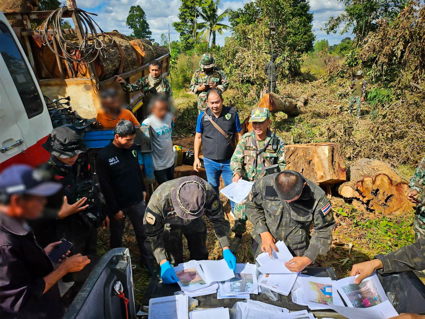 ศรีสะเกษ ทหารกองกำลังสุรนารีบุกรวบ 3 มอดไม้ลักลอบตัดไม้ประดู่โดยผิดกฎหมาย พร้อมของกลางไม้ประดู่ 17 ท่อน/เหลี่ยม รถกระบะ 1 คัน และรถยนต์บรรทุก 6 ล้อ ติดตั้งเครน 1 คัน