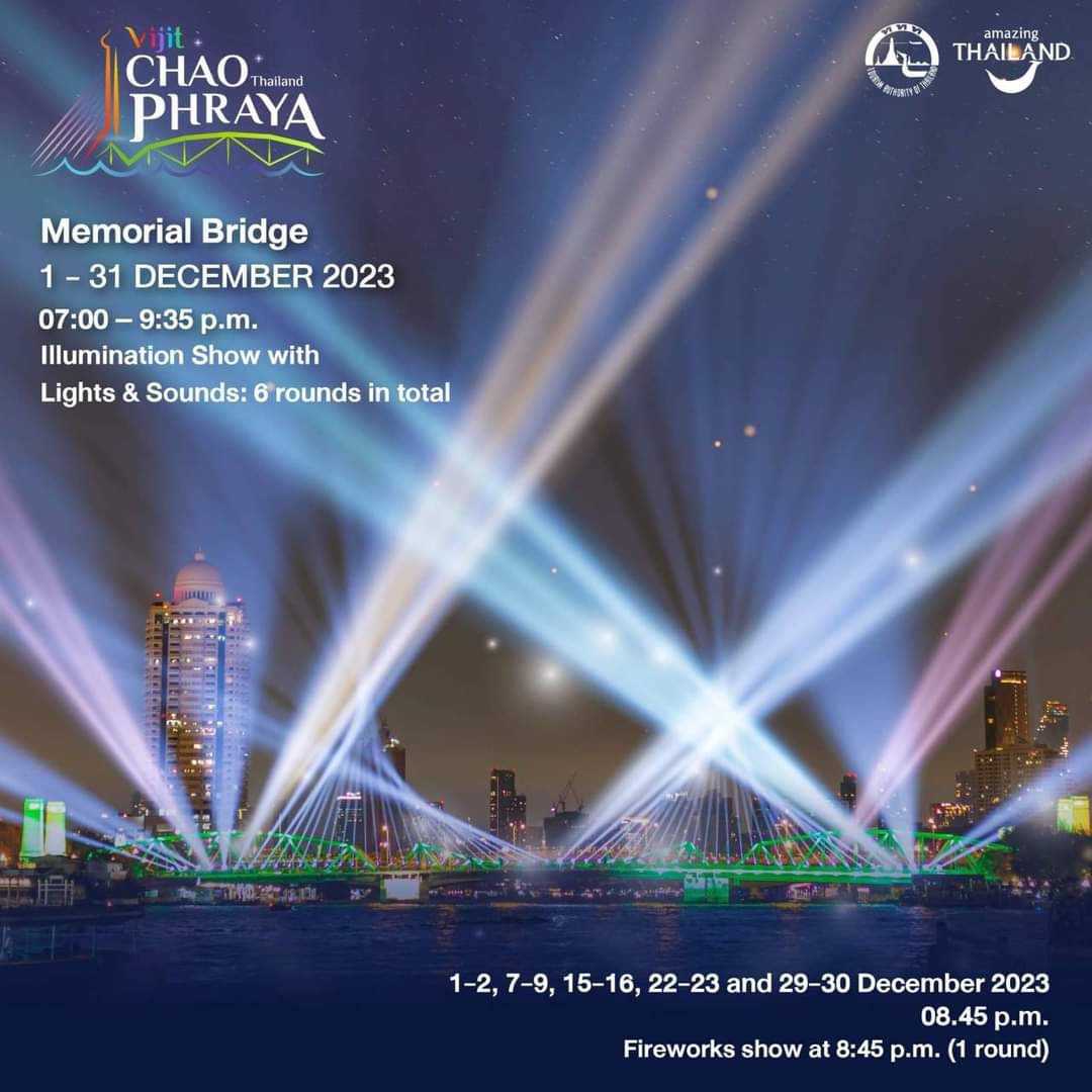 Smile Riverside เรือสำราญสุดหรู นำทีมโดย ณรงค์ อรพิน ผู้บริหารเรือSmile Riverside ร่วมกับ ททท.นำทีมบริหารมี รตา งามวงศ์ CEO,มาลัย อรัญแล ผู้อำนวยการฝ่ายการตลาด พาชมและสัมผัสบรรยากาศของมหกรรมแสงสี “วิจิตรเจ้าพระยา 2023” ตลอดเดือนธันวาคม2023 ล่องเรือชมแสงสีและทัศนียภาพสองริมฝั่งแม่น้ำเจ้าพระยากับการประดับไฟแสงสีงาน “วิจิตรเจ้าพระยา 2023”