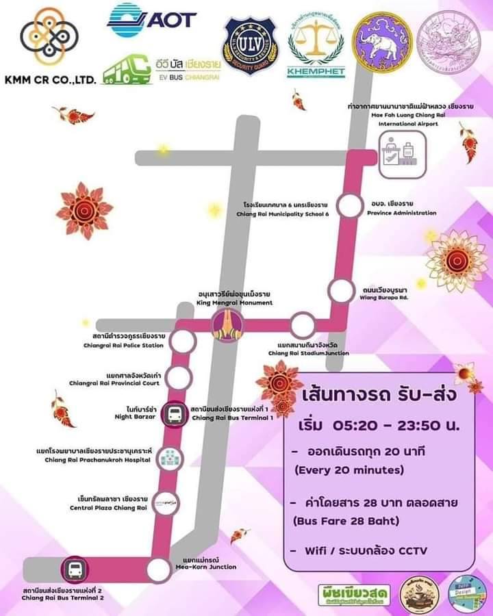 แจ้งข่าวสารจากประชาสัมพันธ์ของทาง สนามบินแม่ฟ้าหลวง จ.เชียงราย วันนี้เริ่มวันแรก 6 ธ.ค. 66 เปิดให้บริการรถบัสรับ-ส่ง เส้นทางสนามบินแม่ฟ้าหลวงเชียงราย – สถานีขนส่งใหม่ – สนามบินฯ มีทุกวัน ระหว่างเวลา 06.00 น. – 22.30 น. รถบัสรับ-ส่ง ผู้โดยสาร ออกทุก 20 นาที ค่าโดยสาร28 บาท ตลอดสายที่ให้บริการนักท่องเที่ยว ซึ่งรถบัสที่ให้บริการจะออกวิ่งจากเส้นทาง สนามบินแม่ฟ้าหลวง เชียงราย ผ่าน สี่แยก อบจ. มาตามถนนเวียงบูรพา ถึงสี่แยกไฟแดง-เขียว เลี้ยวขวามาตามถนนหน้าสนามกีฬา ผ่านสนามกีฬากลาง มาถึงห้าแยกพ่อขุนฯ ตรงไปถึงสี่แยก สภ.เมืองเชียงราย เลี้ยวซ้าย ผ่านสี่แยกศาลอาญา(เก่า) ตรงมาผ่านไนท์บาร์ซ่า เข้าสถานีขนส่ง 1 (สถานีขนส่งเก่า) ออกมาวิ่งตามถนนพหลโยธินสายใน (เก่า) ผ่านสี่แยกหมอพีระ สามแยกโรงน้ำแข็ง ผ่านปากซอย 18 มิถุนา ผ่านหลังเซ็นทรัล ออกสี่แยกแม่กรณ์ เลี้ยวขวาไปตามถนนซุปเปอร์ไฮเวย์ ปลายทางที่สถานีขนส่งใหม่ จึงแจ้งผู้โดยที่จะใช้บริการรถบัสจากสนามบินแม่ฟ้าหลวง จ.เชียงราย ให้ทราบเบื้องต้นดังนี้…