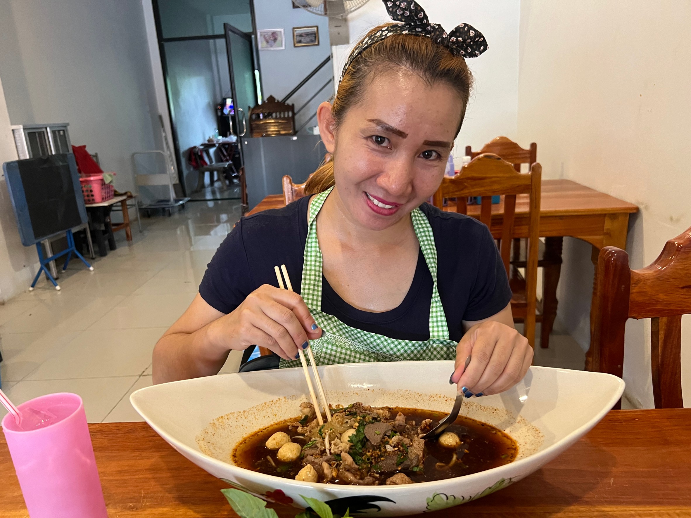 ศรีสะเกษ ก๋วยเตี๋ยวเรือชาววังอร่อยชามใหญ่ที่สุดในประเทศไทย เพื่อให้เป็นบรรยากาศของก๋วยเตี๋ยวเรืออย่างแท้จริง และที่สำคัญคือความแปลกใหม่นี้ทำให้ดึงดูดเรียกลูกค้าได้ดีมาก