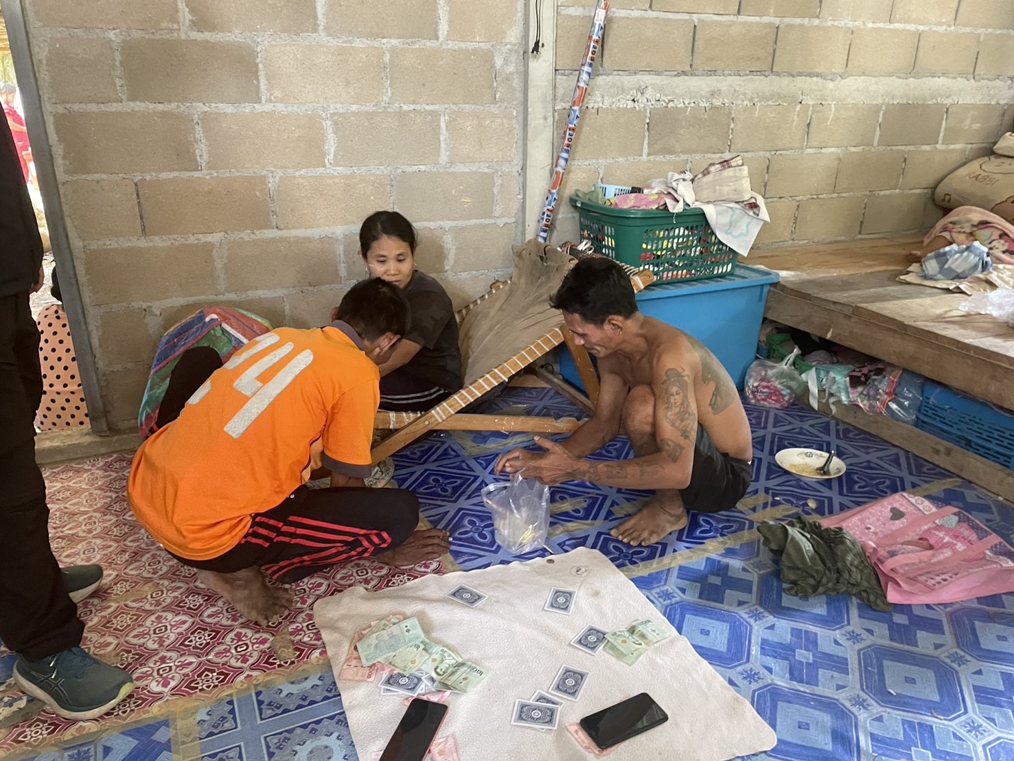 ว่าที่ พ.ต.ท.เอกลักษณ์ นุ่นปาน สว.ตม.จว.ระนอง พร้อมด้วยเจ้าหน้าที่งานสืบสวน สนธิกำลังร่วมกับเจ้าหน้าที่ตำรวจงานสืบสวนปราบปราม สภ.กระบุรี เจ้าหน้าที่ตำรวจท่องเที่ยว ส.ทท.2 กก.2 บก.ทท.3 ออกปฏิบัติการปิดล้อมตรวจค้น บ้านไม่มีเลขที่ หมู่ 7 ต.ลำเลียง อ.กระบุรี จว.ระนอง โดยก่อนเกิดเหตุ ได้รับแจ้งว่ามีคนต่างด้าวรวมตัวกันเล่นการพนัน เจ้าหน้าที่ชุดจับกุม จึงเดินทางมาตรวจสอบ พบมีคนต่างด้าวหลายคนรวมตัวกัน และมีการเล่นการพนันไพ่รัมมี่กันอยู่ จึงแสดงตัวเป็นพนักงานเจ้าหน้าที่เข้าตรวจสอบและควบคุมตัว นายติน หม่าว เว้น อายุ 44 ปี สัญชาติเมียนมา กับพวก กำลังนั่งเล่นการพนันไพ่รัมมี่ โดยนั่งเล่นกัน 4 วง โดยแบ่งนั่งเล่นกัน วงละ 3-4 คน รวมทั้งหมด 15 คน เจ้าหน้าที่ชุดจับกุม จึงได้เข้าตรวจสอบพร้อมทั้งควบคุมตัวไว้ได้ทั้งหมด