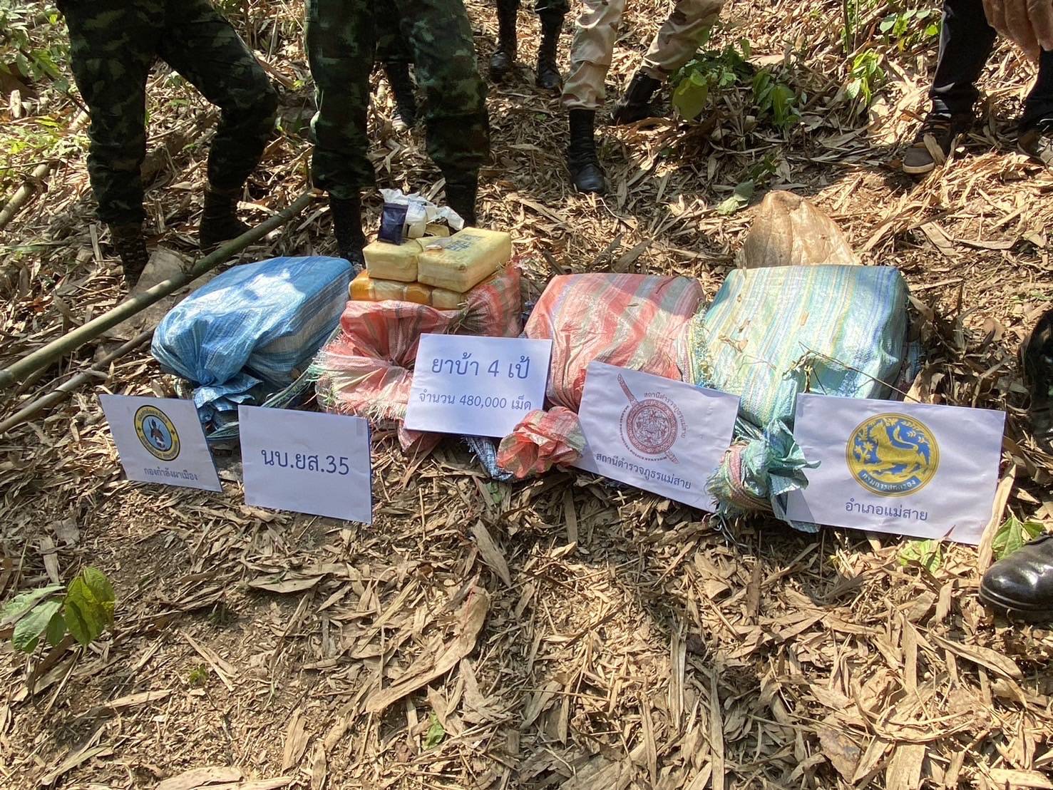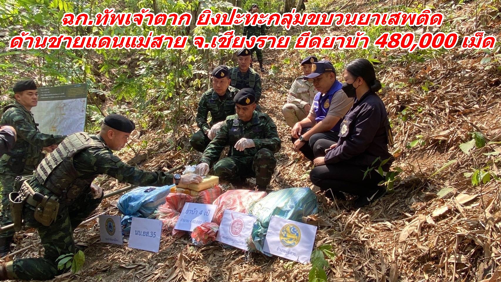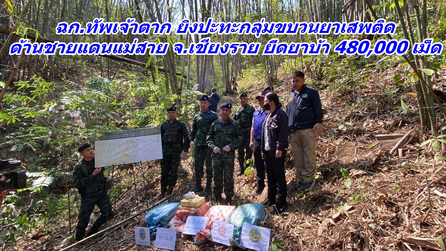 ฉก.ทัพเจ้าตาก ยิงปะทะกลุ่มขบวนการลักลอบลำเลียงยาเสพติด ด้านชายแดนแม่สาย จ.เชียงราย ยึดยาบ้า 480,000 เม็ด