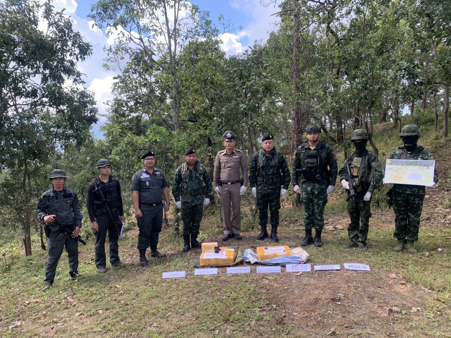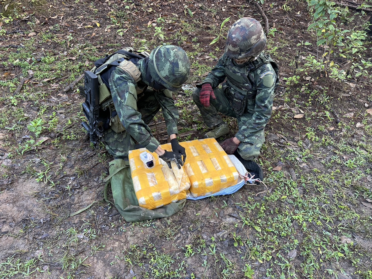 เมื่อวันที่ 17 ตุลาคม 2567 หน่วยเฉพาะกิจไชยานุภาพ สกัดกั้นยาเสพติด ในพื้นที่ ต.เมืองนะ อ.เชียงดาว จ.เชียงใหม่ เวลา 05.15น. ทหารม้ากองร้อย ร้อย.ม.2 ฉก.ไชยานุภาพ จัดกำลัง 1 ชป. ทำการสกัดกั้นการกระทำผิดของขบวนการค้ายาเสพติด บริเวณ เส้นทางดอยถ้วย ตำบลเมืองนะ อำเภอเชียงดาว จังหวัดเชียงใหม่ตรวจพบบุคคลต้องสงสัย จำนวน 4 ราย แบกเป้สะพายหลัง เดินลัดเลาะมาตามภูมิประเทศ ทหารจึงได้แสดงตัวเรียกให้หยุด เพื่อขอตรวจค้นสิ่งผิดกฏหมายเพื่อขอการตรวจค้น และเจ้าหน้าที่ได้ยิงปืนแจ้งเตือนให้หยุด แต่บุคคลต้องสงสัย ได้ทิ้งกระเป๋าเป้ และใช้ความชำนาญในพื้นที่หลบหนี เจ้าหน้าที่จึงได้ทำการตรวจสอบบริเวณพื้นที่โดยรอบ ผลการปฏิบัติตรวจพบของกลาง
