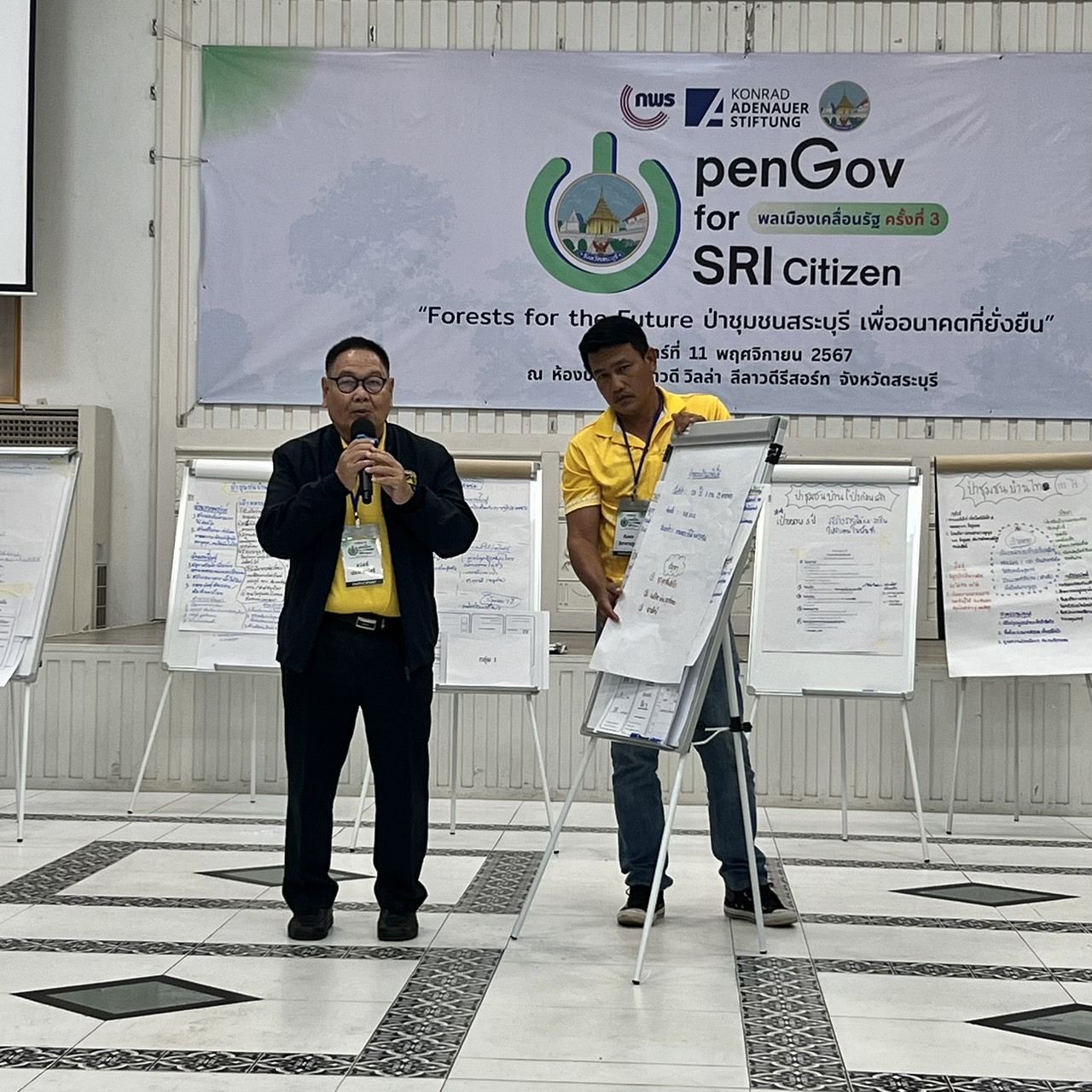 ในการสัมมนาเวิร์คช็อปครั้งนี้ ดร.เฉลิมชัย ศรีอ่อน รัฐมนตรีว่าการกระทรวงทรัพยากรธรรมชาติและสิ่งแวดล้อมได้วยมอบหมายนายอลงกรณ์ พลบุตร คณะทำงานรัฐมนตรีว่าการกระทรวงทรัพยากรธรรมชาติและสิ่งแวดล้อม นายปรพล อดิเรกสาร ที่ปรึกษาสมาคมการท่องเที่ยวสระบุรีเเละหน่วยงานสังกัดกระทรวงทรัพยากรธรรมชาติและสิ่งแวดล้อมในสระบุรีเข้าประชุมงานสัมมนาเวิร์คช็อป “พลเมืองเคลื่อนรัฐครั้งที่ 3 หัวข้อ“ป่าชุมชนสระบุรีเพื่ออนาคตที่ยั่งยืน“จัดโดยสำนักงานคณะกรรมการพัฒนาระบบราชการ(กพร.)และมูลนิธิคอนราด อเดนาวร์เมื่อวันที่11 พ.ย.ที่ผ่านมาที่ลีลาวดีรีสอร์ต อ.เมือง จ.สระบุรีร่วมกับนายบัญชา เชาวรินทร์ ผู้ว่าราชการจังหวัดสระบุรี นางอารีย์พันธ์ เจริญสุข รองเลขาธิการ กพร. ดร.บัณฑูร เศรษฐศิโรตม์ ประธานอนุกรรมการพัฒนาระบบราชการ นายบุญมี สรรพคุณ หนึ่งในผู้ริเริ่มสระบุรีแซนด์บ็อกซ์ นายเสกสรร กวยะปาณิก รักษาการผู้อำนวยการสำนักจัดการป่าชุมชน กรมป่าไม้และภาคีภาคส่วนต่างๆเช่นจังหวัดสระบุรี สำนักงานคณะกรรมการส่งเสริมการลงทุน(บีโอไอ. )องค์การบริหารก๊าซเรือนกระจก กองทุนสิ่งแวดล้อม สำนักงานพัฒนาเศรษฐกิจจากฐานชีวภาพ(สพภ.BEDOThailand) องค์การบริหารการพัฒนาพื้นที่พิเศษเพื่อการท่องเที่ยวอย่างยั่งยืน(อพท.) สำนักงานคณะกรรมการส่งเสริมวิทยาศาสตร์ วิจัยและนวัตกรรม (สกสว.) มหาวิทยาลัยแม่ฟ้าหลวง โรงงานและบริษัทต่างๆในพื้นที่เช่น เอสซีจี. เคมีแมน สยามฟูรูกาว่า ซีพีเมจิ ทีพีไอโพลีน เบทาโก เป็นต้นและเครือข่ายป่าชุมชนเพื่อร่วมกันขับเคลื่อนสระบุรีให้เป็นเมืองคาร์บอนต่ำ ( SARABURI LOW CARBON CITY )ภายใต้แนวทางOpen Gov. for SRI สระบุรี เเซนด์บ็อกซ์ (Saraburi Sandbox)ด้วยโครงการ“ป่าชุมชนสระบุรีเพื่ออนาคตที่ยั่งยืน”