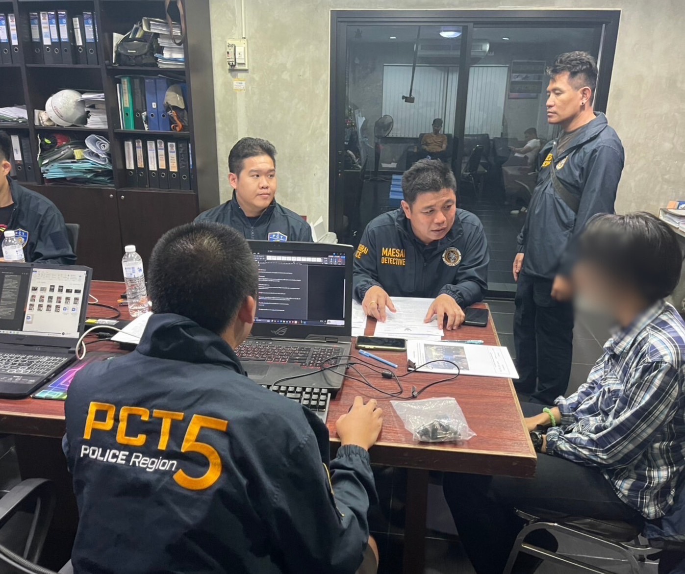 เมื่อเวลา 08.00 น.วันที่ 13 พ.ย.67 โดยการอำนวยการของ พล.ต.ท.กฤตธาพล ยี่สาคร ผบช.ภ.5 , พล.ต.ต.วรพงศ์ คำลือ ผบก.สส.ภ.5 นำชุด เจ้าหน้าที่ศูนย์ปราบปรามอาชญากรรมทางเทคโนโลยีสารสนเทศ ตำรวจภูธรภาค 5 (ศปอส.ภ.5) บุกจับกุมตัวนายกรรชัย (ขอสงวนนามสกุล) อายุ 18 ปีฉายา“กัส สายไหม” บ้านอยู่ แขวงคลองถนน เขตสายไหม กรุงเทพมหานคร ตามหมายจับศาลจังหวัดเชียงราย ที่ จ.540/2567 ลงวันที่ 12 พฤศจิกายน 2567 ในข้อหา“ครอบครองสื่อลามกอนาจารเด็กเพื่อแสวงหาประโยชน์ในทางเพศสำหรับตนเองหรือผู้อื่น ส่งต่อซื่งสื่อลามกอนาจารเด็กแก่ผู้อื่น, ข่มขืนใจผู้อื่นให้กระทำการใด ไม่กระทำการใด หรือจำยอมต่อสิ่งใดโดยทำให้กลัวว่าจะเกิดอันตรายต่อชีวิต ร่างกาย เสรีภาพฯ”