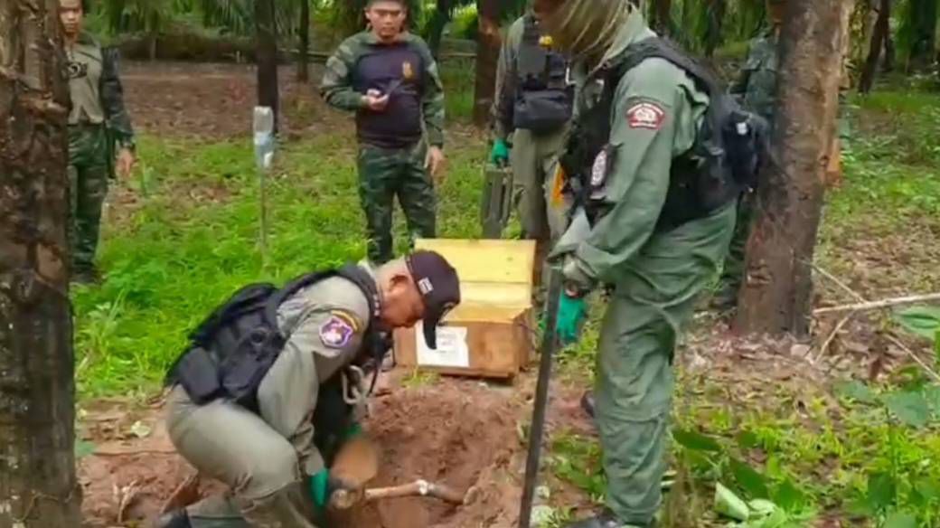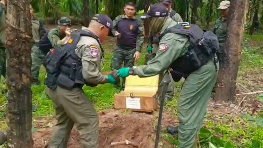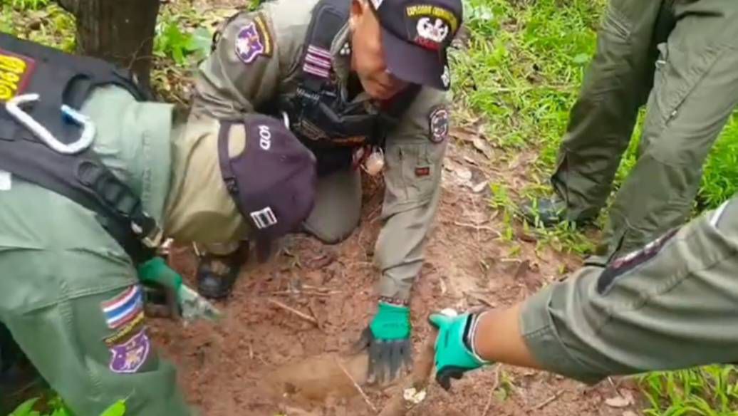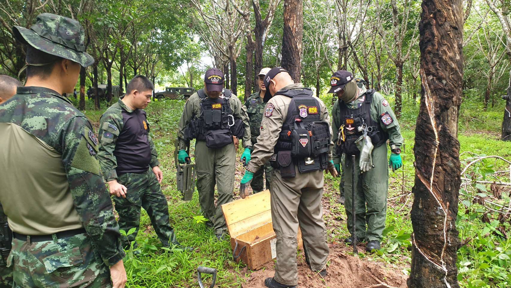 “ศรีสะเกษ” ยังไม่หมด! ชาวบ้านผวาพบลูกปืนใหญ่เขมรตกกลางสวนยางพารา จนท.หน่วย EOD ตชด.22 เร่งทำลาย