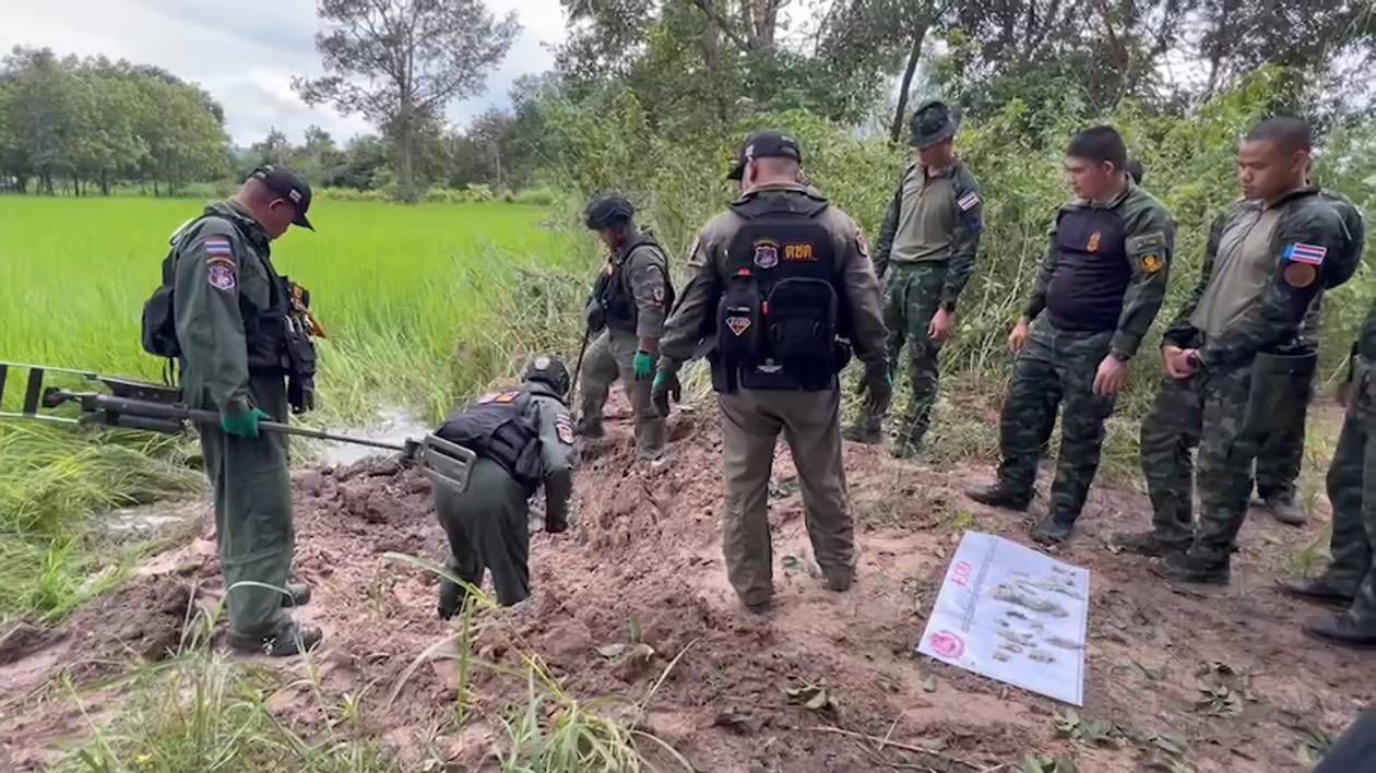 เมื่อวันที่ 22 ก.ย. 2568 เจ้าหน้าที่ EOD ตชด.22 พร้อมด้วย ทหารแนวหน้า ลงพื้นที่บ้านหนองหว้า หมู่ที่ 5 ต.ภูผาหมอก ชายแดนไทย-กัมพูชา อ.กันทรลักษ์ จ.ศรีสะเกษ เพื่อเข้าจรวจสอบทำลายลูกปืนใหญ่ที่ทางทหารกัมพูชายิงมาตกในฝั่งไทย เมื่อช่วงวันที่ 24-28 ก.ค. 2568 ที่ผ่านมา ทำให้มีผู้ได้รับบาดเจ็บและเสียชีวิตจำนวนหลายราย