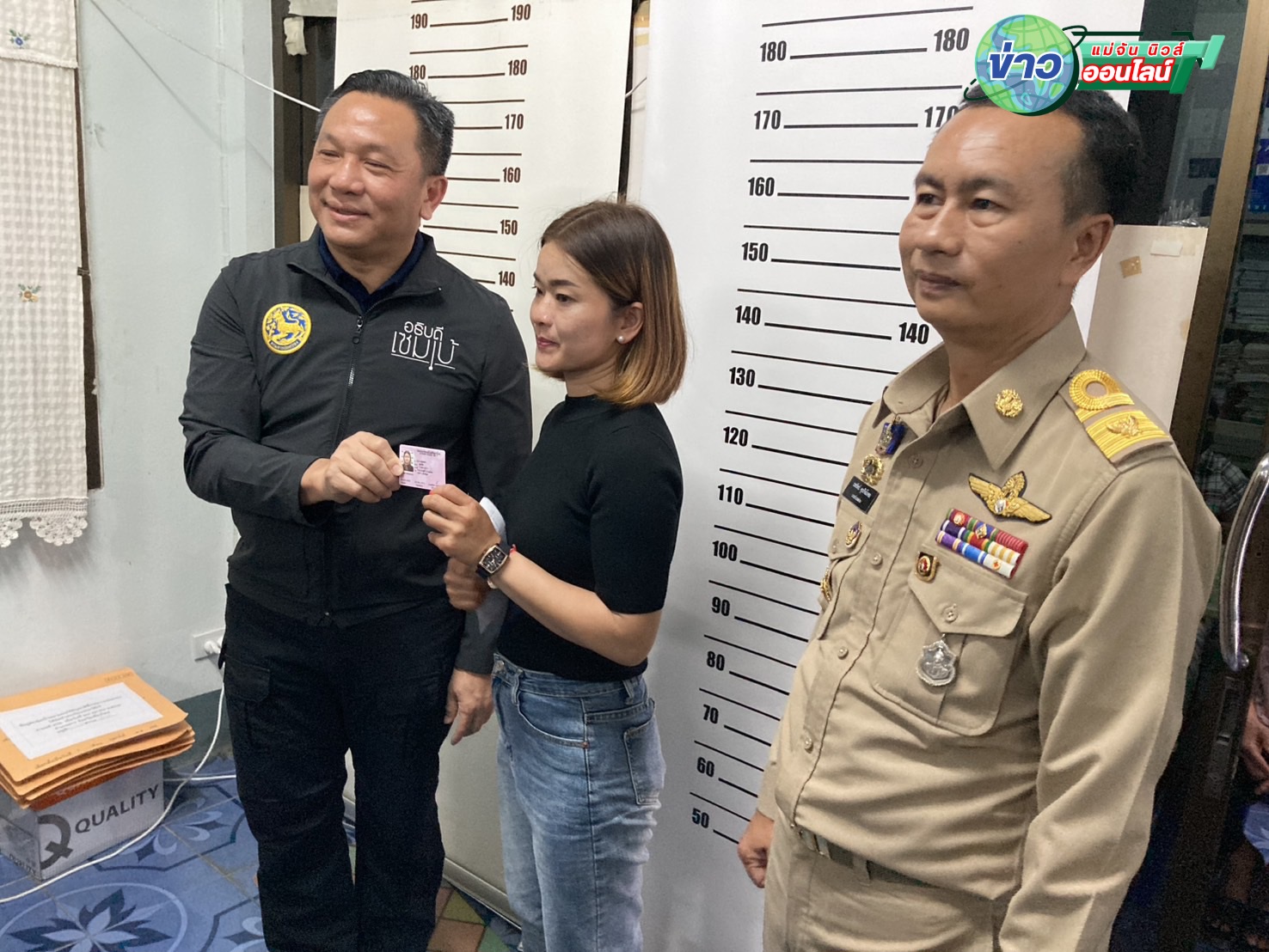 ว่าที่ร้อยตรี นพรัตน์ ศุภกิจโกศล นายอำเภอฝาง ได้ให้การต้อนรับและนำอธิบดีฯ ตรวจสอบเอกสาร พร้อมสอบถามประชาชนที่ได้รับสัญชาติและมาทำบัตรประชาชนด้วยตนเอง