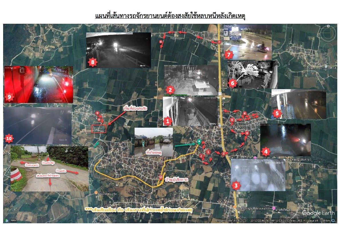 พร้อมด้วยเจ้าหน้าที่ตำรวจชุดสืบสวน สภ.แม่จัน ได้ลงพื้นที่ตรวจสอบจากกล้องวงจรปิด