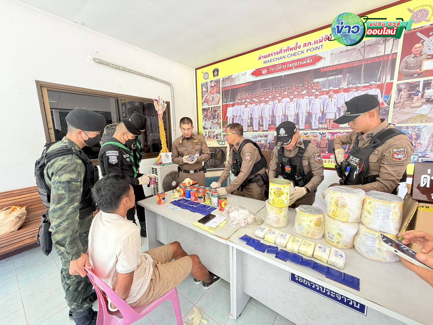 วันที่ 3 ตุลาคม 2568 เวลาประมาณ 12.50 น. ภายใต้การอำนวยการของ พ.ต.ท.ศุภกรณ์ชัย เดชายิ้มสวัสดิ์ รอง ผกก.สส.สภ.แม่จัน รรท.ผกก.สภ.แม่จัน พ.ต.ท.ภูริวัฒ รุจิรัฐภา รอง.ผกก.ป.สภ.แม่จัน พ.ต.ท.นิติการณ์ แก้วรากมุก สวป.สภ.แม่จัน พ.ต.ต.ศักดิ์ชาย รีอินทร์ สวป. (ชส) สภ.แม่จันพร้อมด้วยกำลังเจ้าหน้าที่ตำรวจด่านตรวจกิ่วทัพยั้ง ชป.1, เจ้าหน้าที่ทหารพราน ฉก.ทพ.31 และเจ้าหน้าที่ ตชด.327