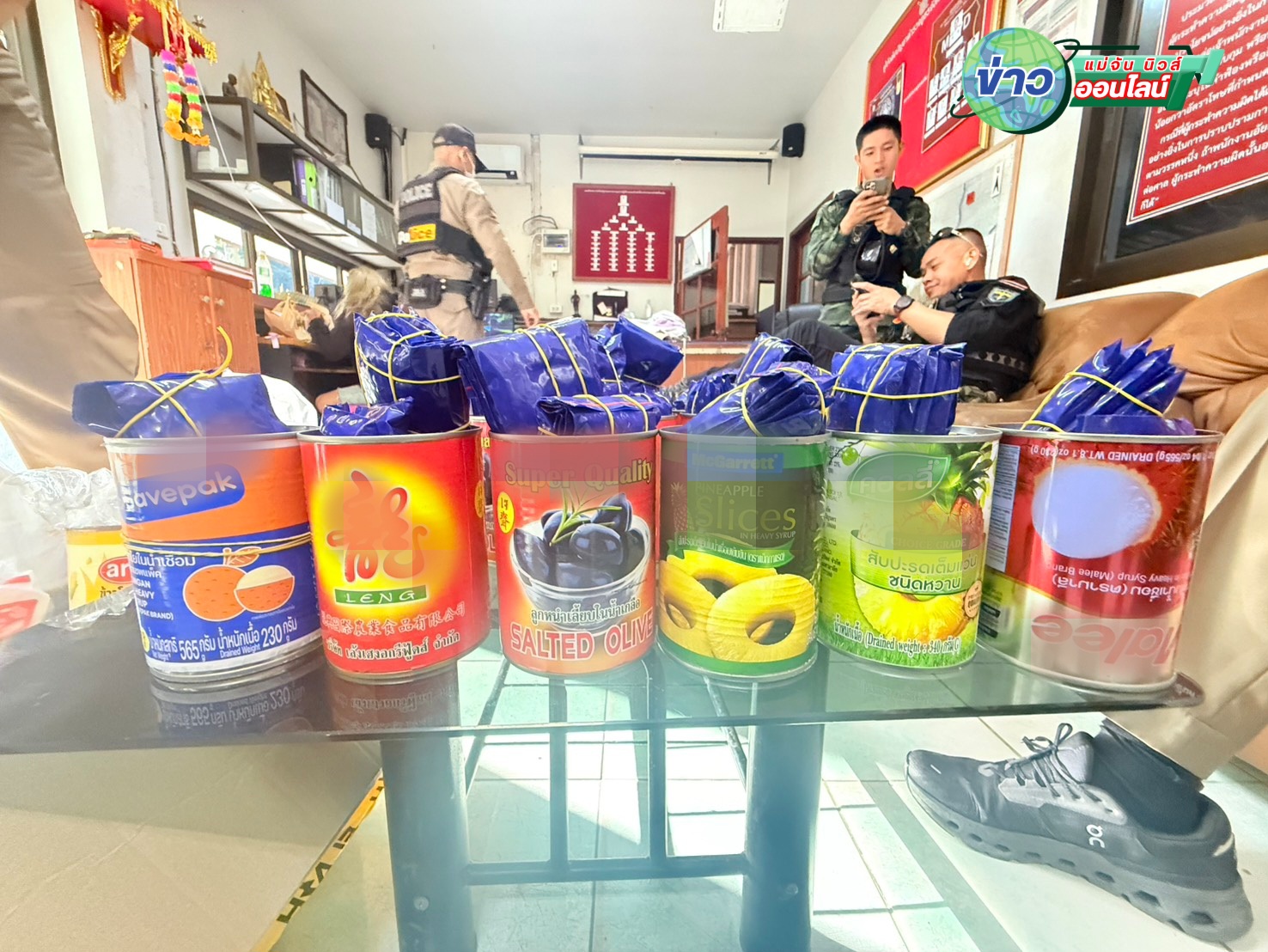 ผลการตรวจค้นพบ ยาเสพติดให้โทษประเภท 1 (ยาบ้าหรือเมทแอมเฟตามีน) ชนิดเม็ดสีส้ม จำนวนรวมประมาณ 176,000 เม็ด ถูกบรรจุอยู่ในกระป๋องอาหารสำเร็จรูป ก่อนจะนำไปซุกซ่อนอยู่ในกล่องลังซึ่งเป็นสัมภาระของผู้ต้องหาทั้งสองรายอย่างแนบเนียน