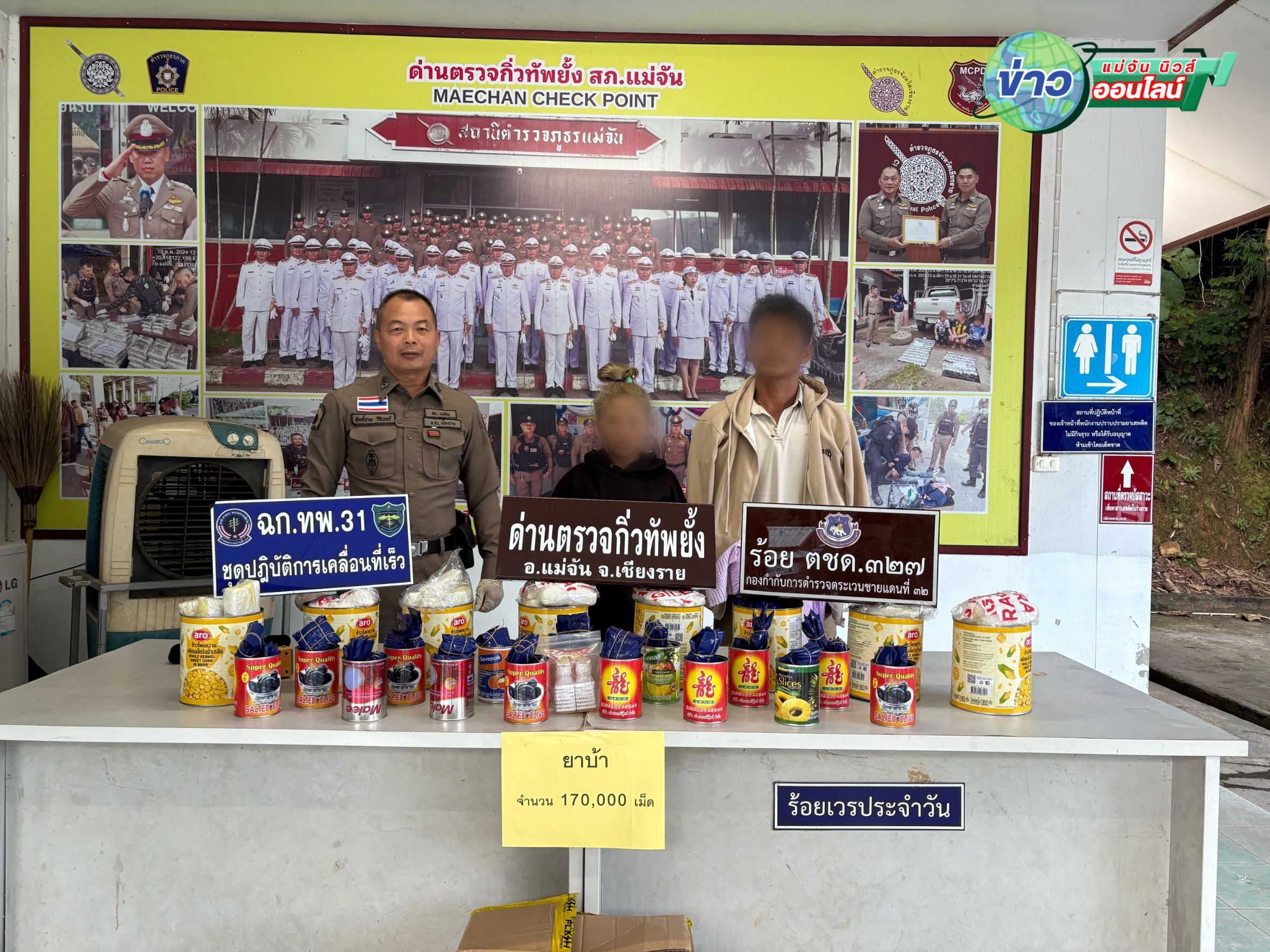 เชียงราย – ด่านตรวจกิ่วทัพยั้ง แม่จัน คาหนังคาเขา! รวบ 2 ผู้ต้องสงสัยชาวสุราษฏร์ ขนยาบ้า 1.7 แสนเม็ด ซุกกระป๋องอาหารสำเร็จรูปคารถโดยสาร แม่สาย-ภูเก็ต