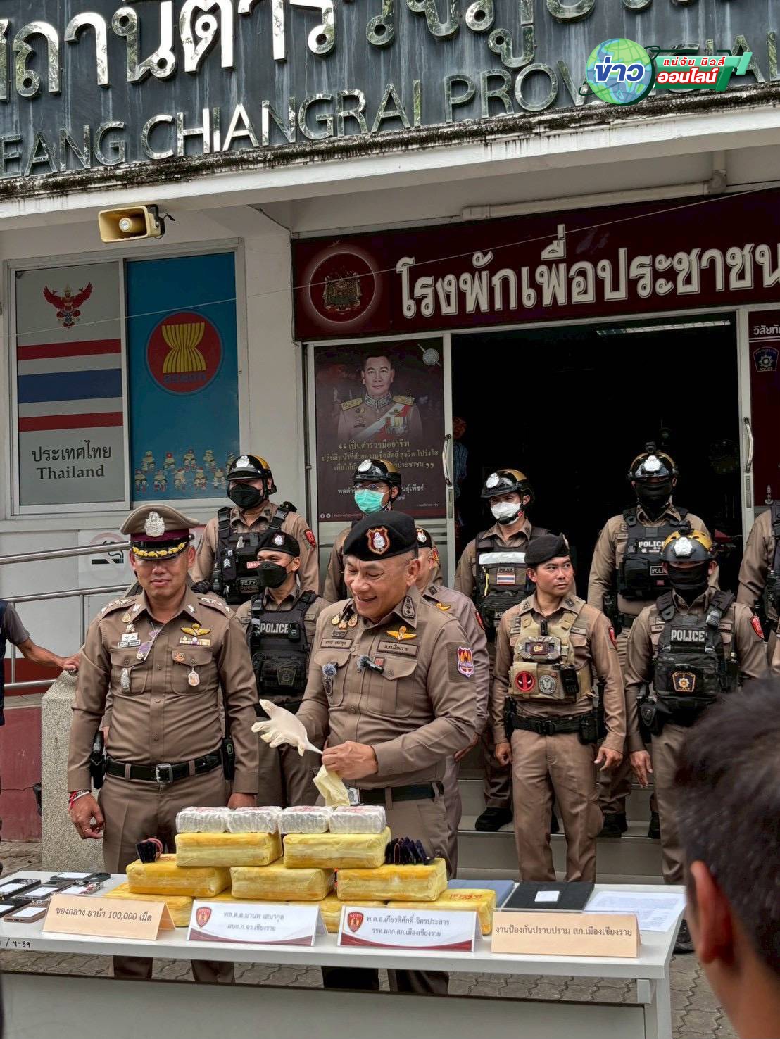 เชียงราย – ตำรวจเมืองเชียงรายแถลงจับยาบ้า 100,000 เม็ด ขยายผลรวบผู้ต้องหา 4 ราย