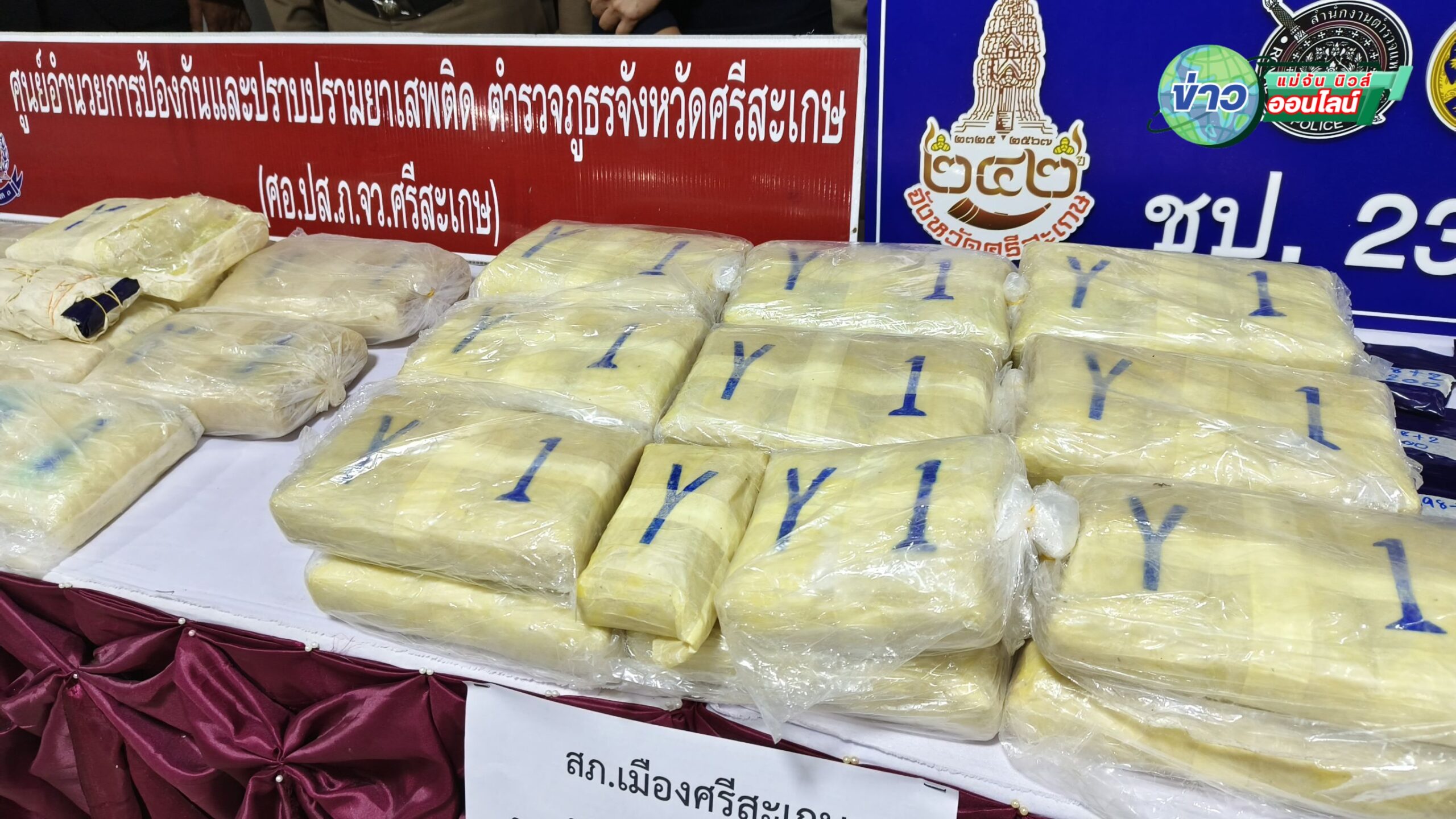 เมื่อวันที่ 15 ต.ค. 2568 ที่ห้องประชุม ชั้น 1 สำนักงานตำรวจภูธรจังหวัดศรีสะเกษ (ภ.จว.ศรีสะเกษ) นายสุริยา บุตรจินดา รอง ผวจ.ศรีสะเกษ พร้อมด้วย พล.ต.ต.ศุภชัย ศักรินพานิชกุล ผบก.ภ.จว.ศรีสะเกษ นำกำลังชุดปฏิบัติการปราบปรามยาเสพติด ภ.จว.ศรีสะเกษ ร่วมกับ ชุดปฏิบัติการ 238 พิทักษ์นครลำดวน ซึ่งประกอบด้วย ฝ่ายปกครอง ทหาร ตำรวจ ราชฑัณฑ์ ร่วมกันแถลงผลการจับกุมผู้ต้องหาคดียาเสพติด จำนวน 2 ราย พร้อมของกลางยาบ้า จำนวน 122,000 เม็ด ตรวจยึดทรัพย์สิน รถยนต์ปิกอัพ จำนวน 1 คัน รถยนต์เก๋งแท็กซี่ สีเขียวเหลือง จำนวน 1 คัน และรถ จยย. อีก 1 คัน ที่บริเวณลานจอดรถภายในปั้มน้ำมัน ปตท. สาขาบ้านเพียนาม ต.หนองไผ่ อ.เมือง จ.ศรีสะเกษ