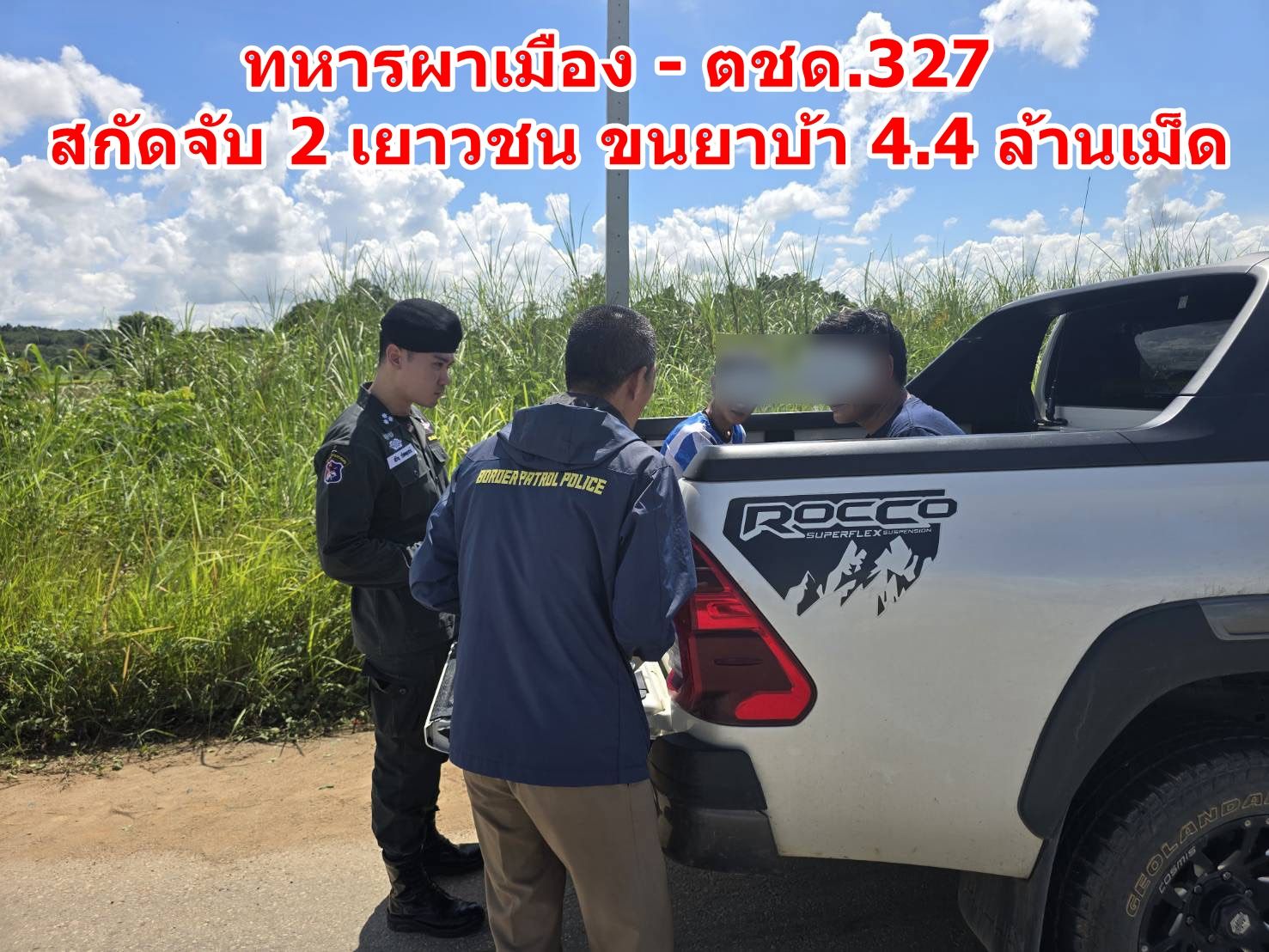 เชียงราย – ทหารผาเมือง – ตชด.327 สกัดจับ 2 เยาวชน ขนยาบ้า 4.4 ล้านเม็ด