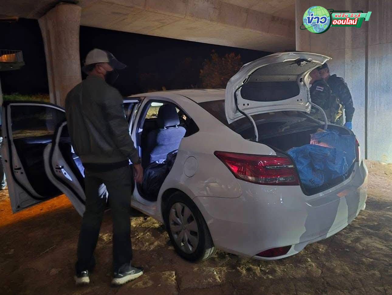 ต่อมาได้ตรวจพบรถยนต์เกง ยี่ห้อโตโยต้า สีขาว ไม่ติดแผ่นป้ายทะเบียนขับไปถึงบริเวณสะพานข้ามแม่น้ำกกบ้านฮ่องอ้อ ต.ดอยฮาง อ.เมืองเชียงราย จึงได้เข้าทำการสกัดเอาไว้ได้สำเร็จ จากการตรวจสอบในรถพบมีนายธานิทเป็นคนขับมาตามลำพังและในรถพบบรรทุกกระสอบฟางมาเต็มเบาะและกระโปรงรถ ภายในกระสอบบรรจุยาเสพติดประเทยาบ้าจำนวนทั้งหมดประมาณ 1,098,000 เม็ด จึงได้จับกุมตัวนายธานิทเอาไว้ ก่อนนำส่งพนักงานสอบสวน สภ.แม่ยาว อ.เมืองเชียงราย เพื่อดำเนินคดีและขยายผลตามกฎหมายต่อไป.